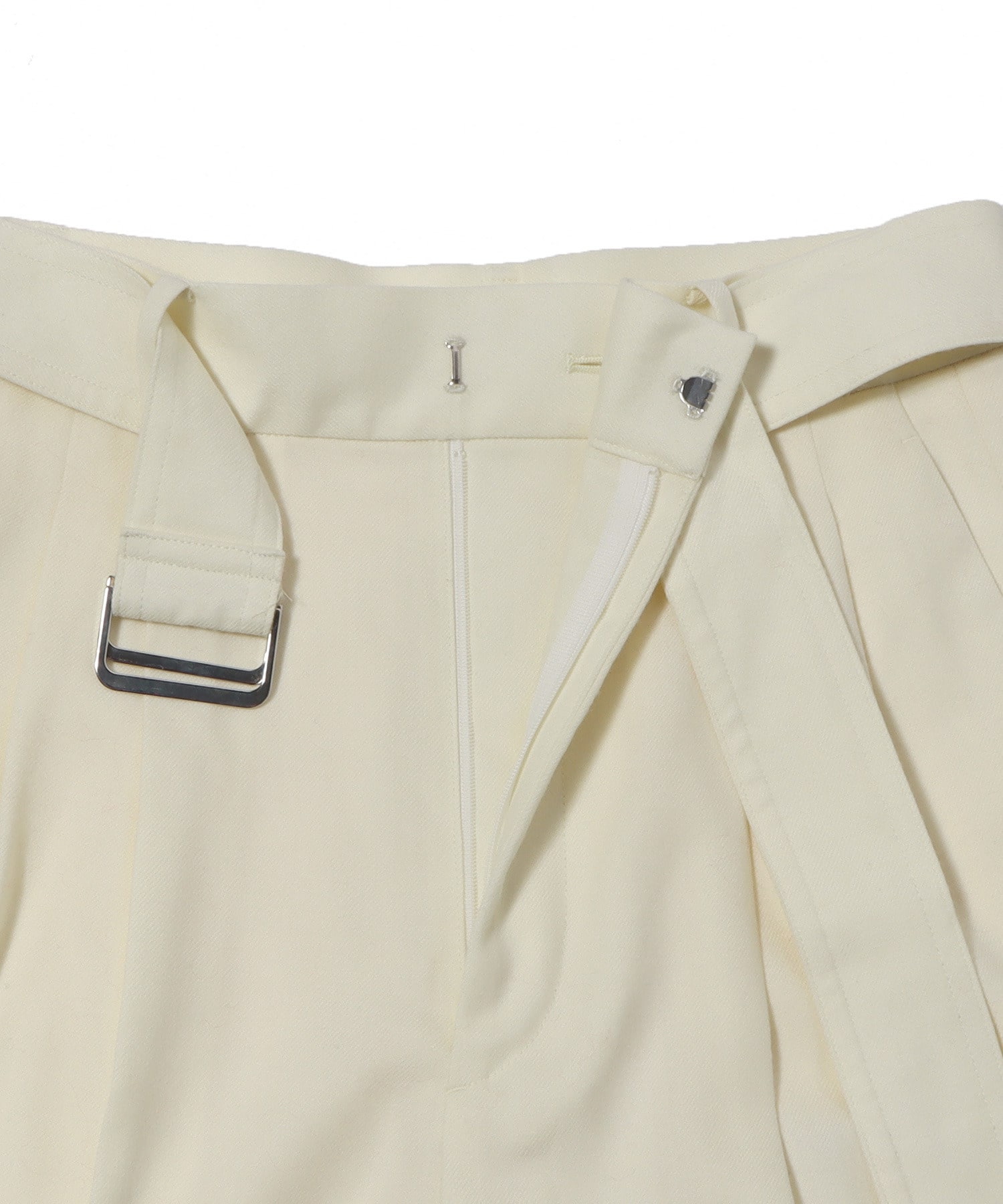 フロントにツータックを入れ、ややゆとりのあるワイドシルエットにしています。ベルトは外しても着用出来る仕様にしているので、お手持ちのベルトを合わせたりとスタイリングの幅が広がります。