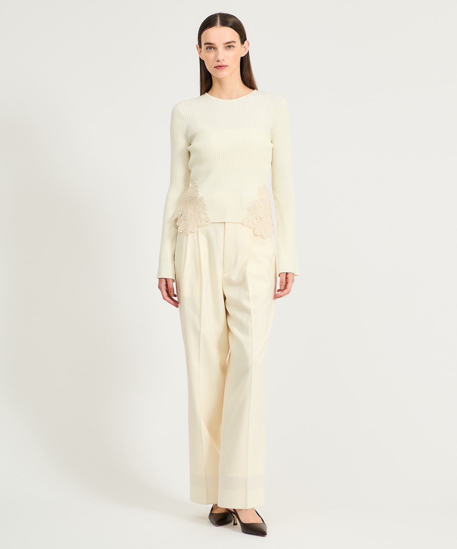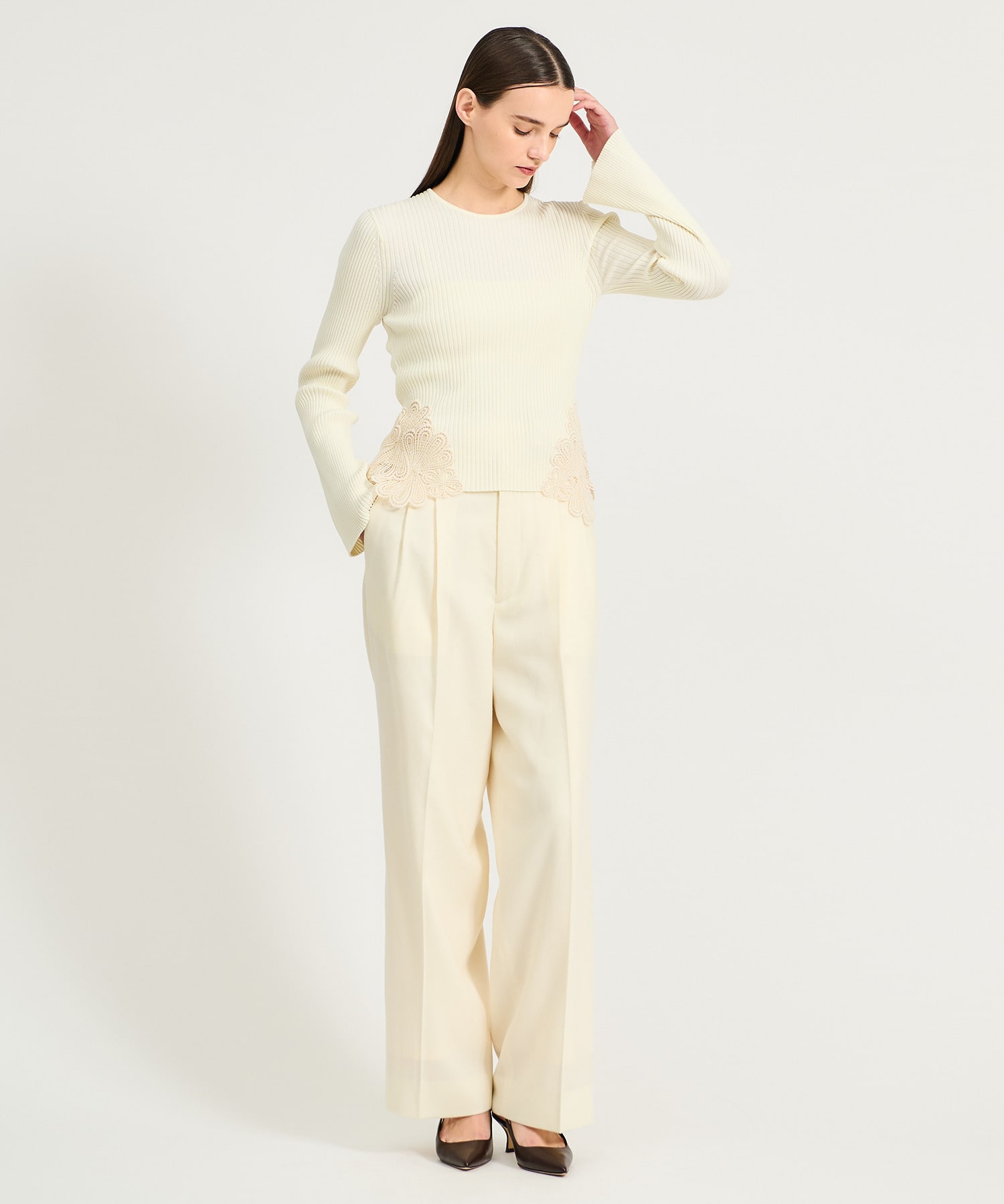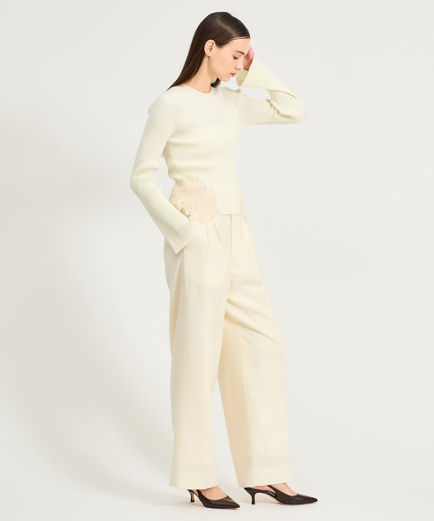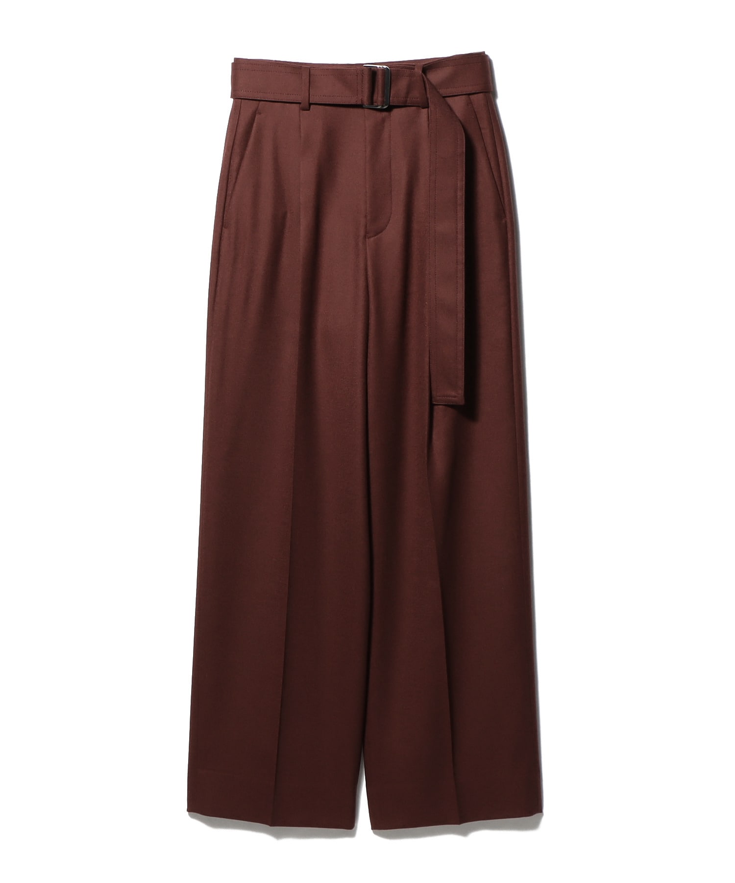 フロントにツータックを入れ、ややゆとりのあるワイドシルエットにしています。ベルトは外しても着用出来る仕様にしているので、お手持ちのベルトを合わせたりとスタイリングの幅が広がります。