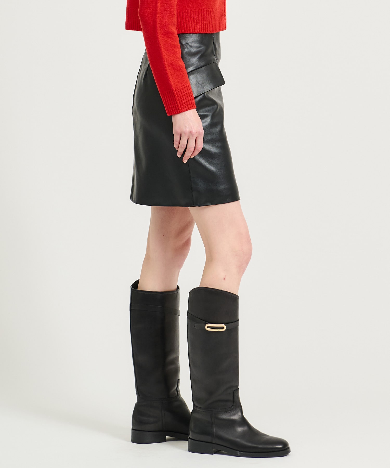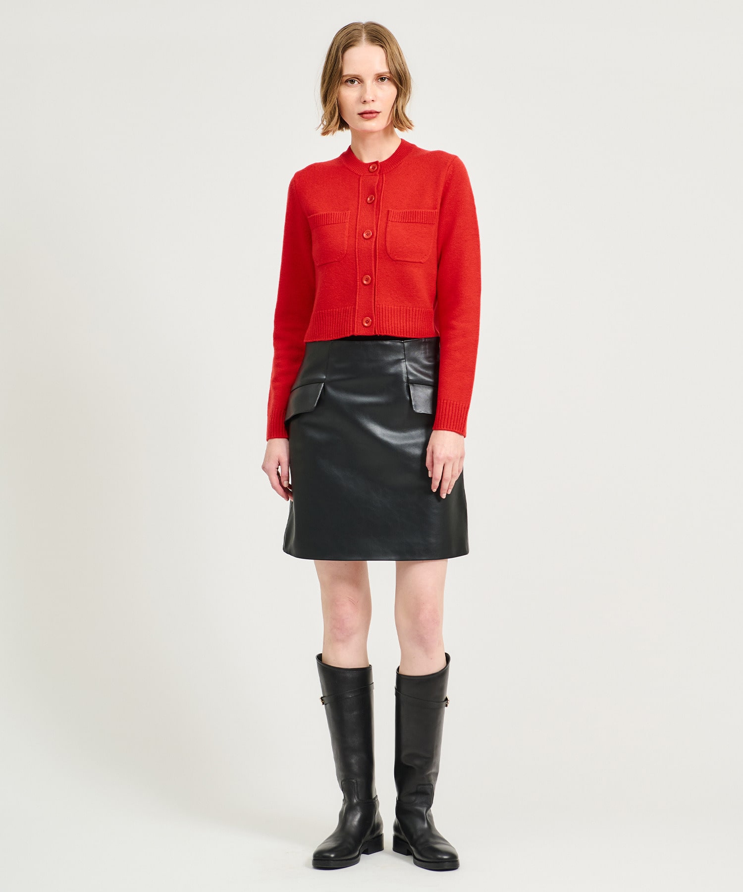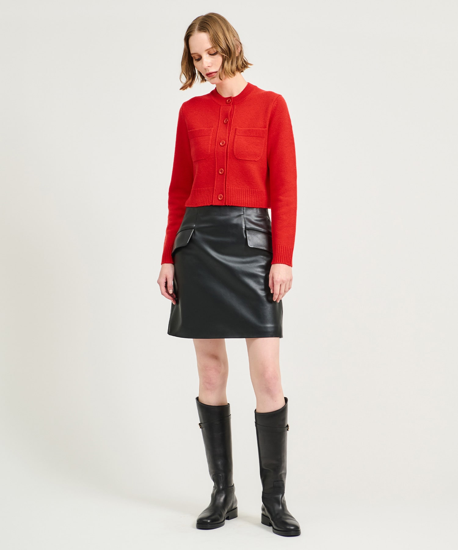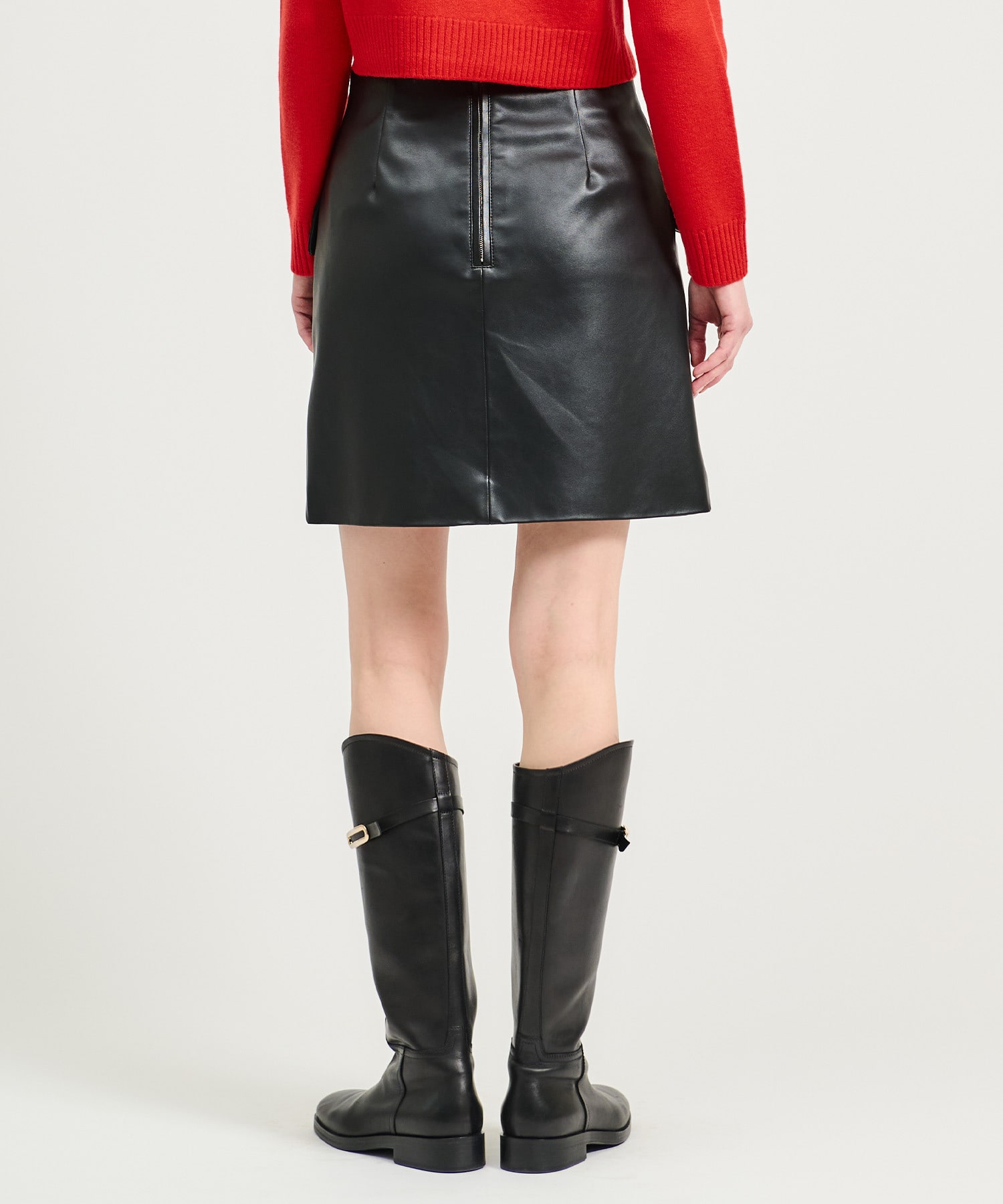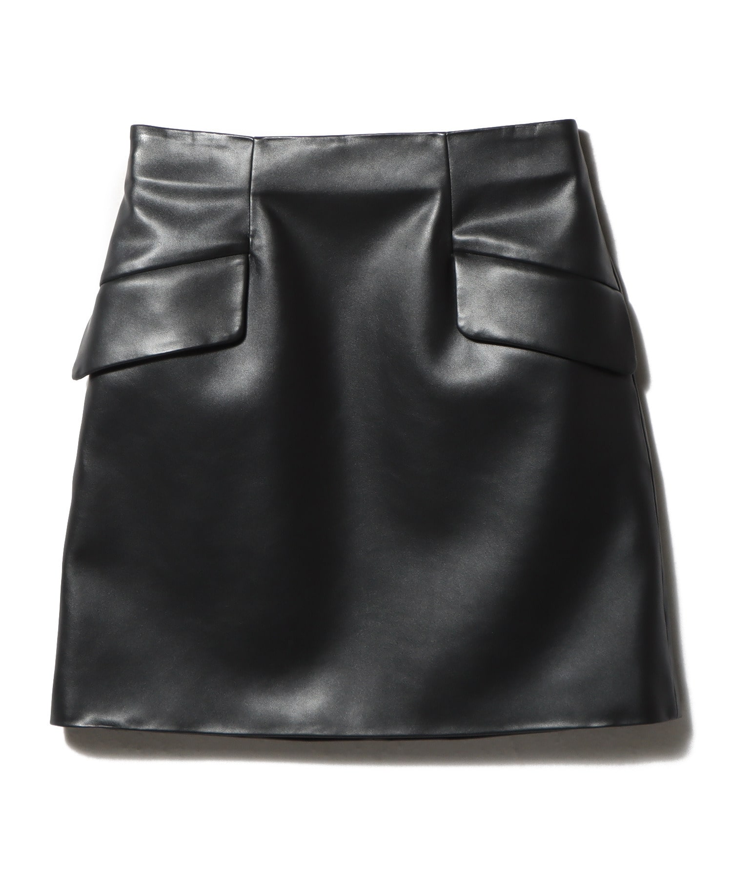 腰のパッチポケットがポイントの台形型ミニスカート。