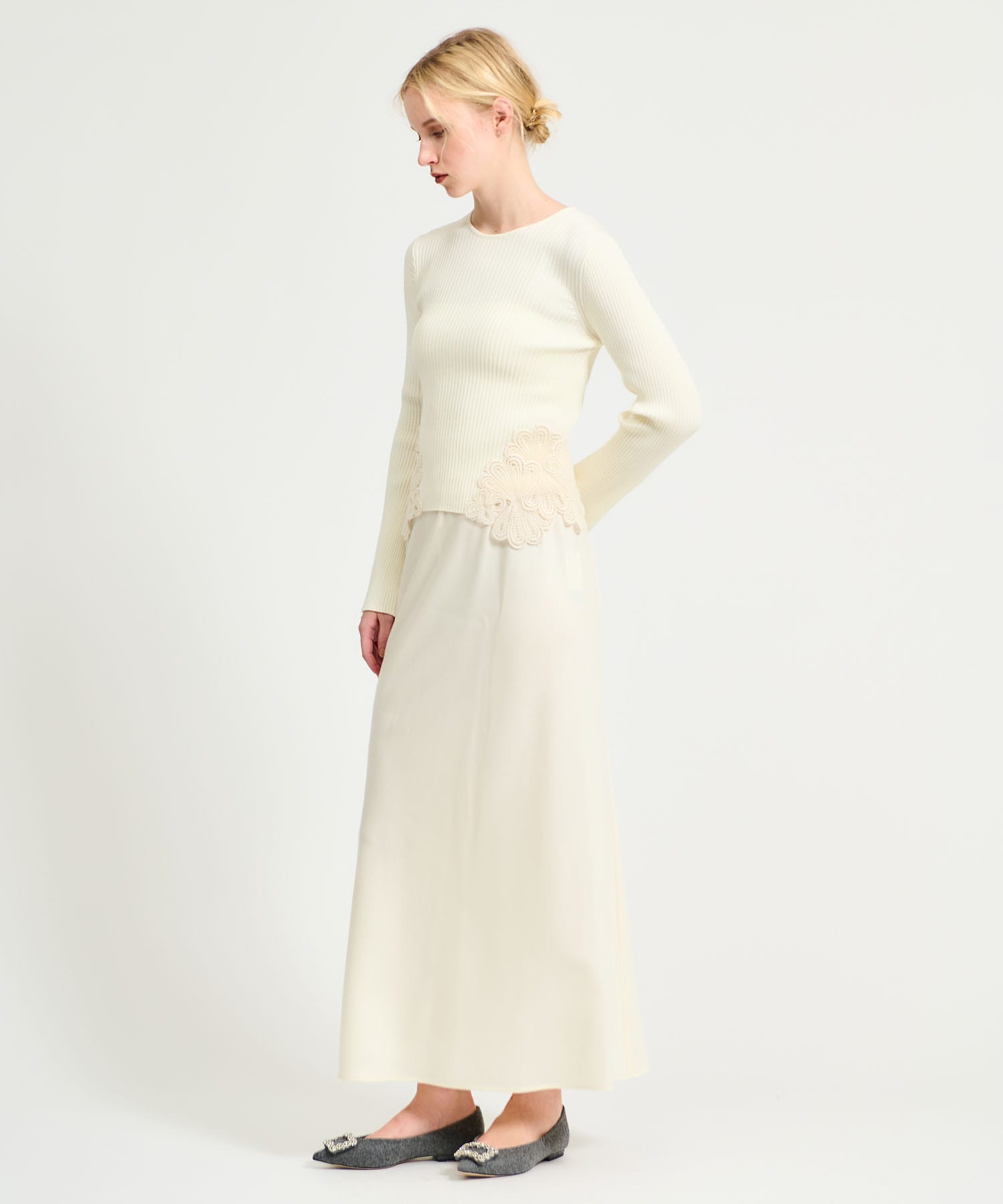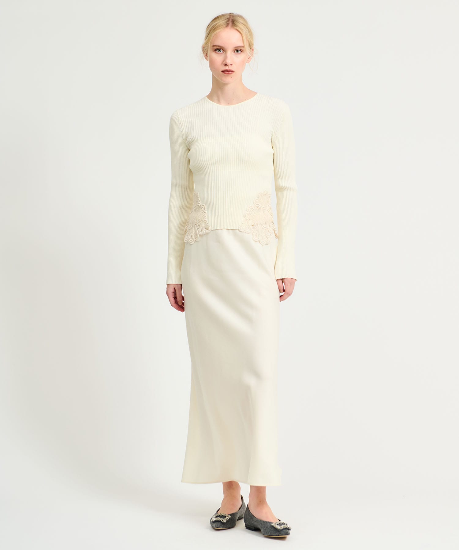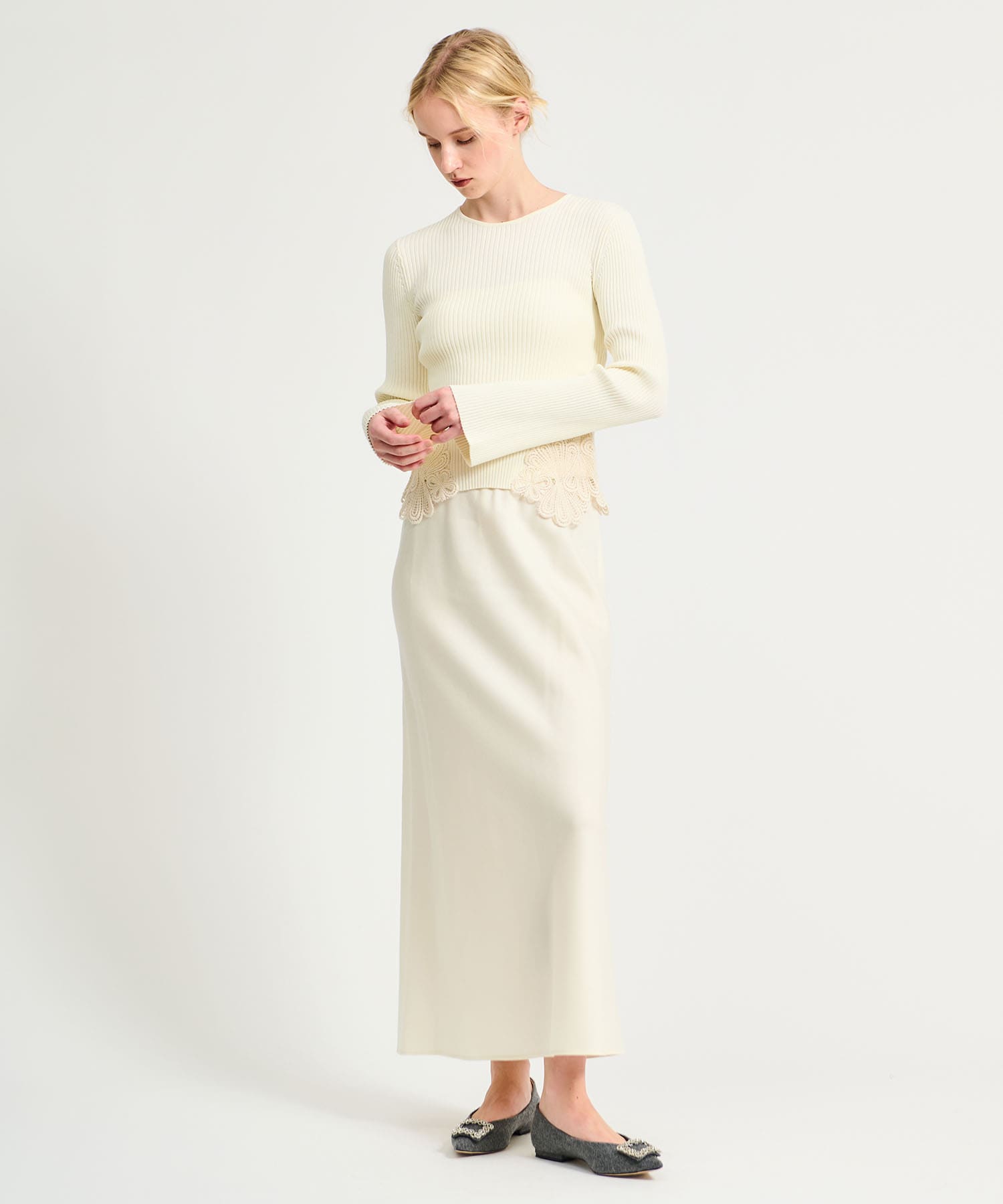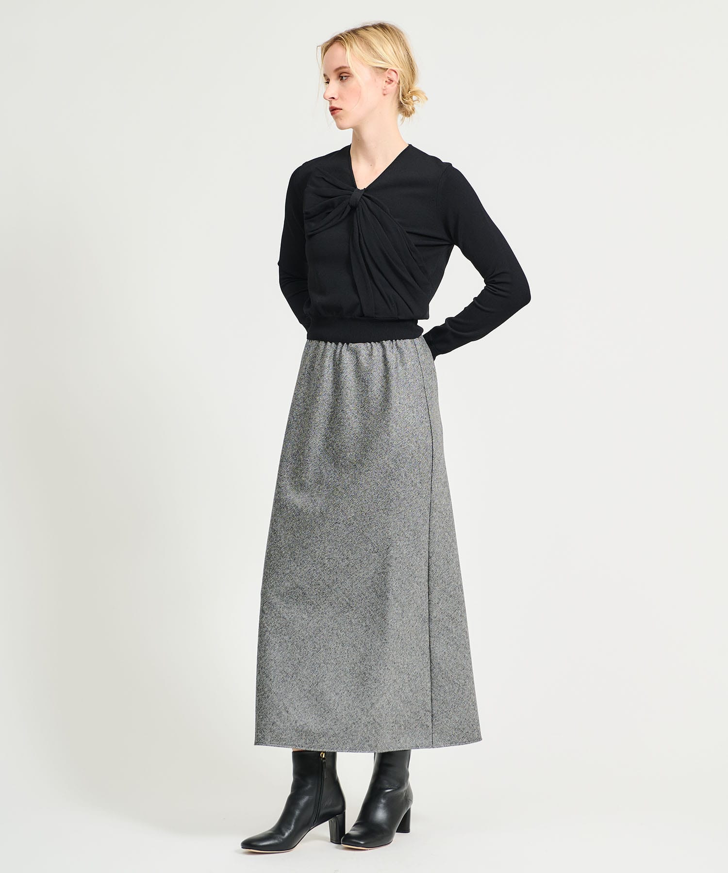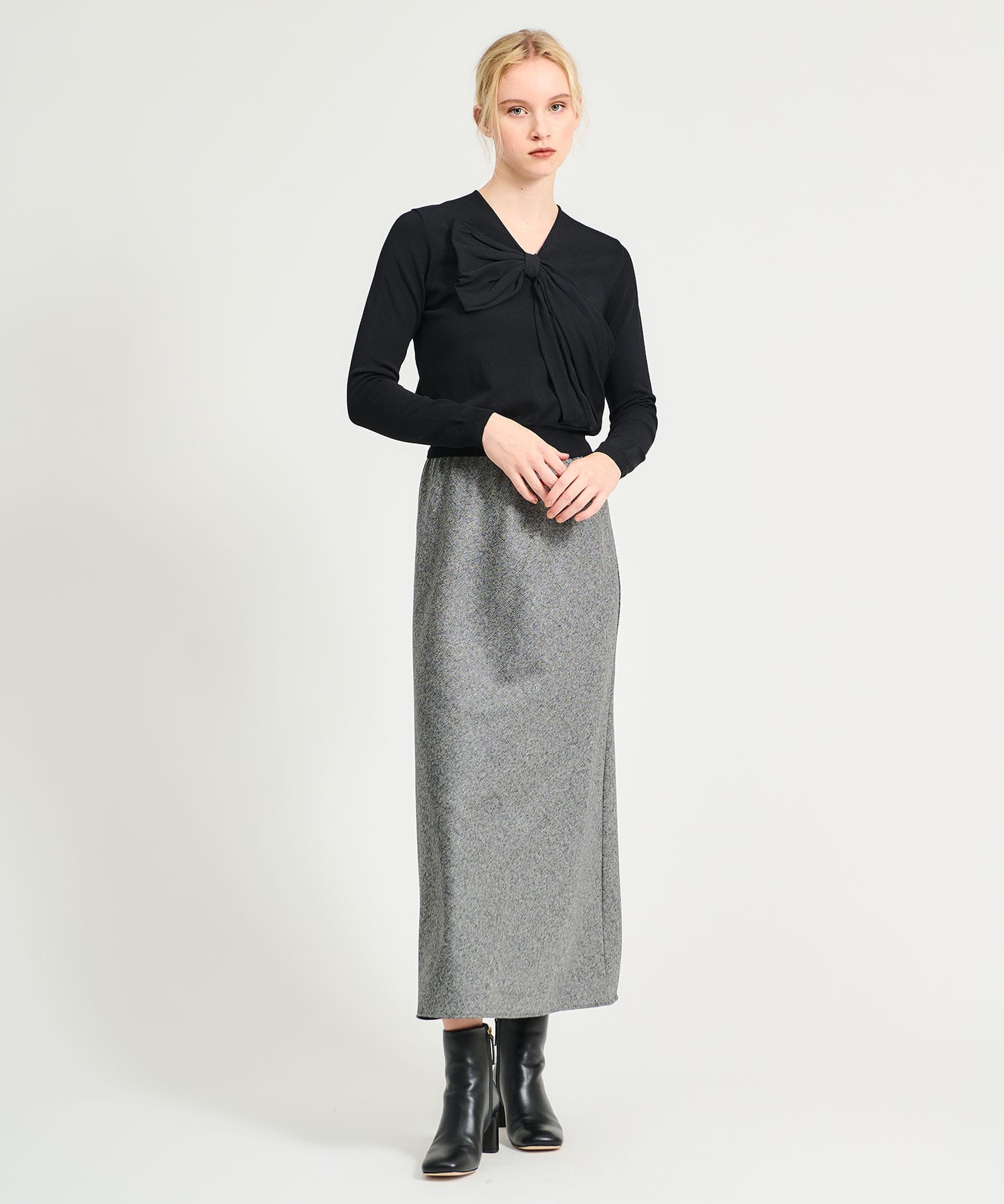 生地をバイヤス使いにすることで、体に沿って綺麗に出るシルエットが特徴のロングスカート。