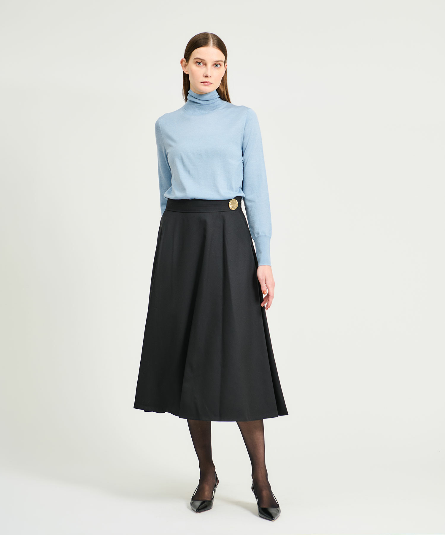 ウエストベルトを太めにし、高めにしたフレアスカート。
