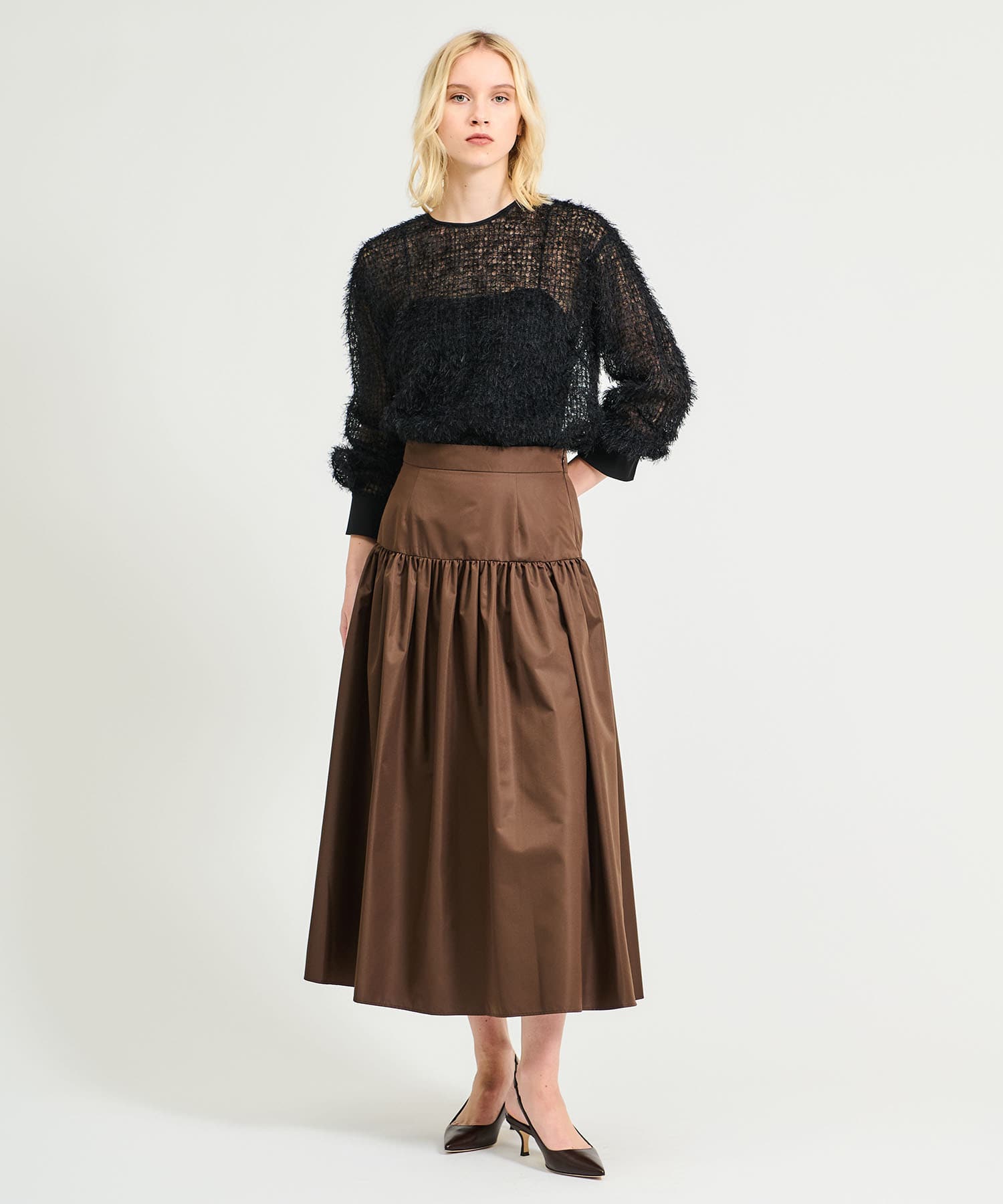 柔らかな風合いとソフトな肌ざわりで、シーズンを問わずスタイリングに華を添える一枚。
