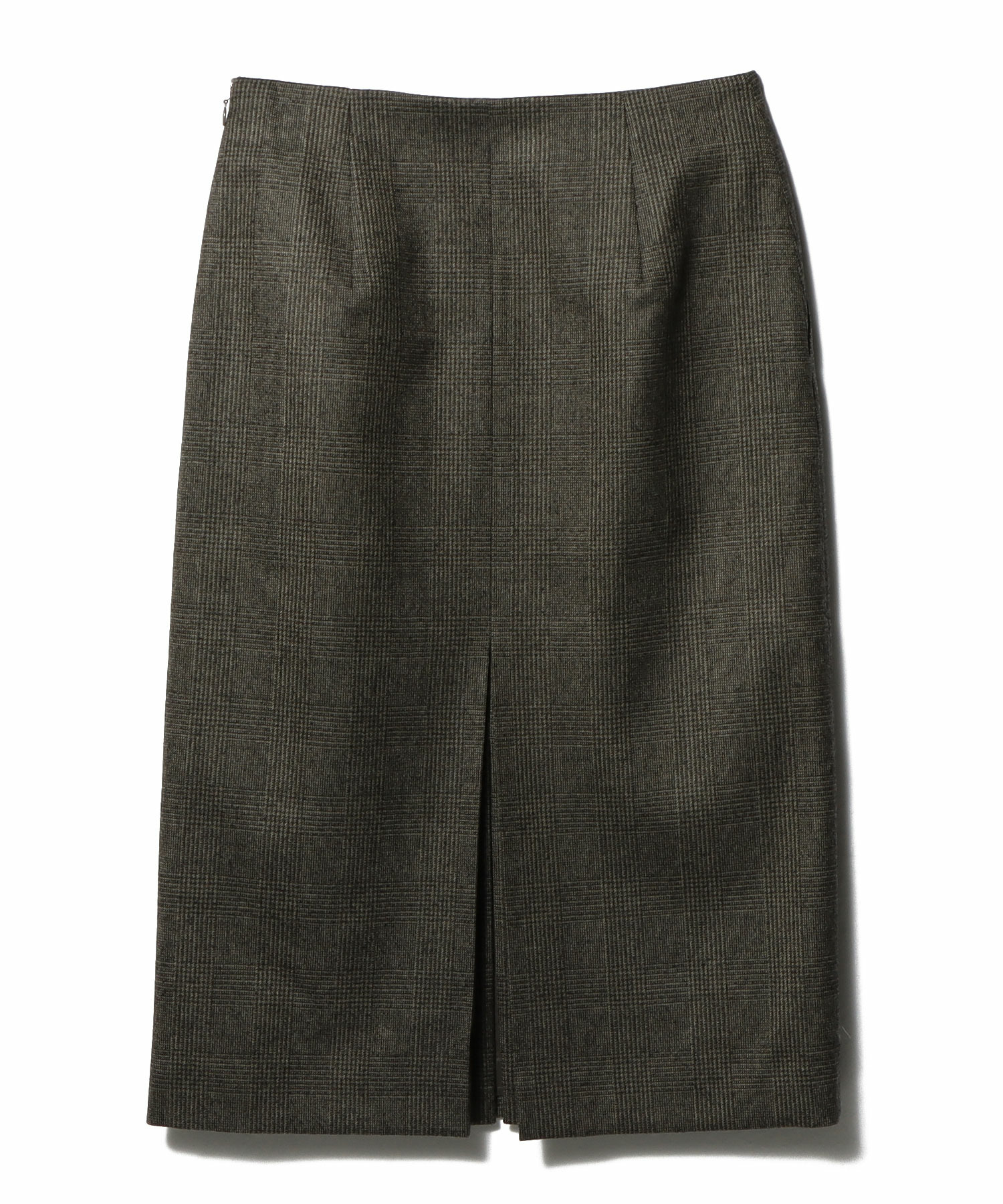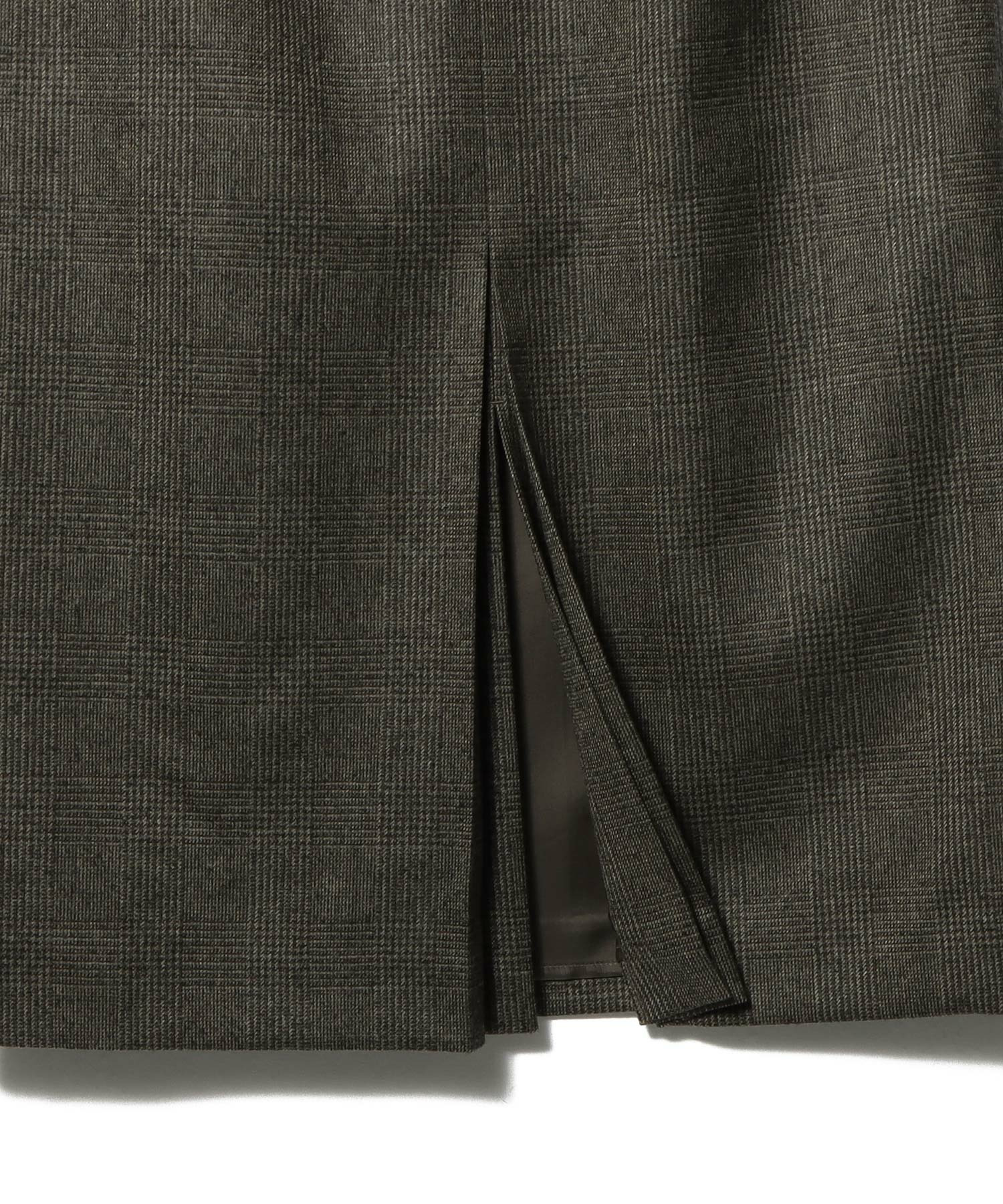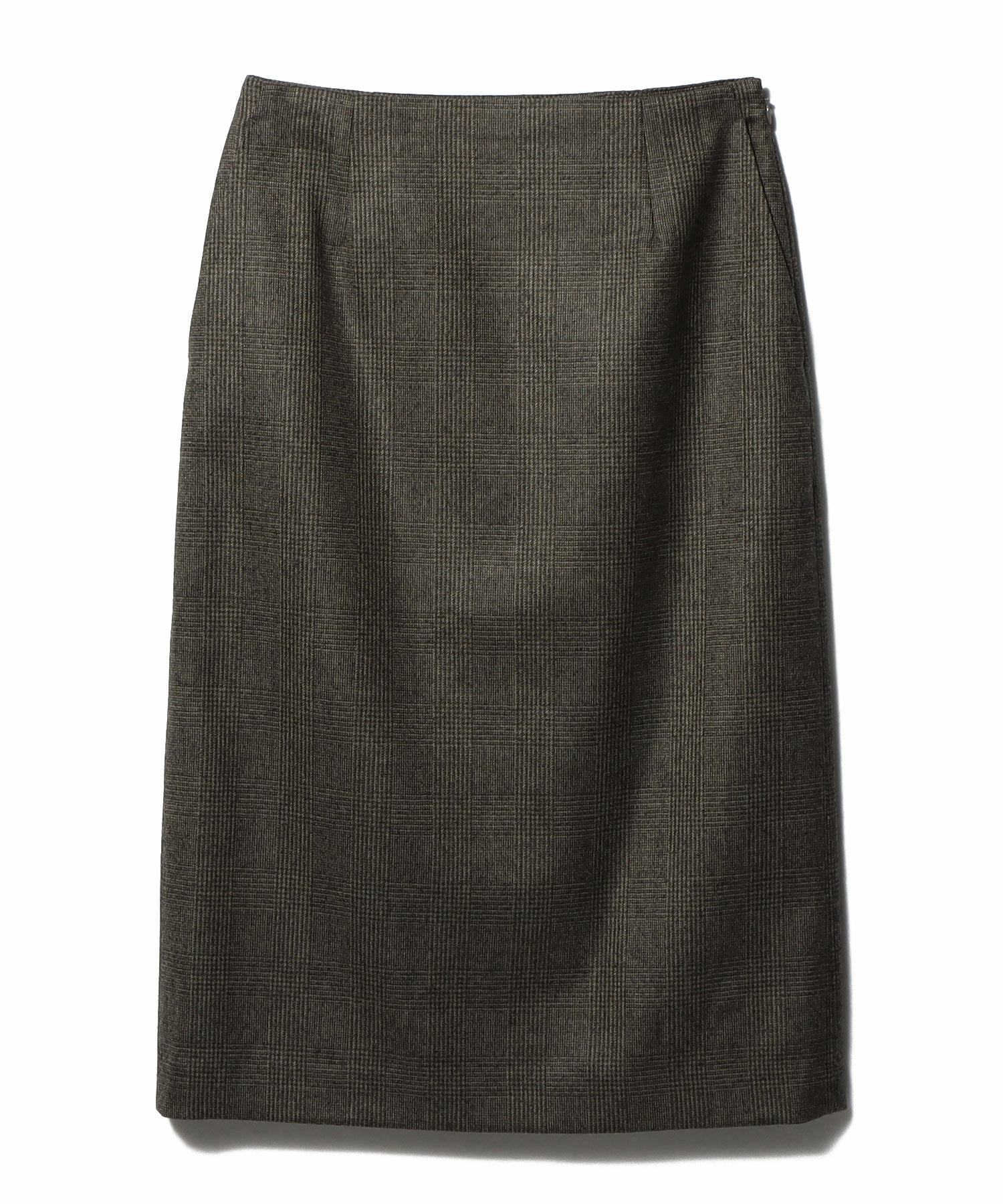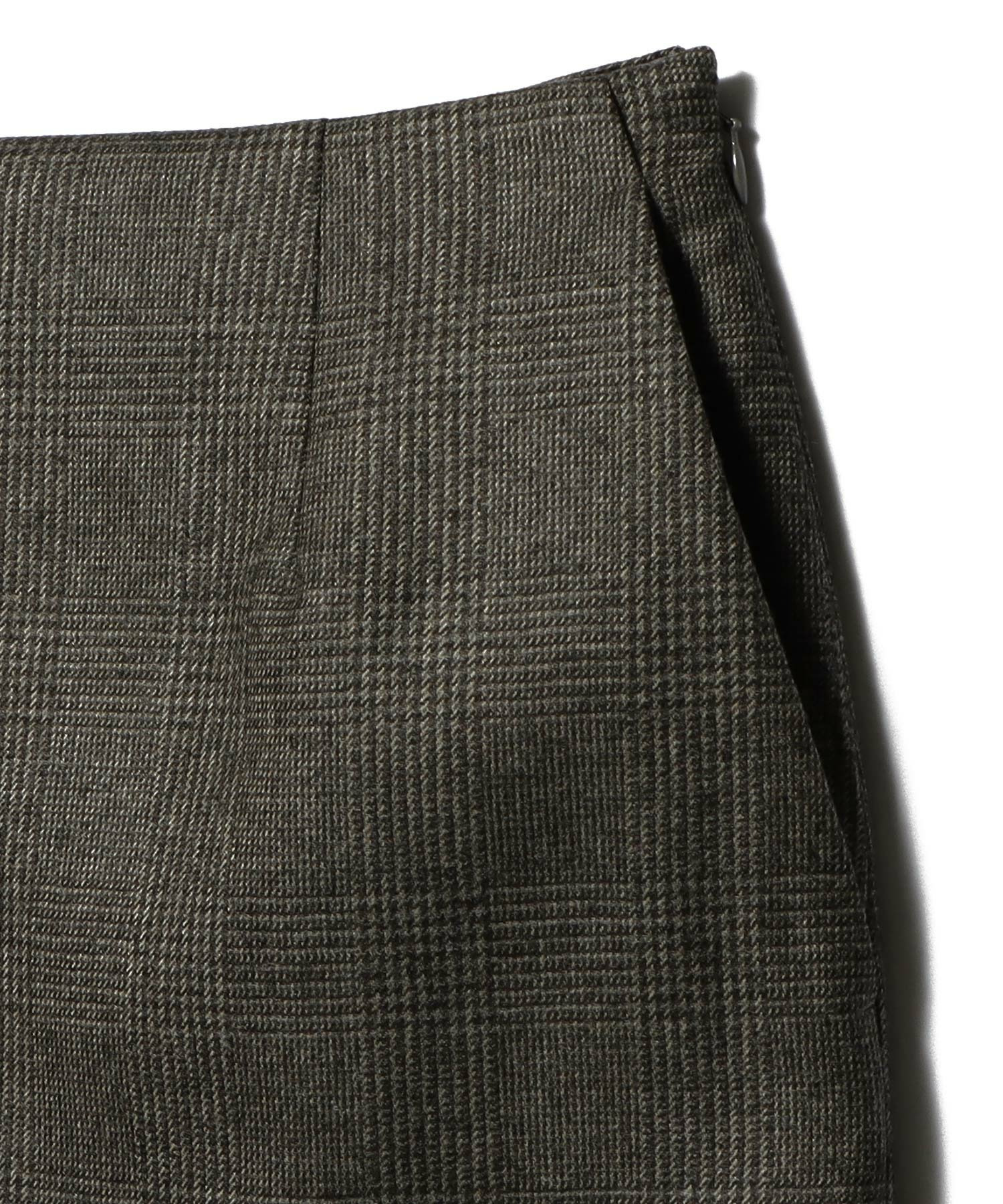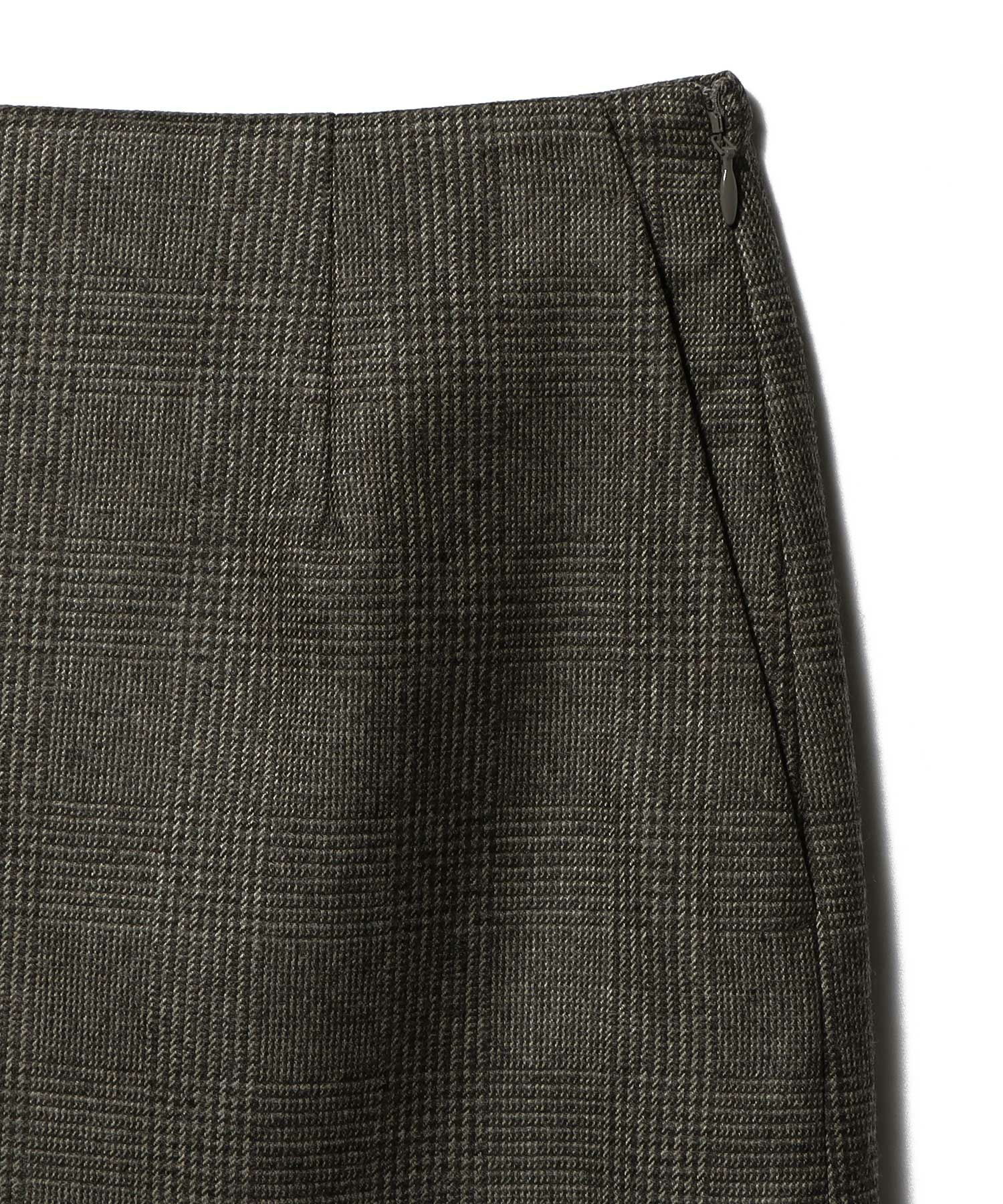 毛羽立ちを抑えた美しい表情と、滑らかな風合いが魅力の、先染めグレンチェックサキソニータイトスカート。