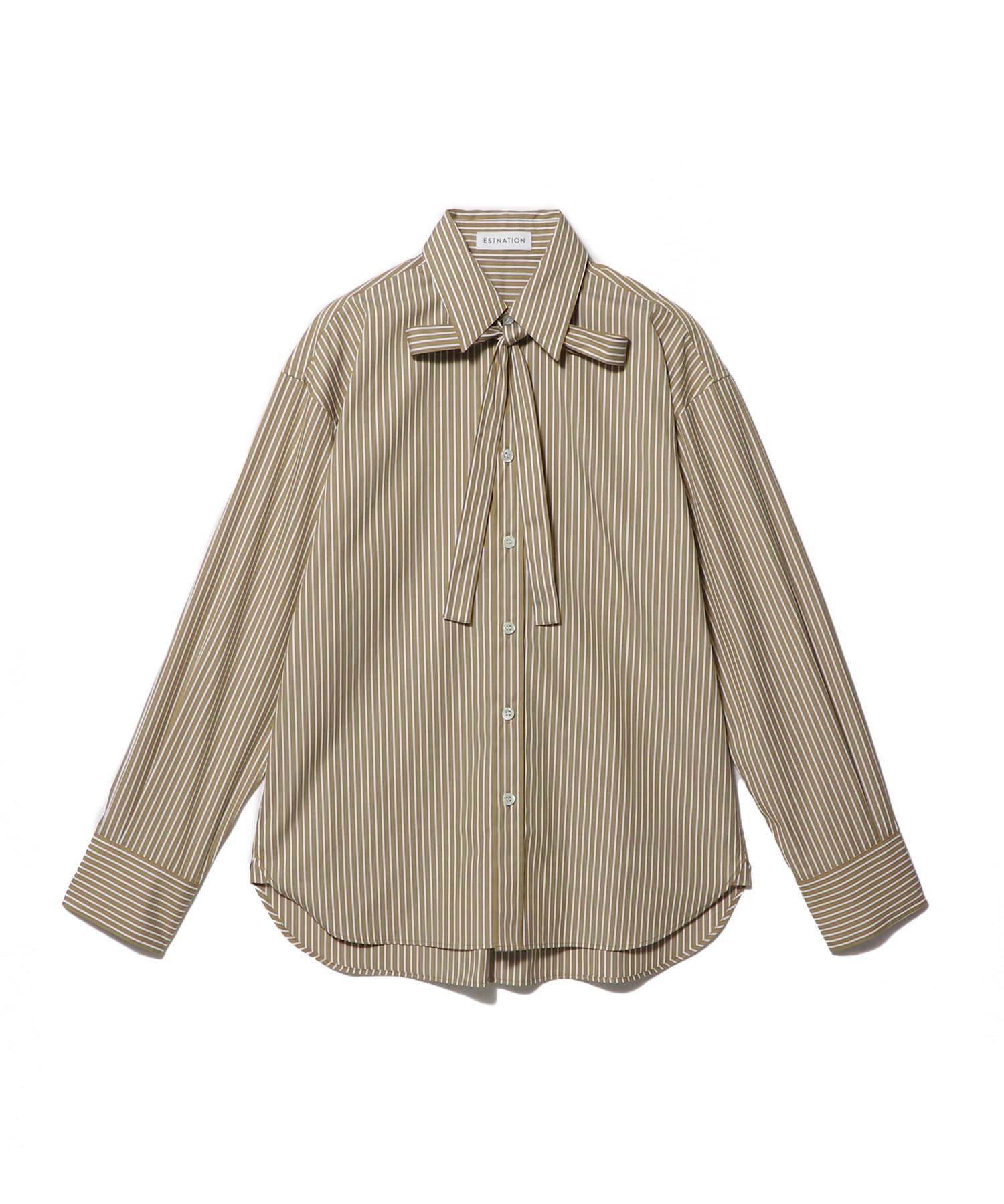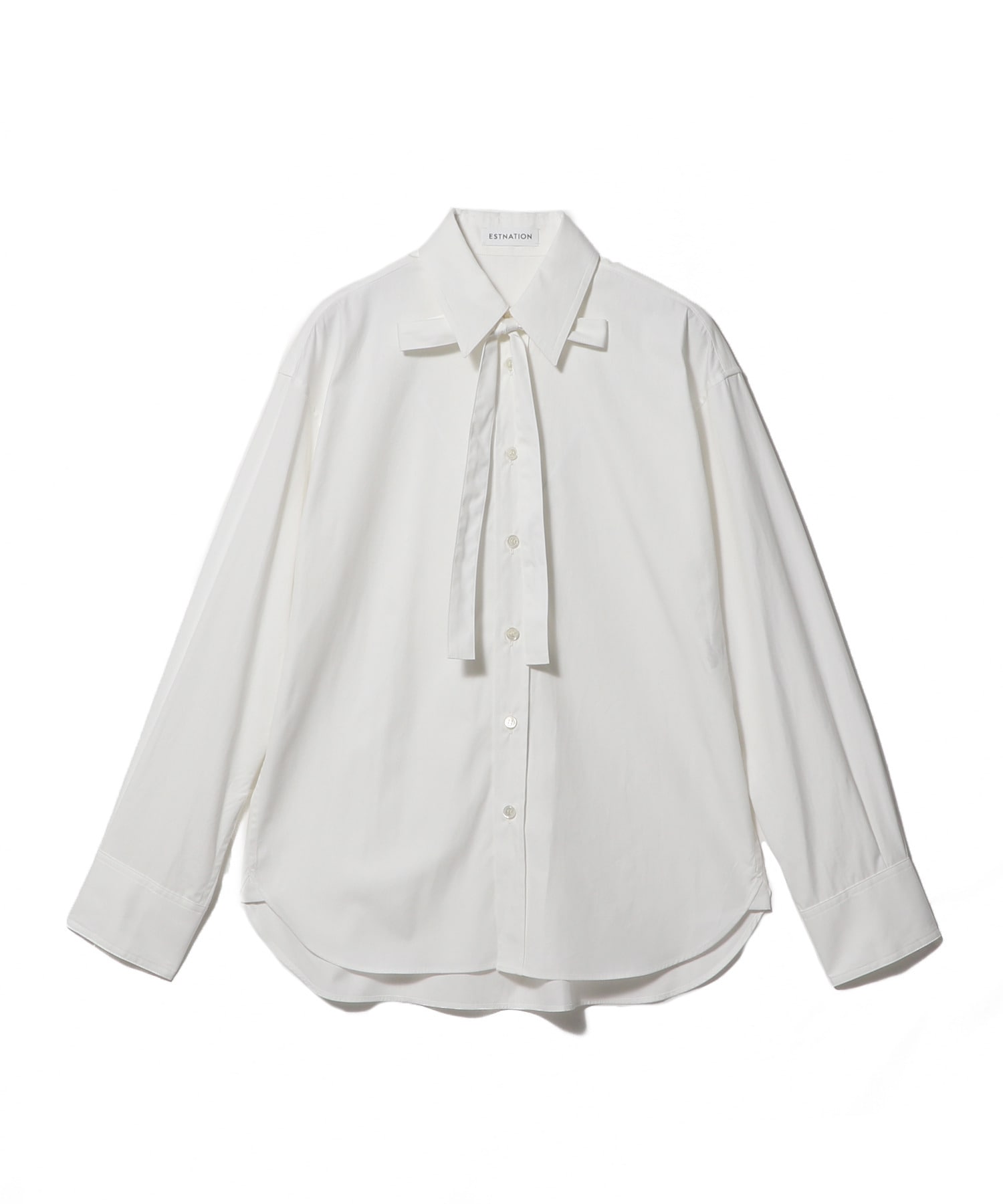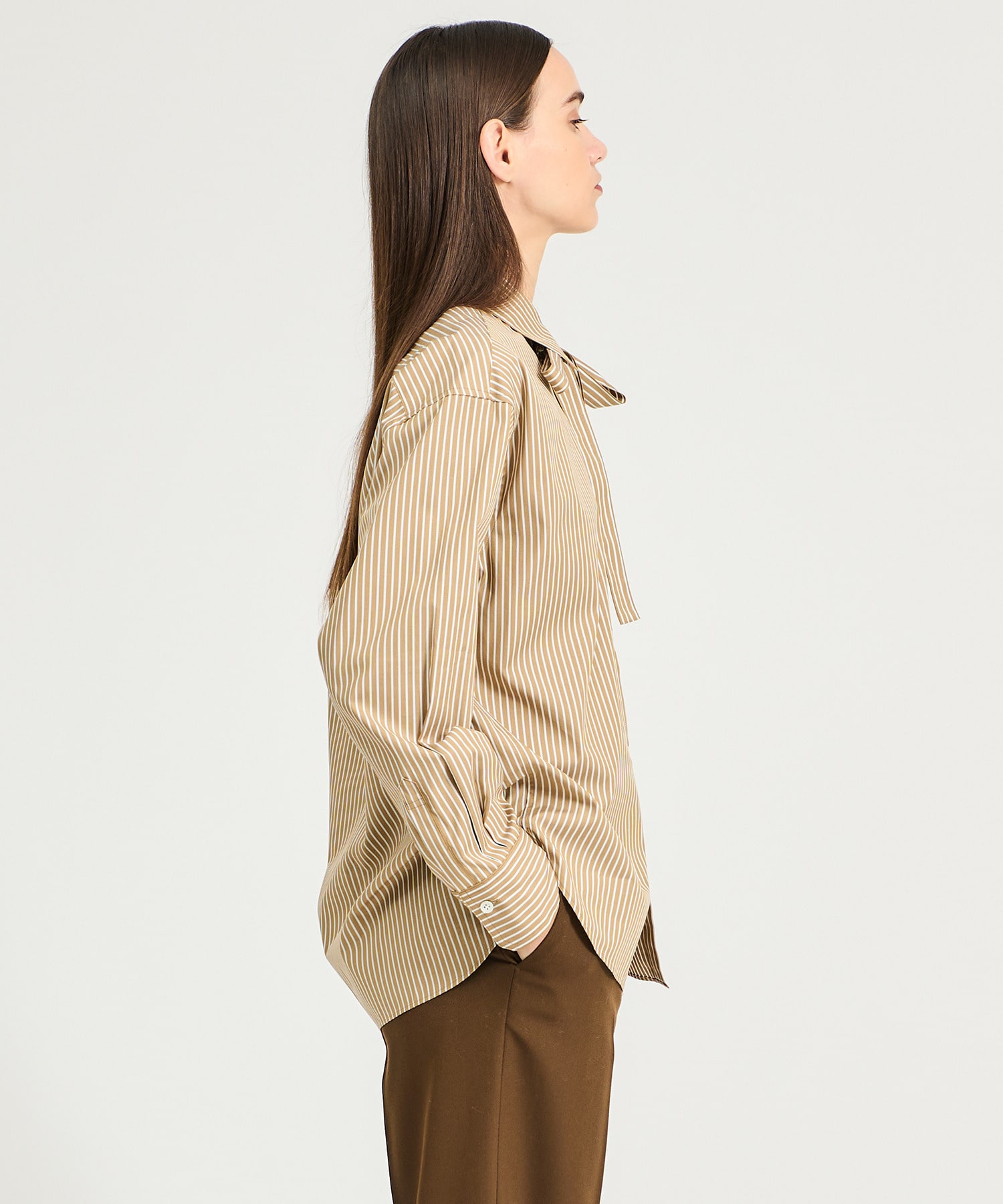 しっかりとした風合いが魅力のブロード素材を使用し、秋を感じさせるカラーを取り入れたリボンタイシャツ。
