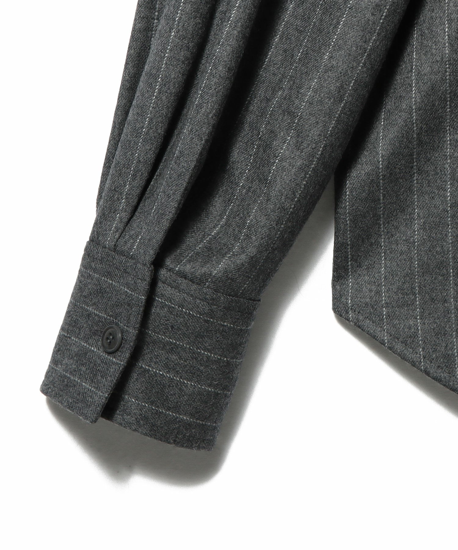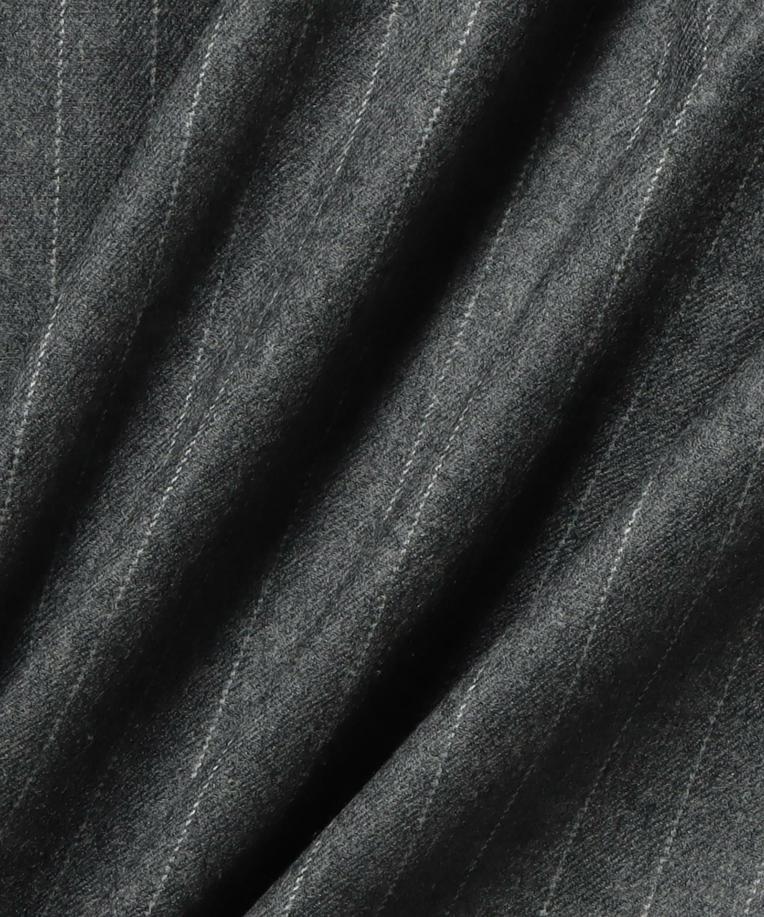 マスキュリンテイストのチョークストライプ柄のウールストレッチサキソニー素材を使用しました。
