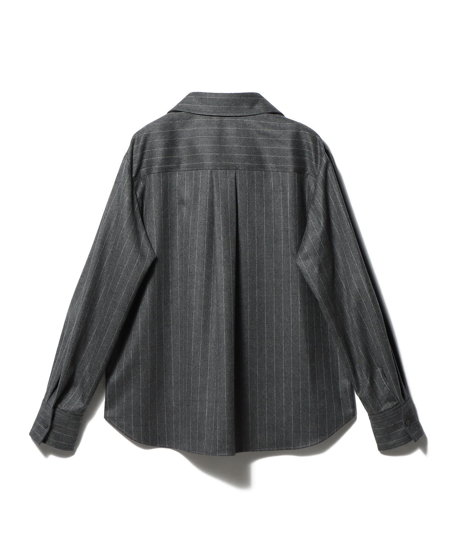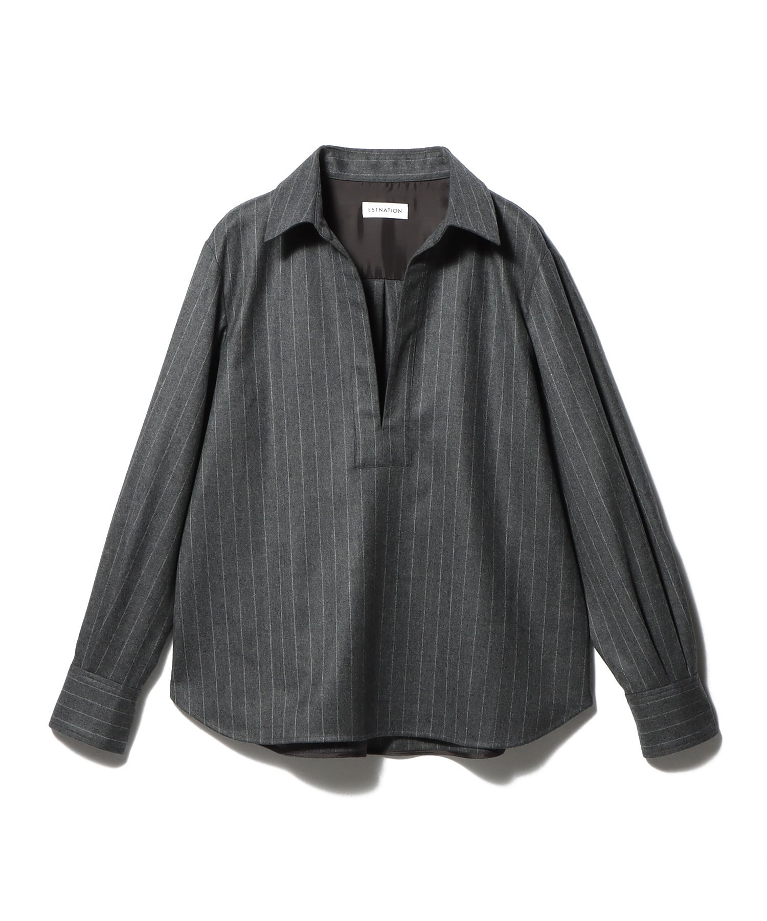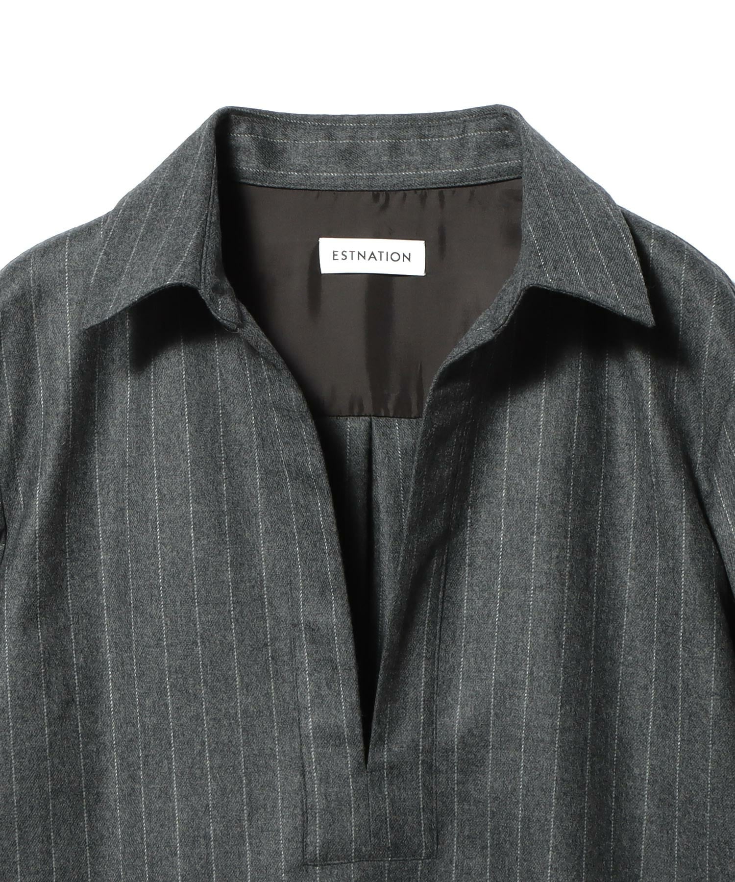 少し大きめのシャツカラーでフロントは深めのV開きにし女性らしさも大切にしています。