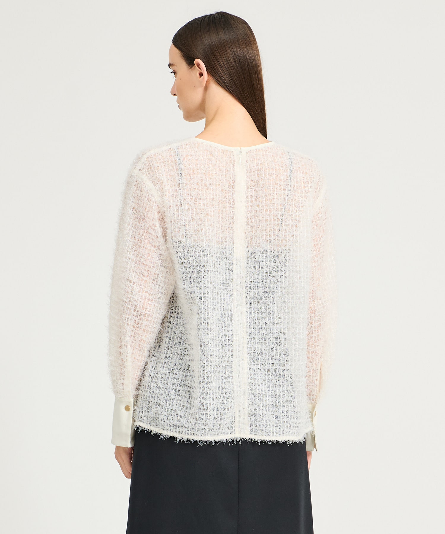 素材の特徴を活かしたシンプルなクルーネックブラウス。