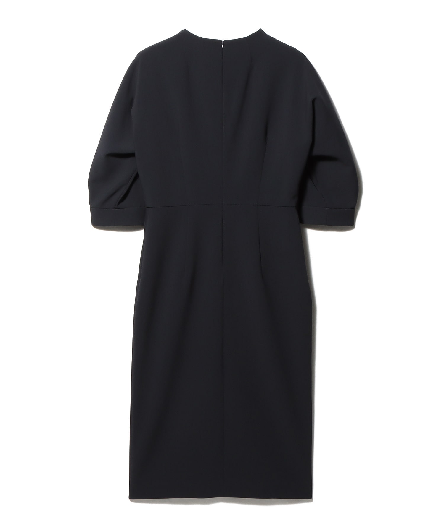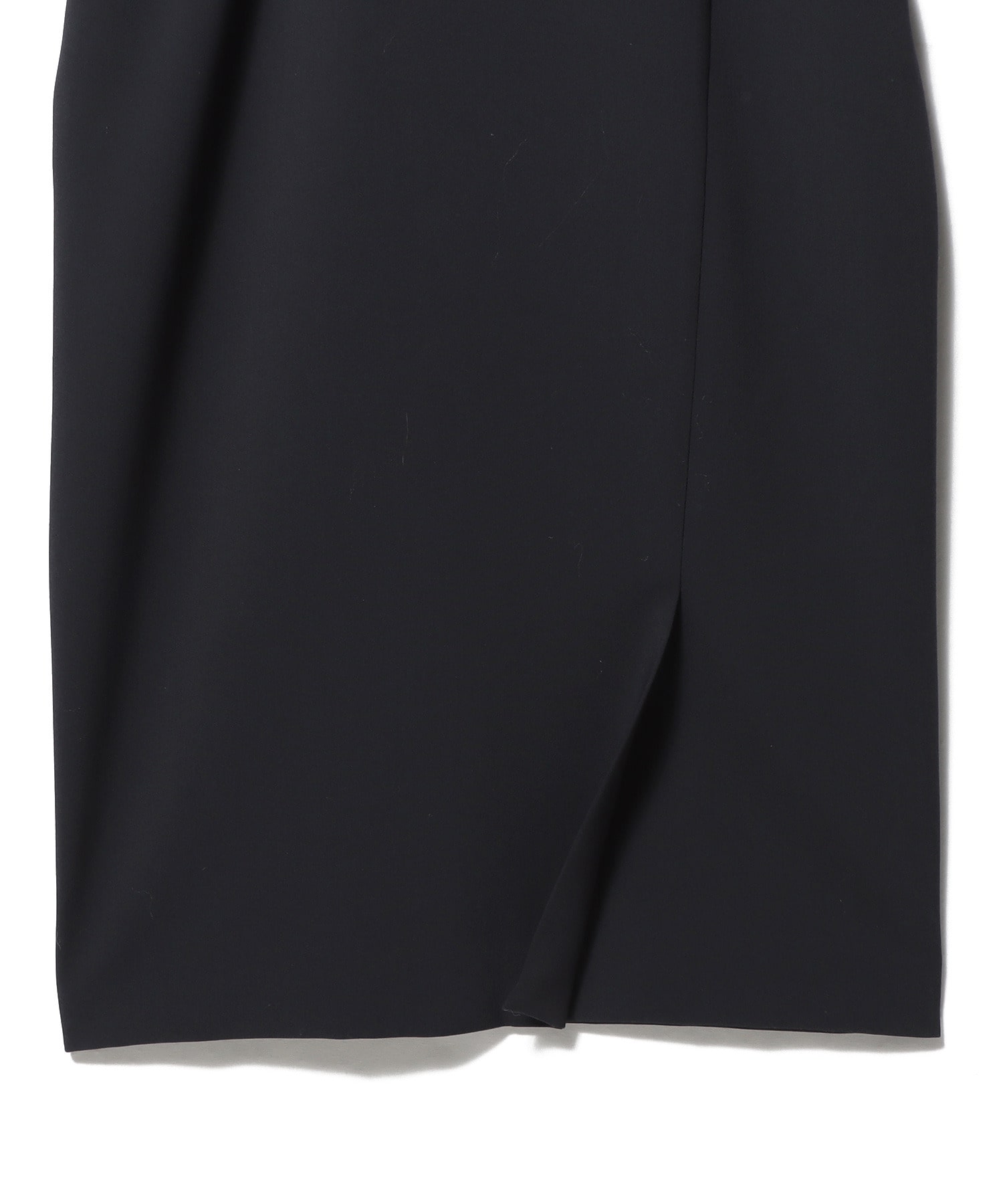 ウエストラインを少し高めの位置にし、スカート部分はすっきりとしたIラインシルエットにしており、スタイルアップ見えが叶うデザイン。