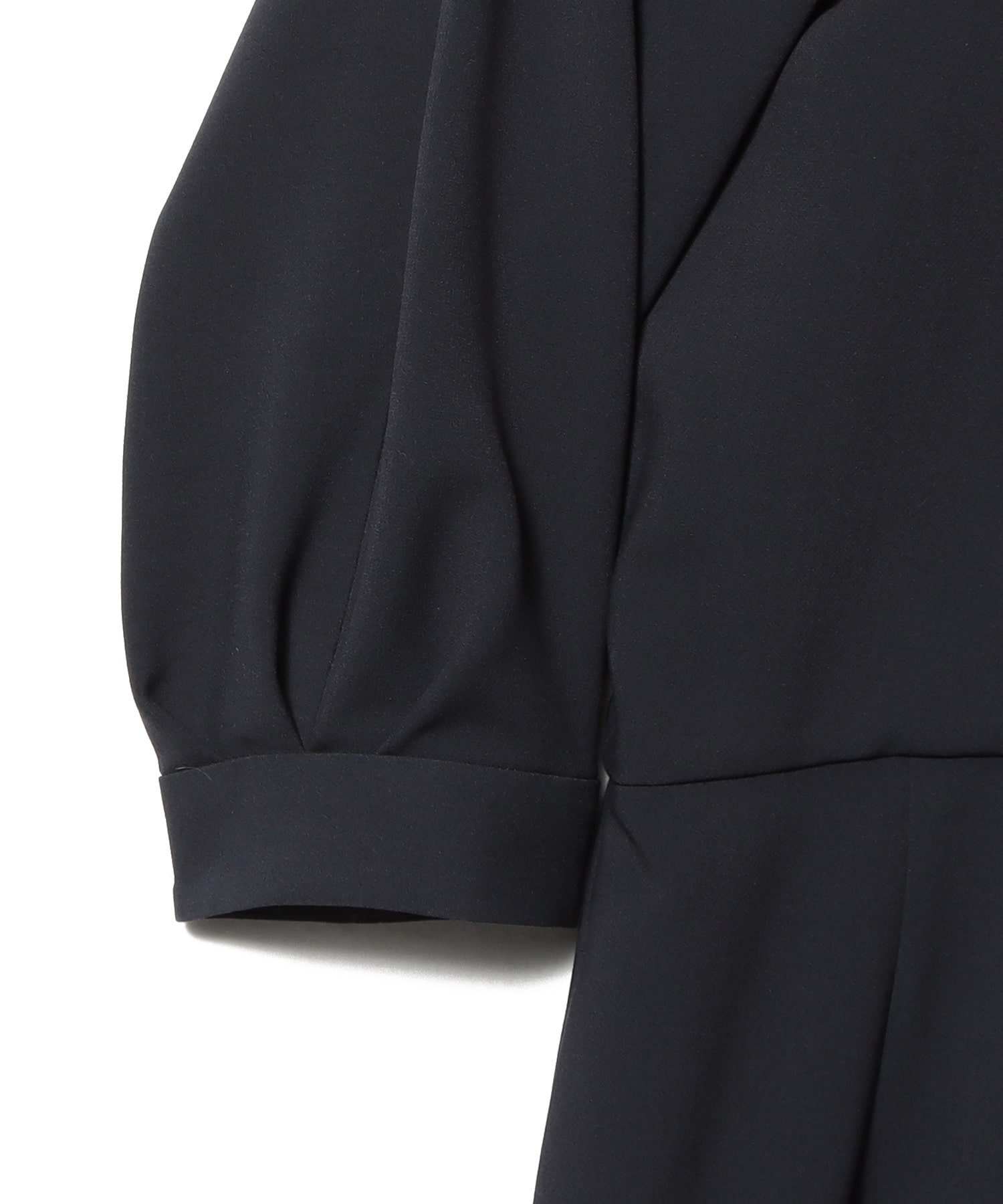 二重織組織なので程良い膨らみ感があり、身体のシルエットを拾いにくく、上品な光沢感とストレッチも効いた着心地の良い素材を使用しています。