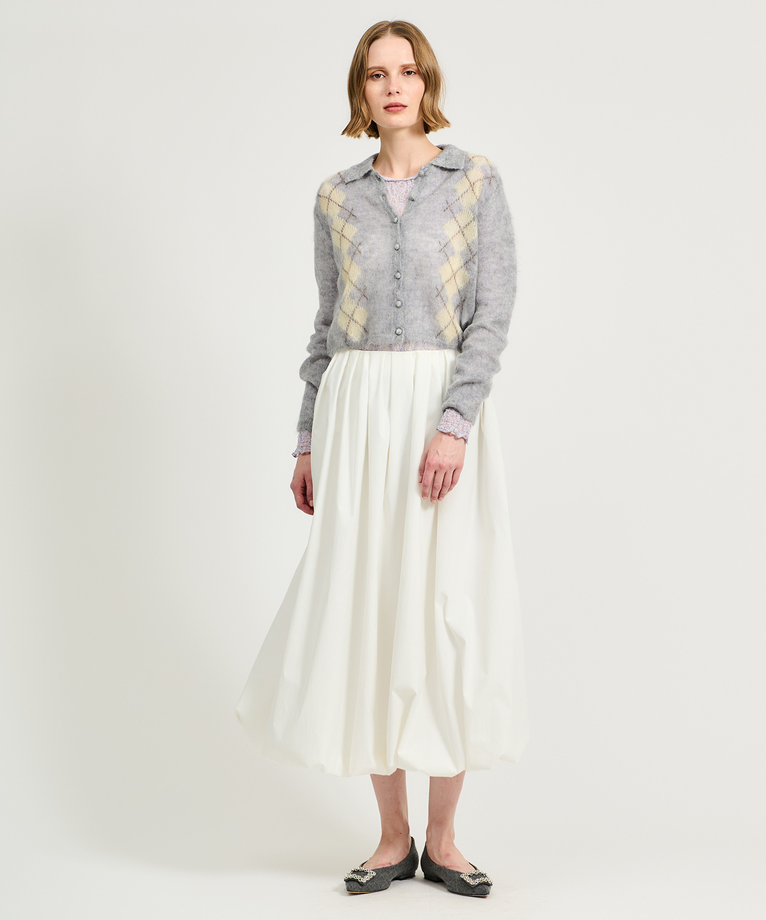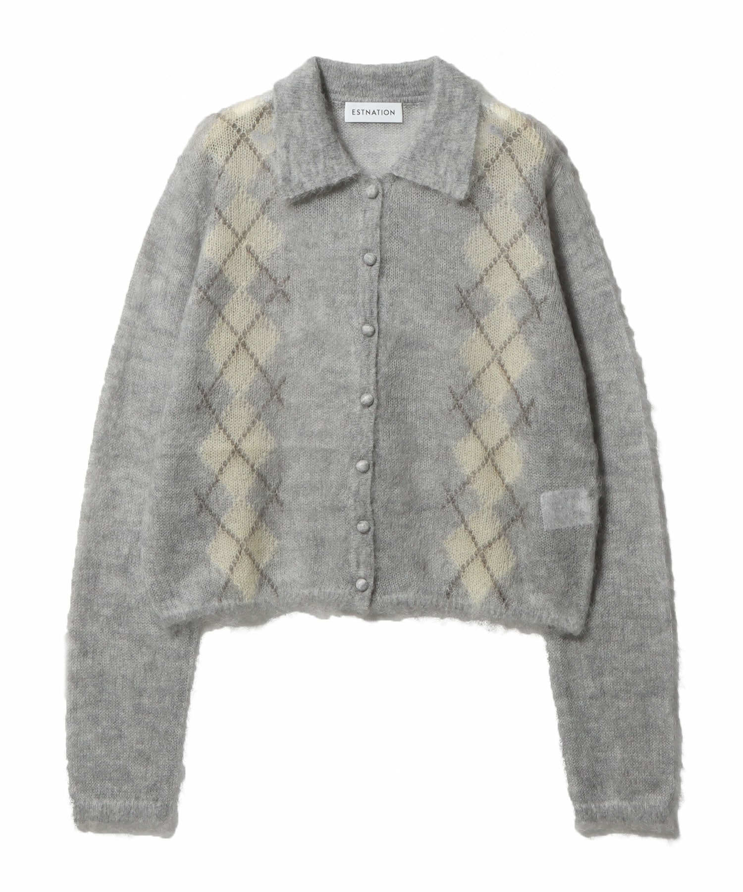 インターシャ編みで表現した優しいパステル配色のアーガイル柄が、クラシックながらフェミニンな印象に。
