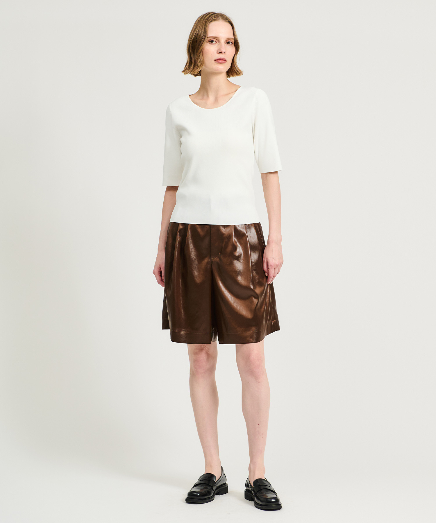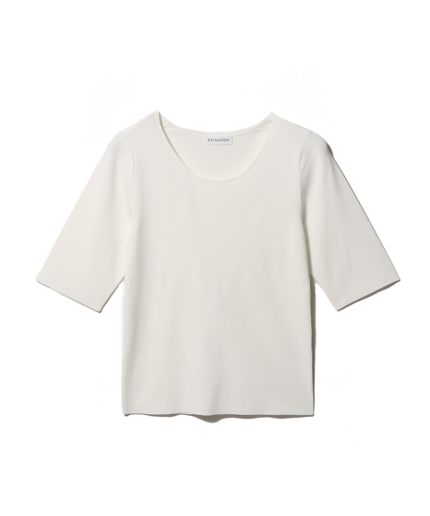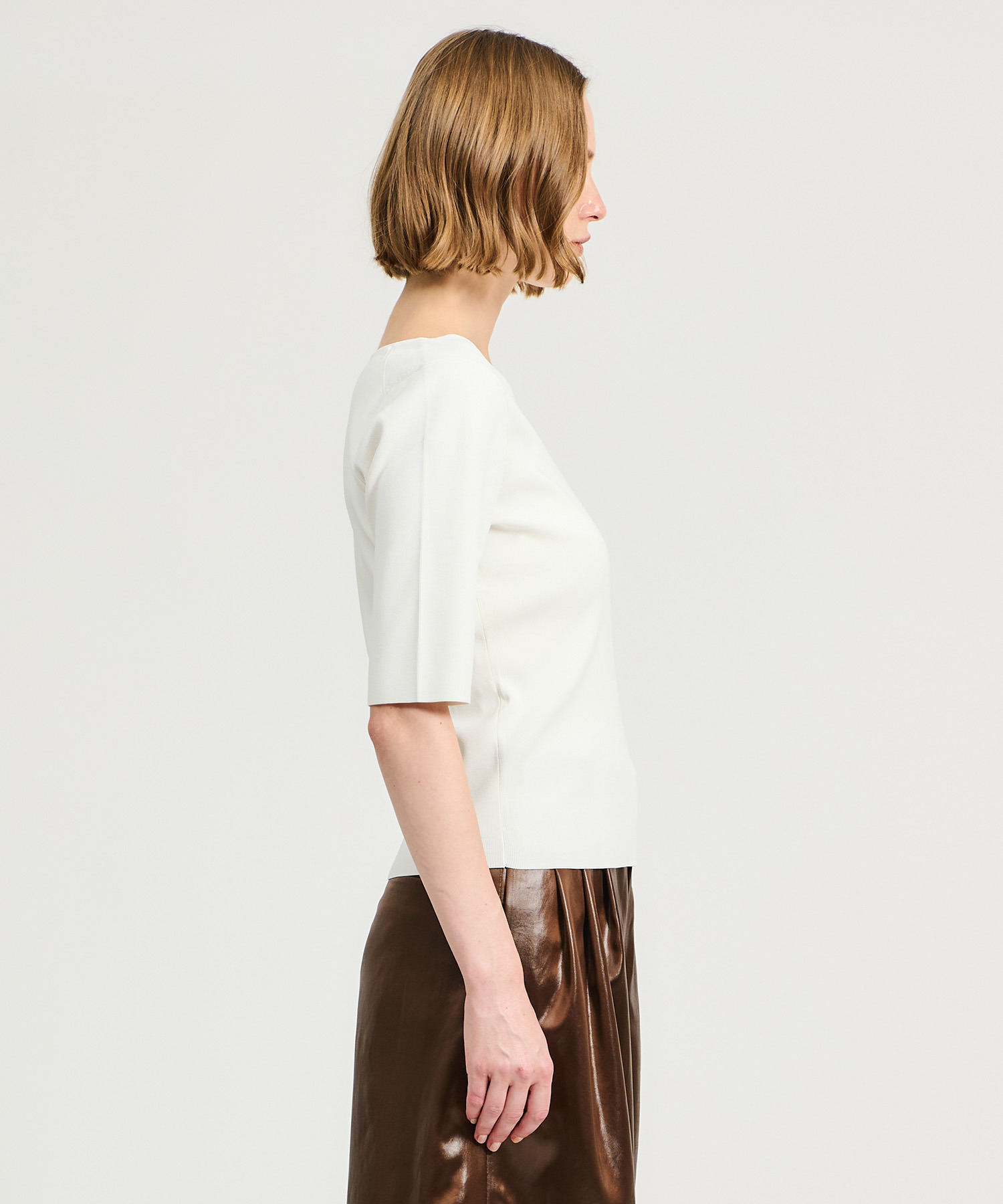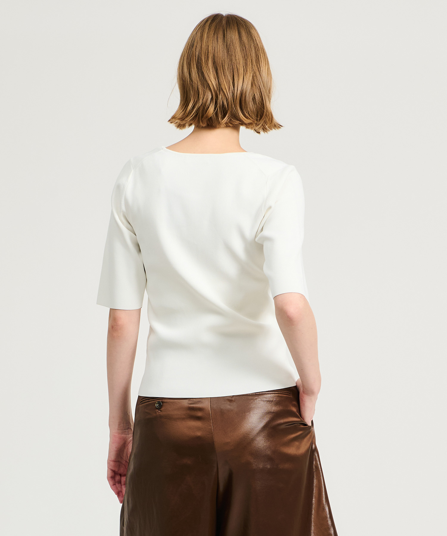 程よく開いたネックラインがデコルテを美しく見せてくれる半袖ニット。