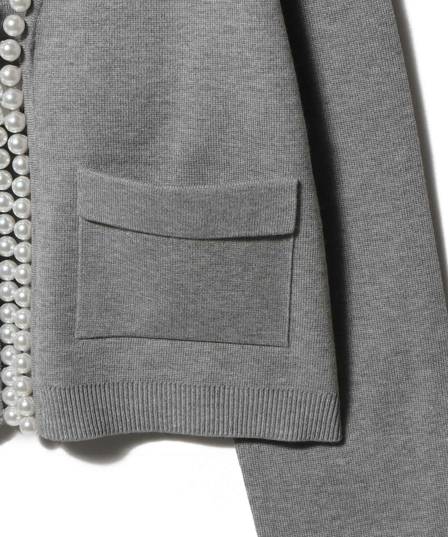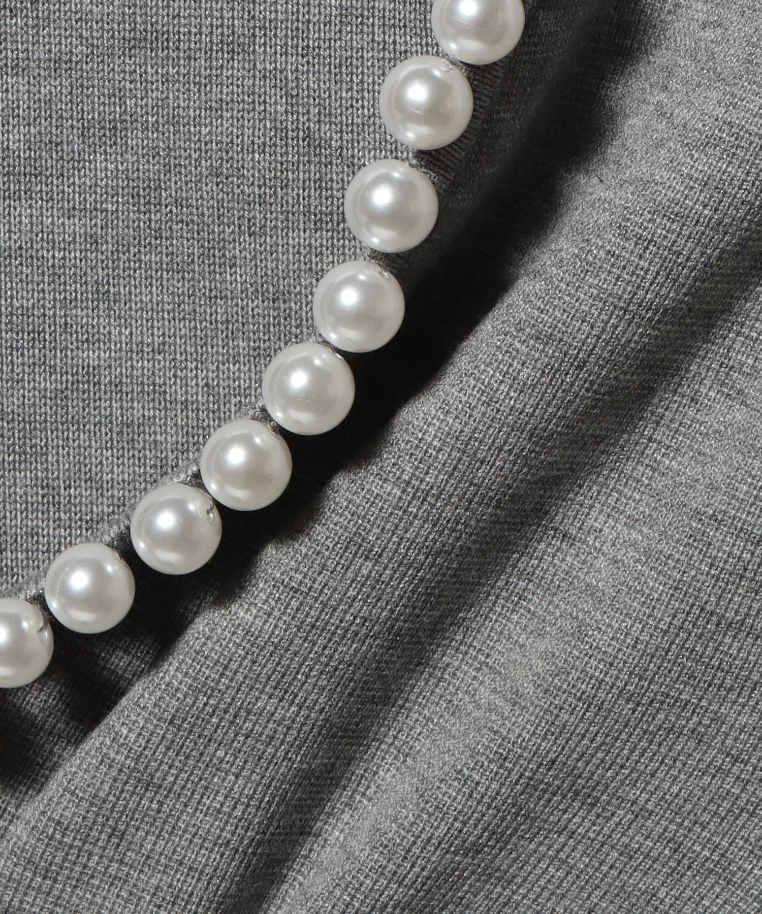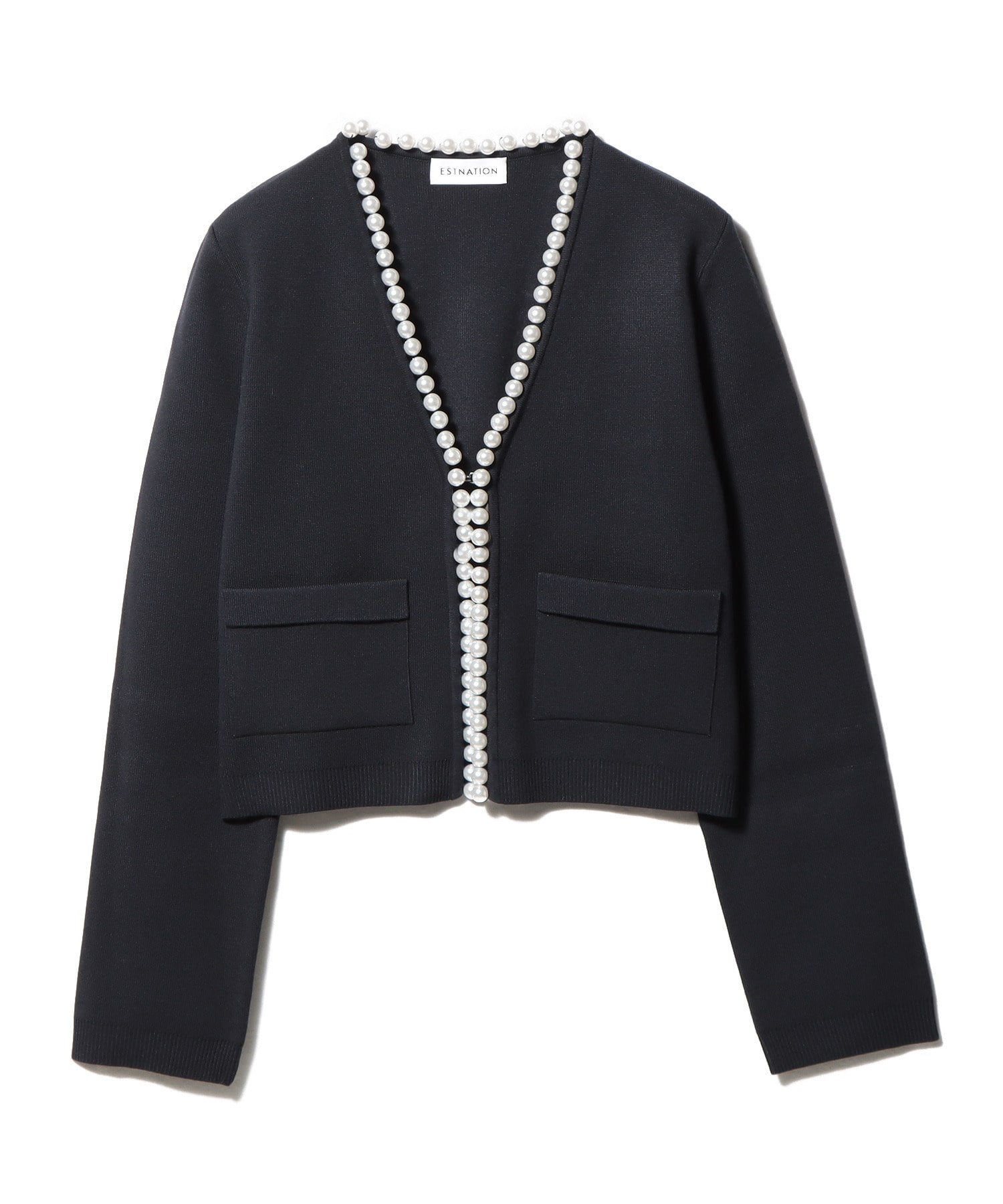 ぐるりとパールをあしらったアクセサリーのようなニットボレロ。