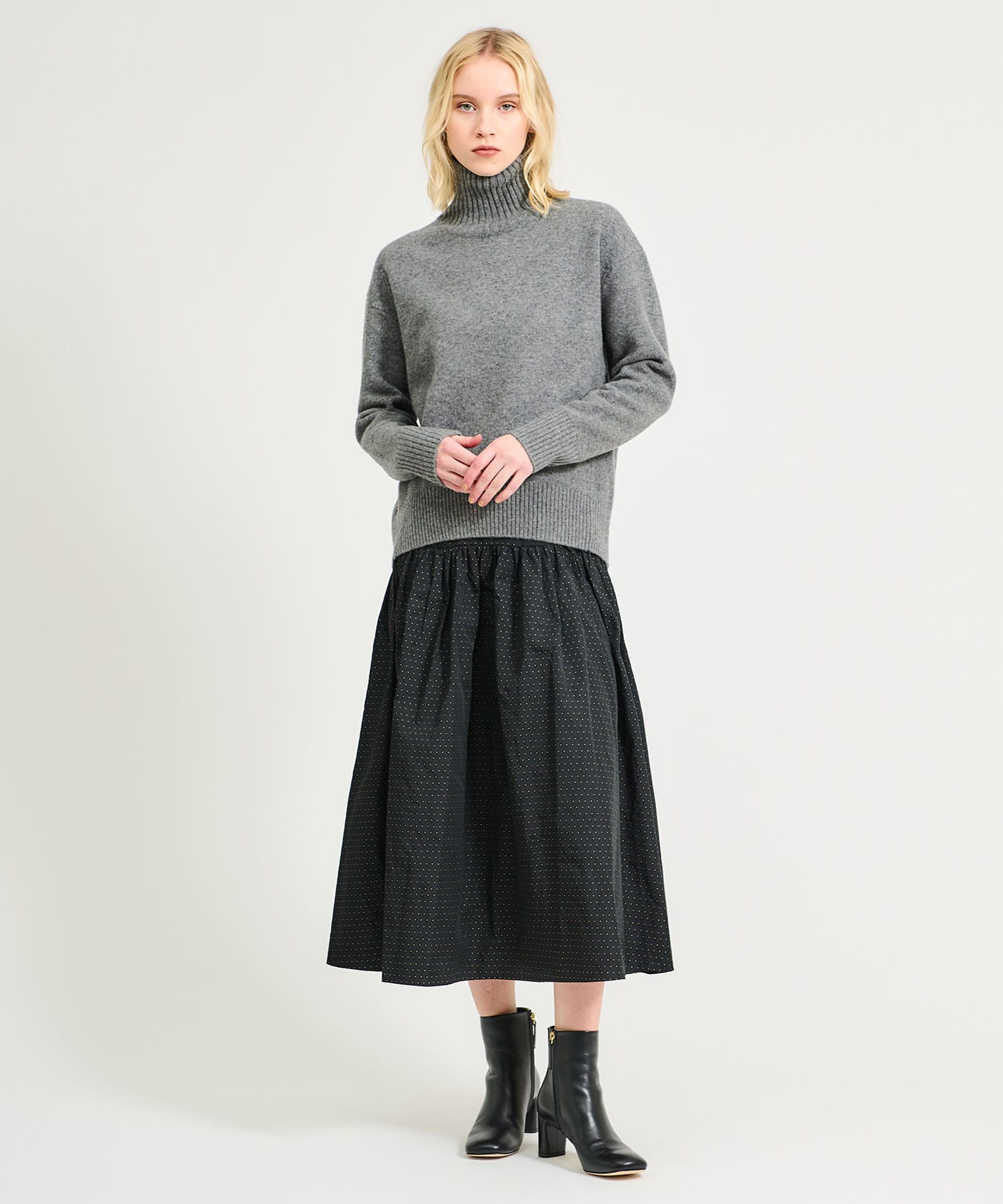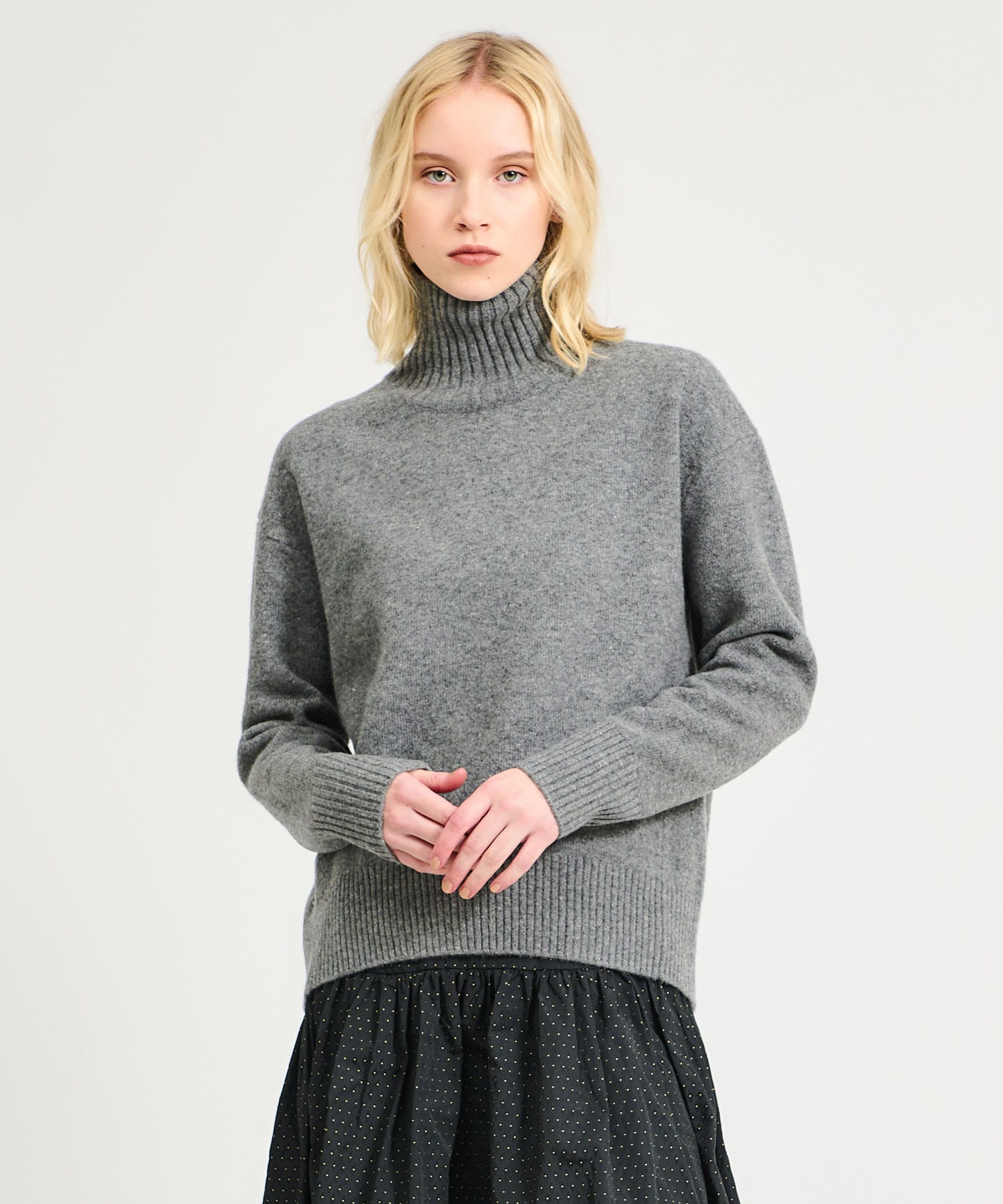 紡毛素材を毛羽立ちなく仕上げた上品な風合いが魅力のハイネックニット。