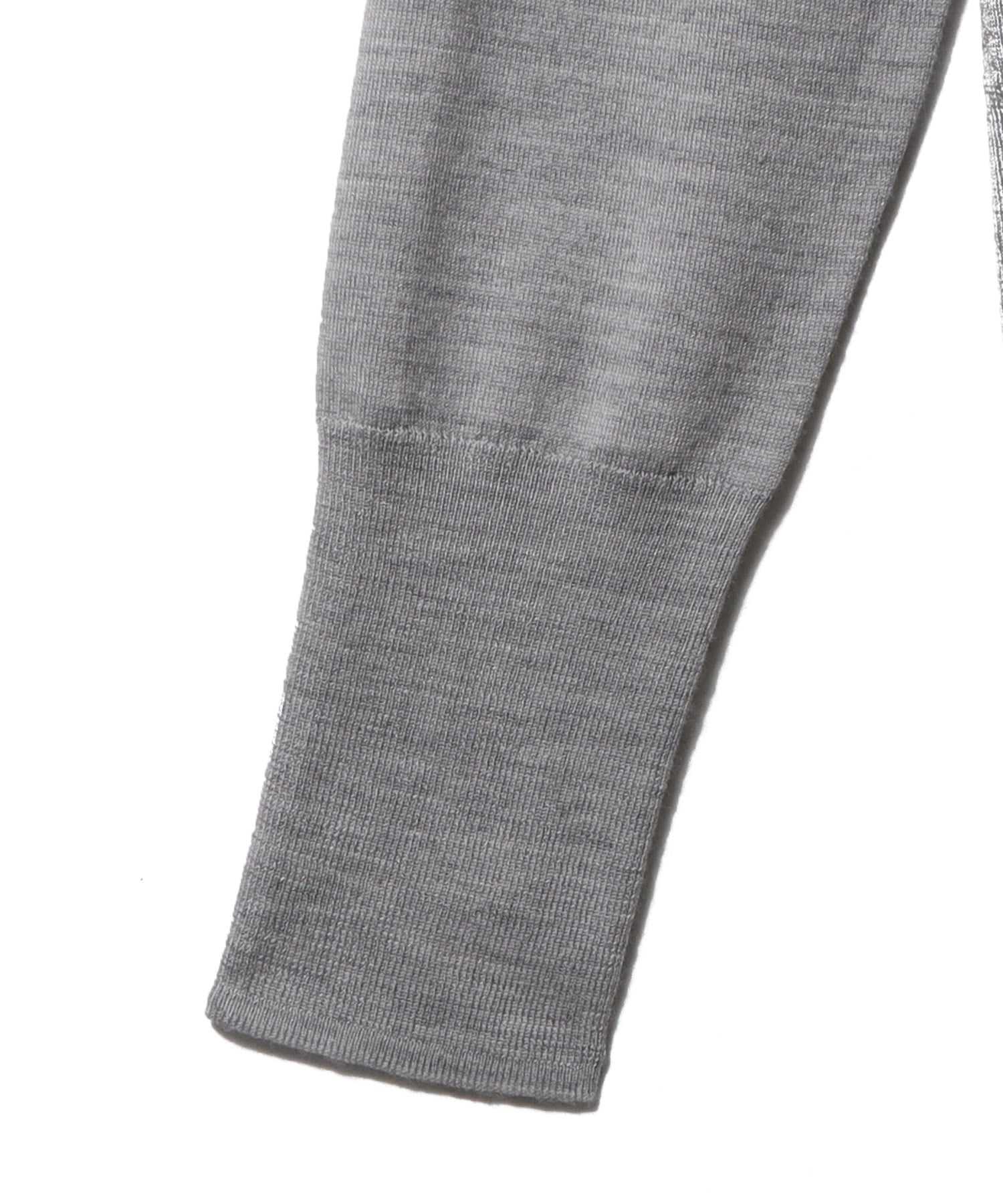 20ゲージという希少な機械で編立てられ、ジャージのような薄さとなめらかな肌ざわりと上品な光沢、そしてカシミヤならではの柔らかさがあいまった素材です。