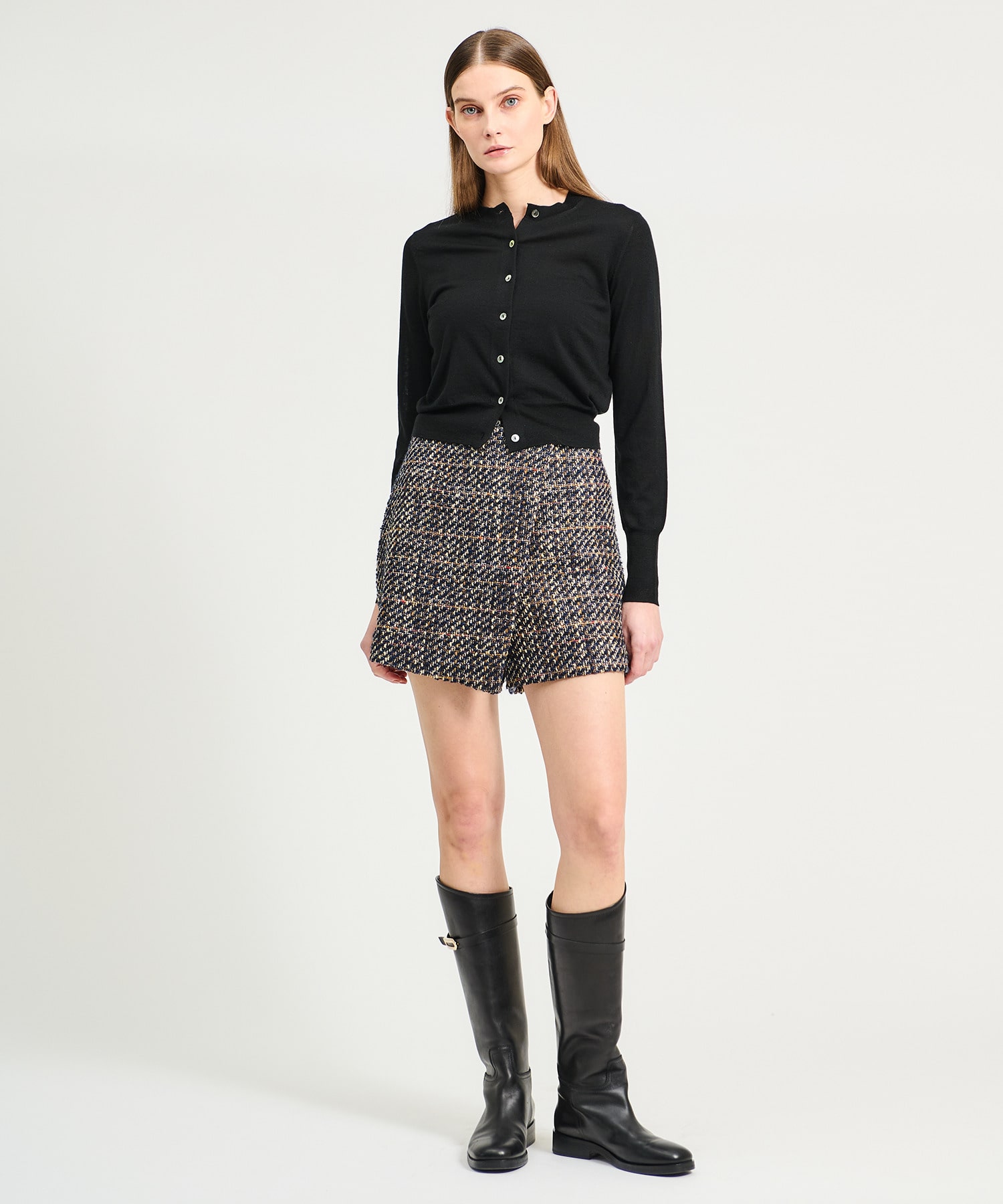 オーストラリア産の特に細く柔らかなウールに、最上級のシルク、厳選されたカシミヤを組み合わせた贅沢な素材を使用したニットカーディガン。