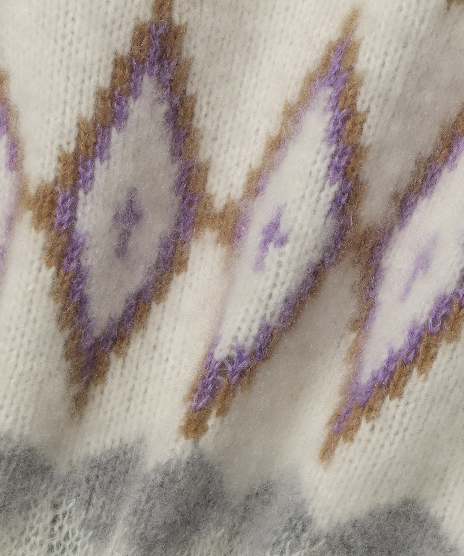 柄がグラデーション状に見えるようにファー加工を加え、シャギー感を出しました。パステル調の色目を基調にしたオフホワイトベースと、ブラウンのみを使用したブラウンベースの2色展開。