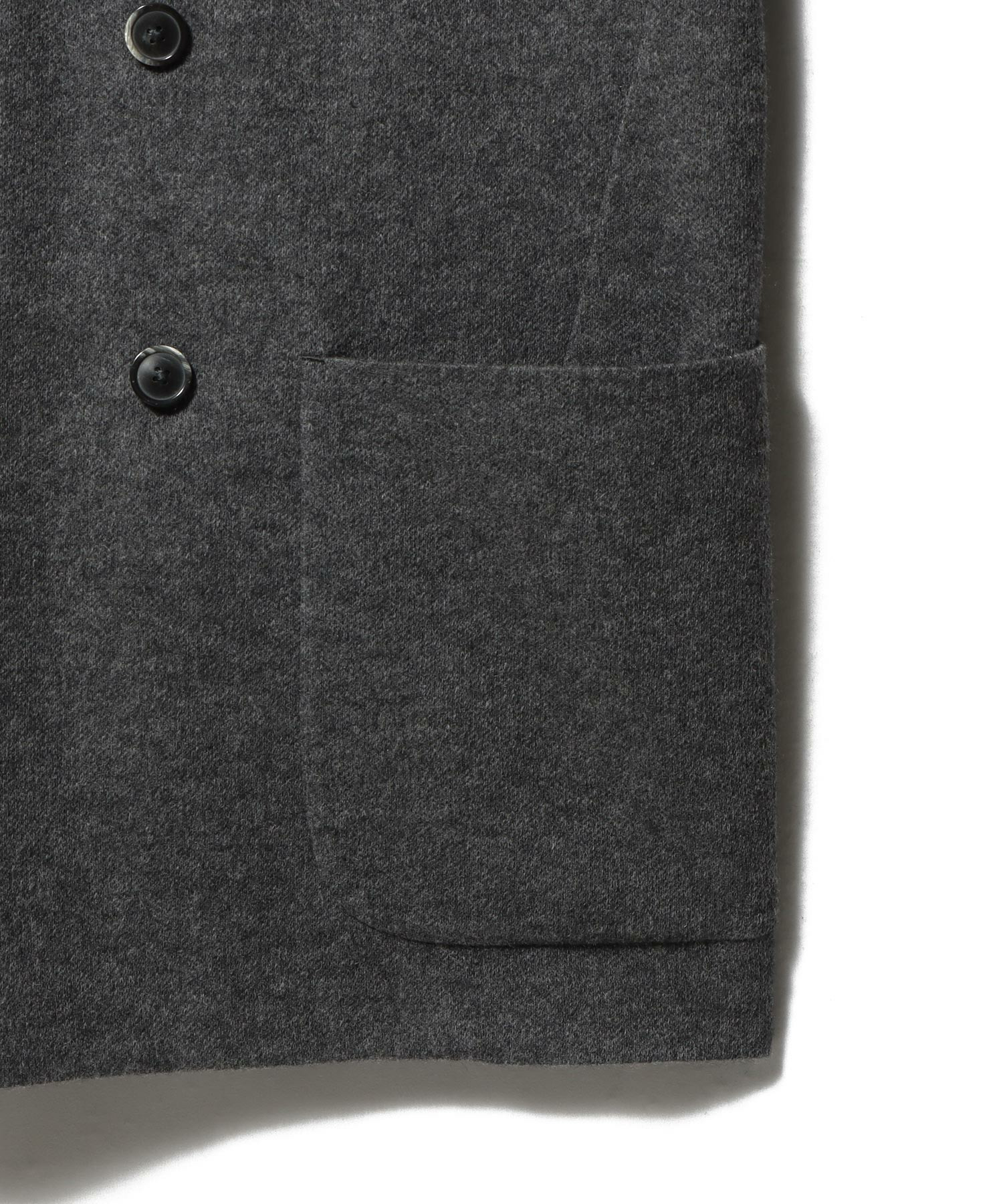 毛並みのあるエアリーなカシミヤの糸をベースに編立てられた生地は非常に軽く、生地裏面に滑りのある芯地がボンディングされているので軽さだけでなく保形性にも優れた素材となっております。
