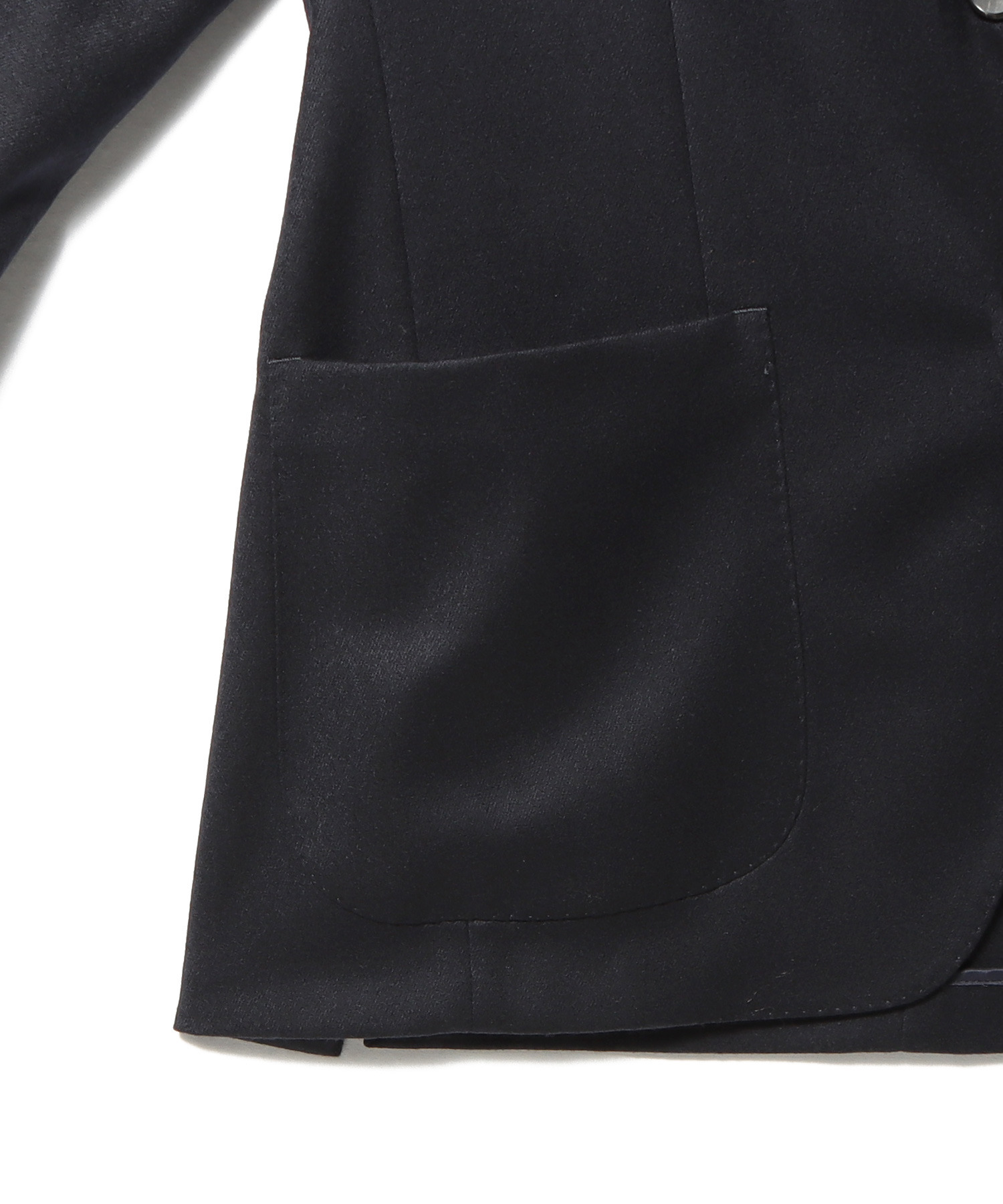 適度なワイドラペルの2釦パッチポケットデザインに、丸みのある肩まわりとアームホールが快適な着心地です。シェイプさせたウエストラインが、さりげない色気を演出する一着です。