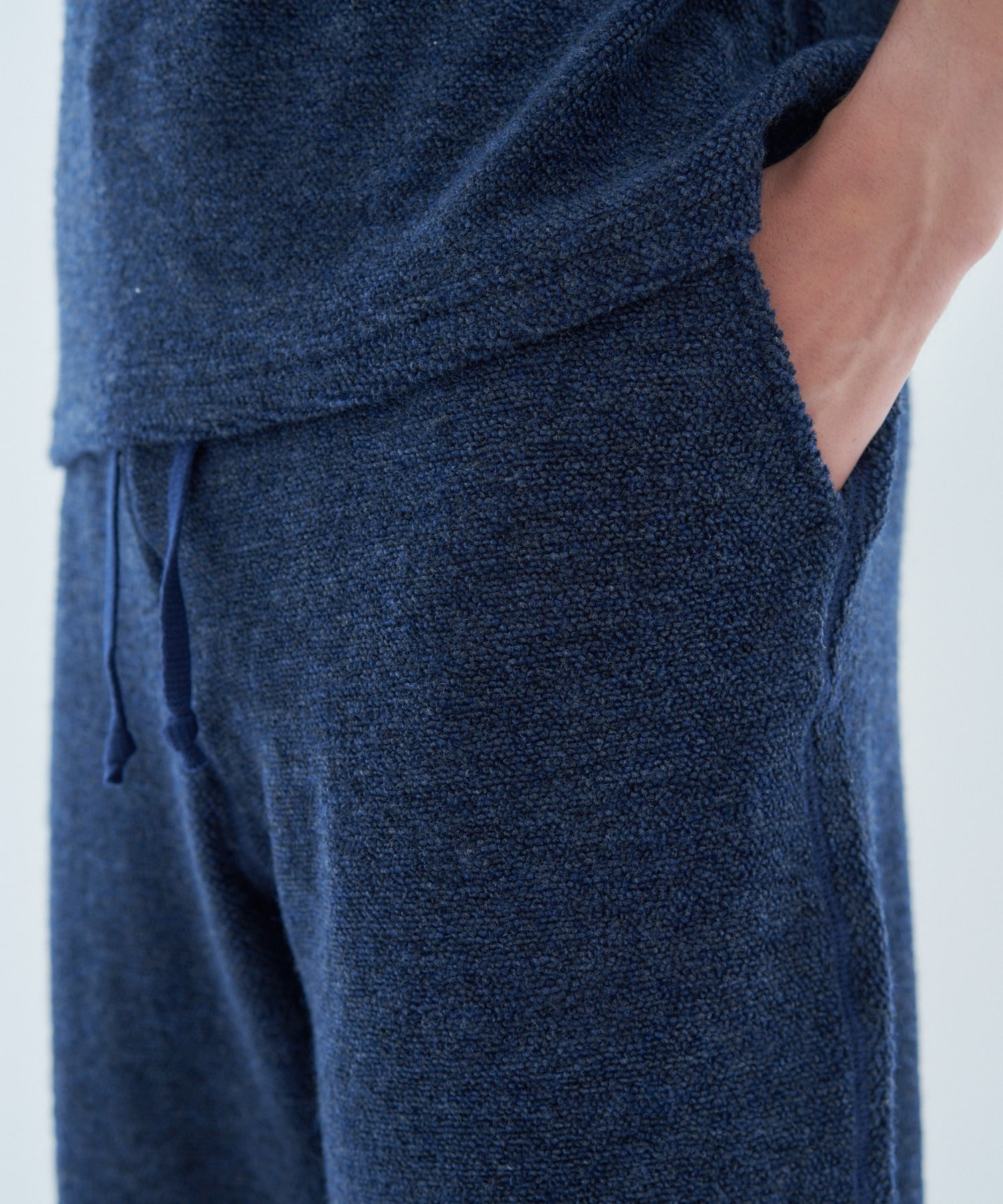 ウールカシミヤの混紡糸とコットンカシミヤの混紡糸を使用して編み立てたパイル素材のショーツ。
