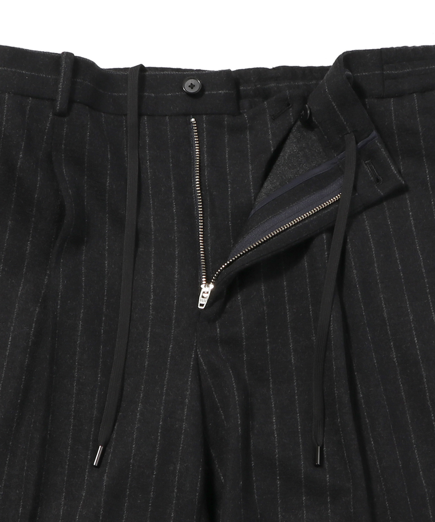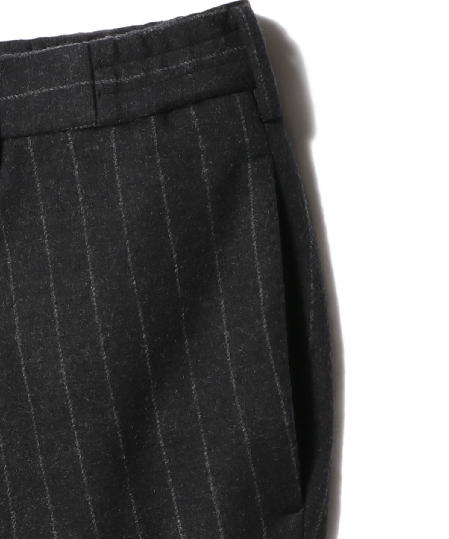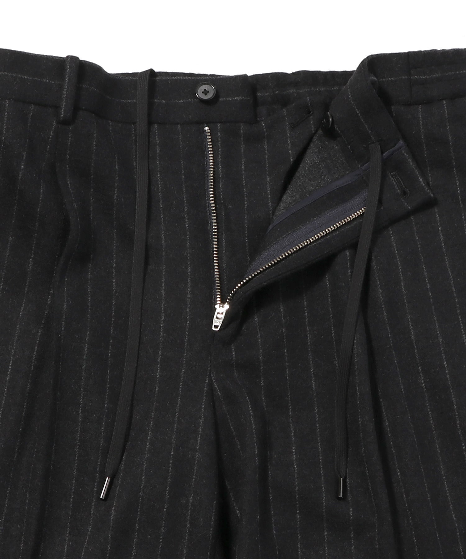 フランネルチョークストライプをジャージで表現したイージースラックス。