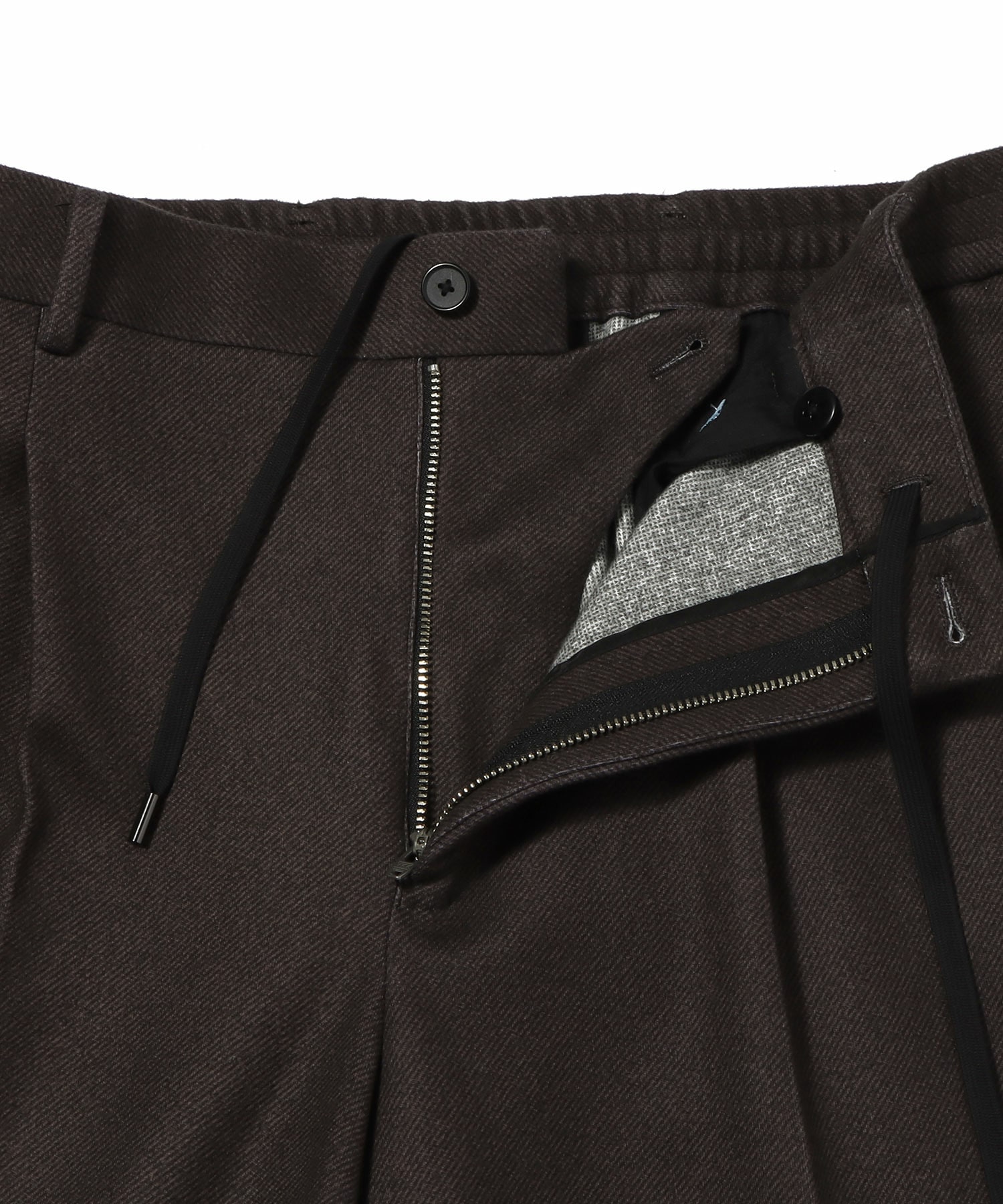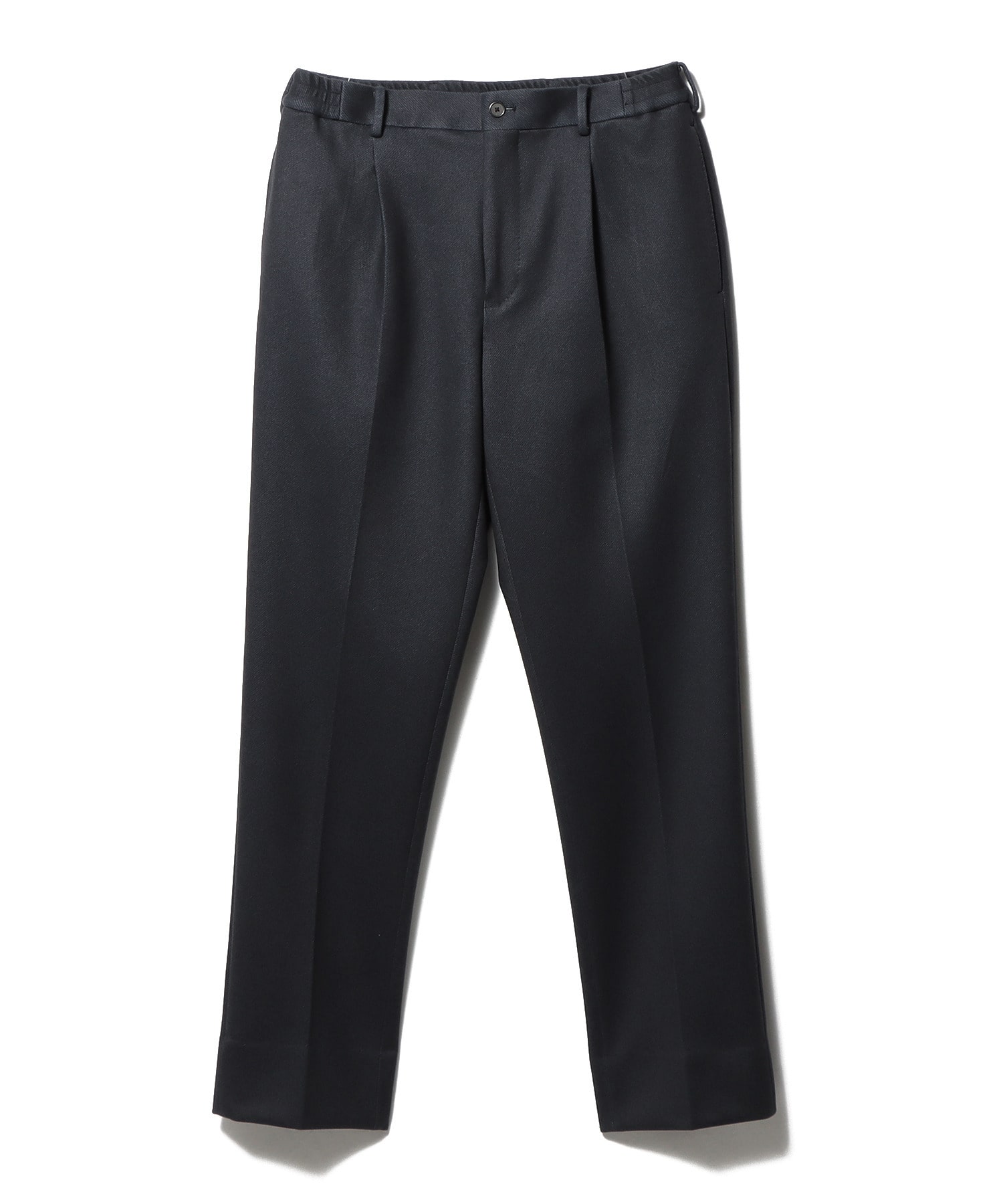 1プリーツでヒップ周りに程よくゆとりを持たせたテーパードシルエット。