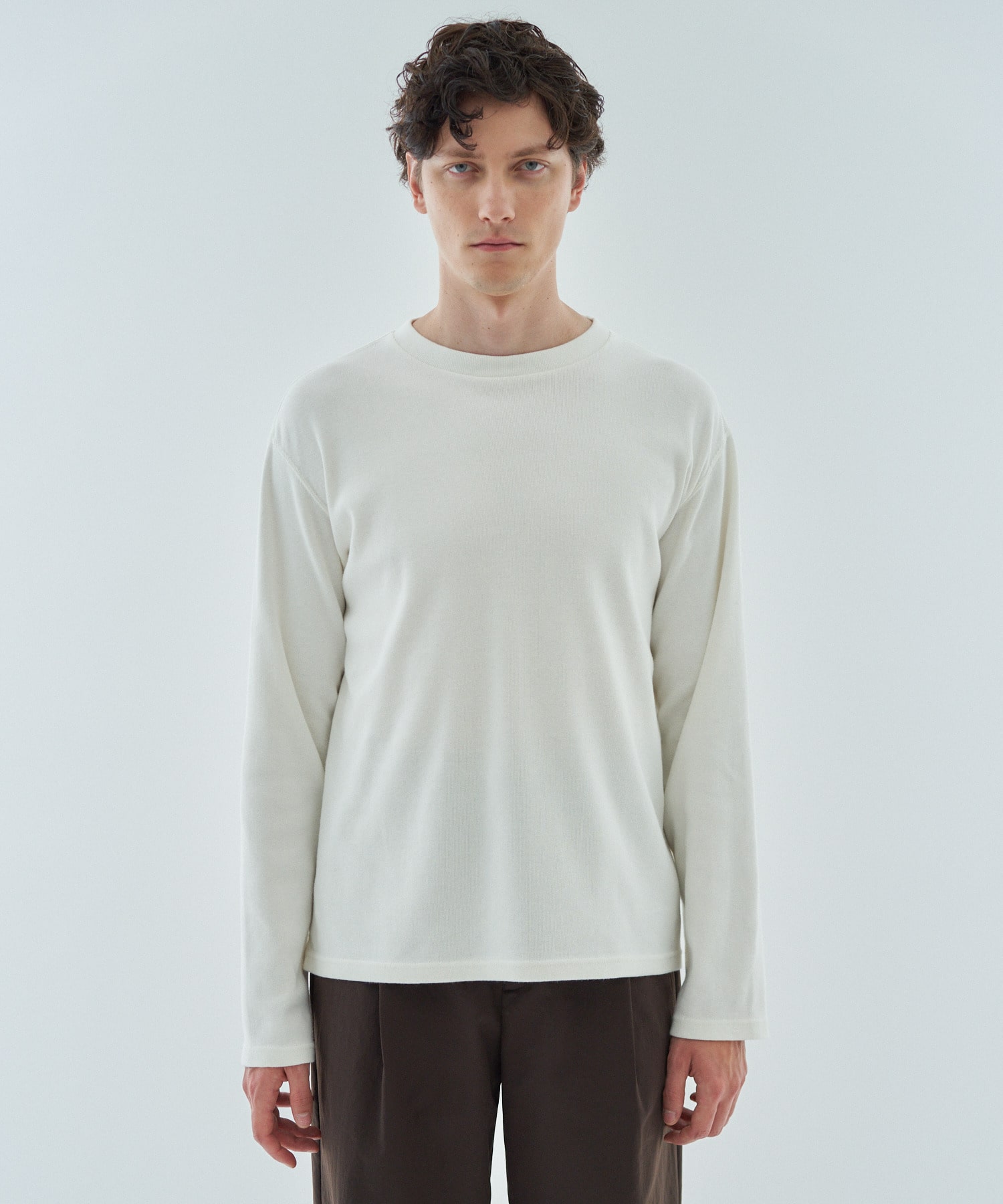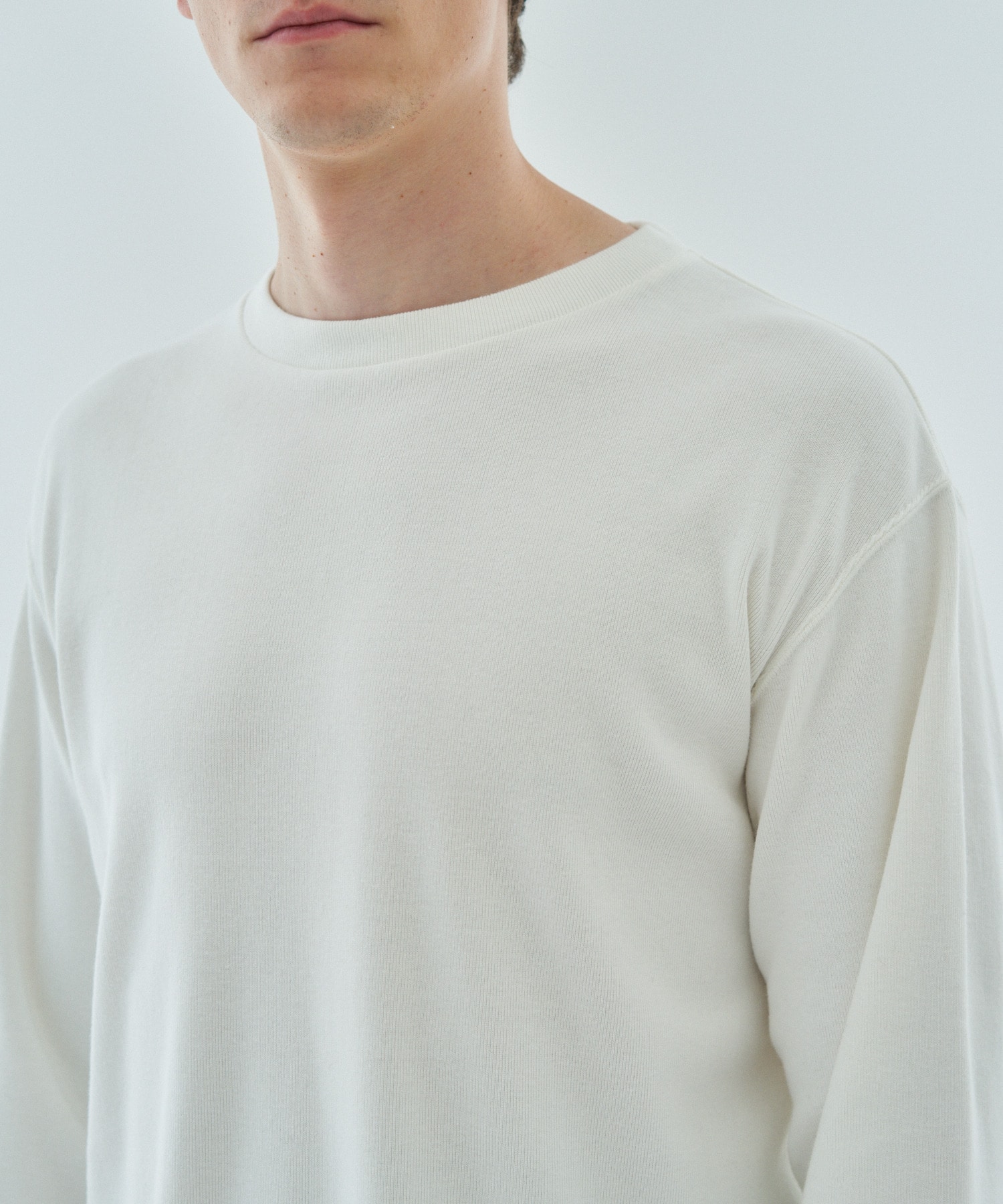 ニットライクな表情と程よい厚みを兼ね備えた、太番手コットンフライスのクルーネックカットソー。
