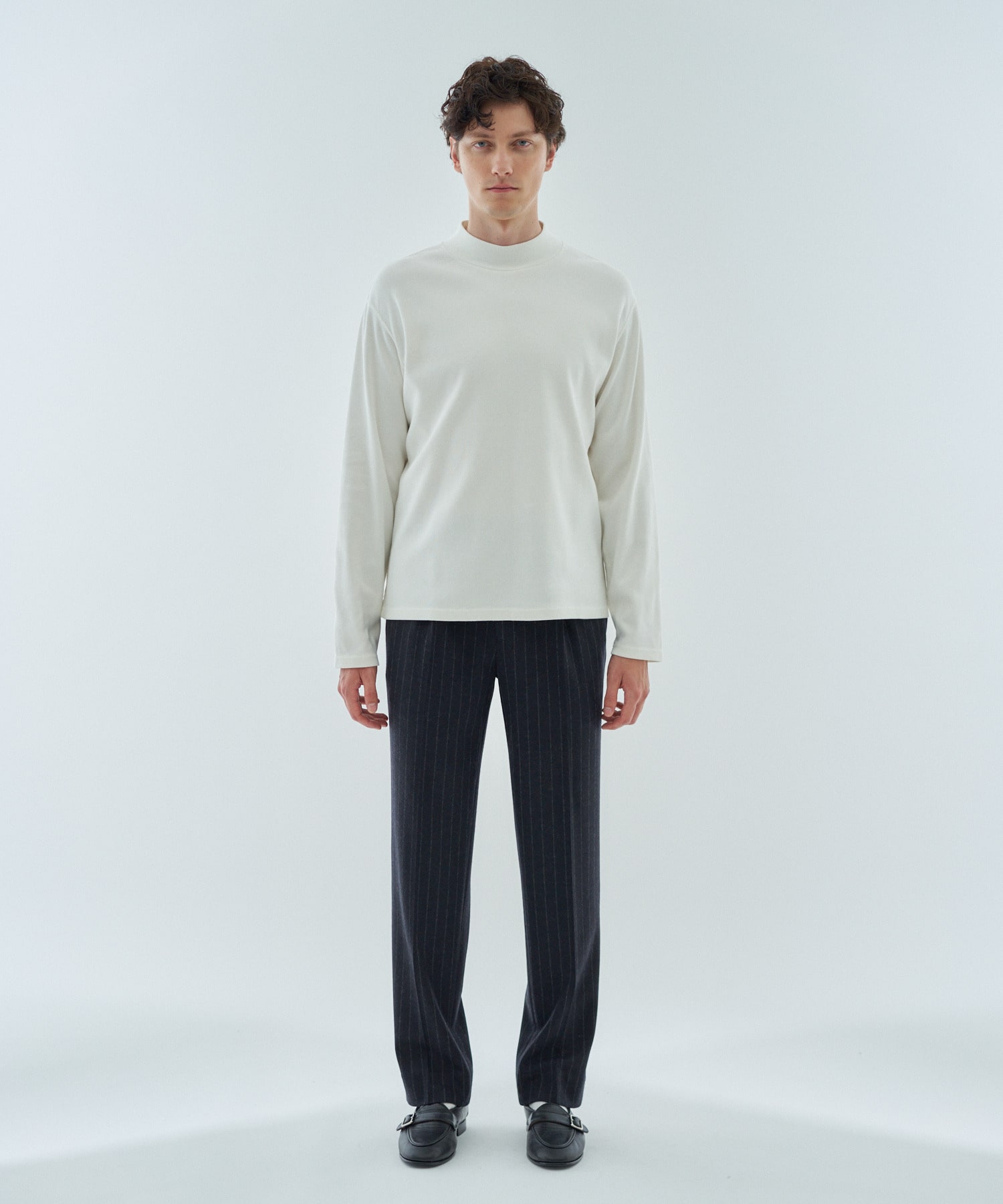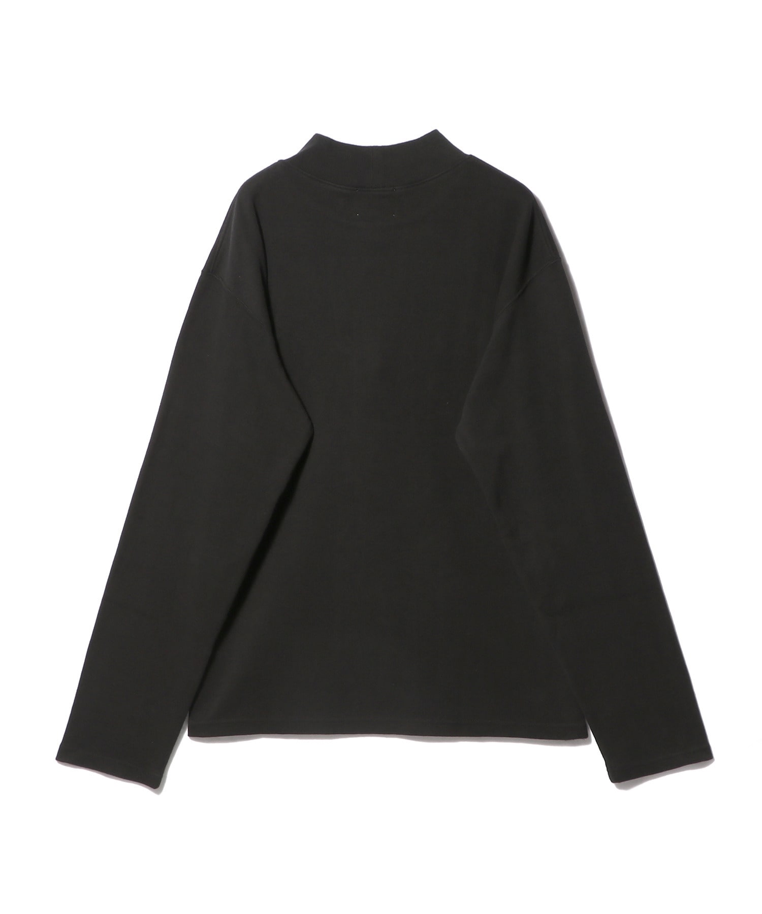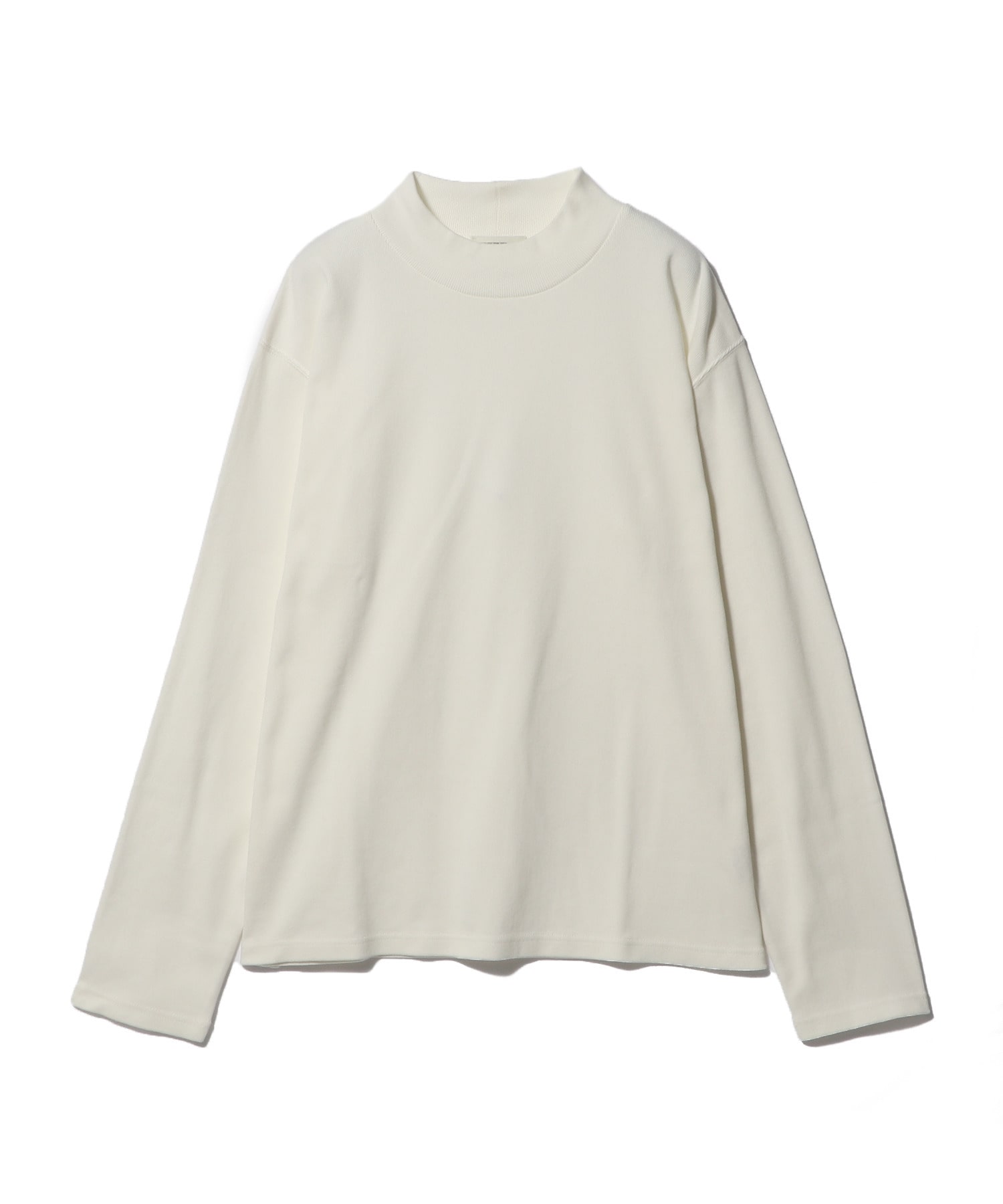 二ットのような表情と程よい厚みが魅力の、太番手コットンフライスを使用したモックネックカットソー。