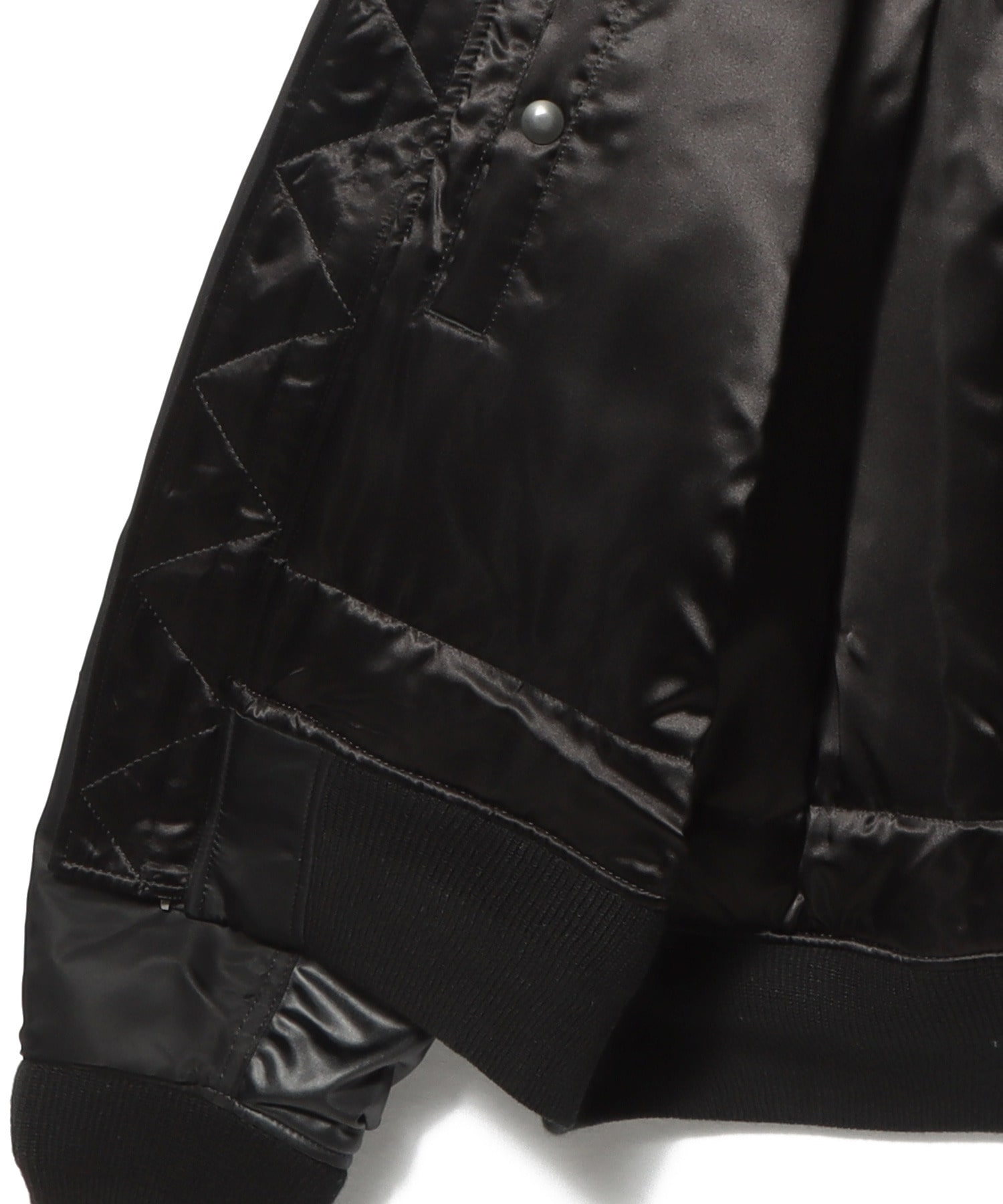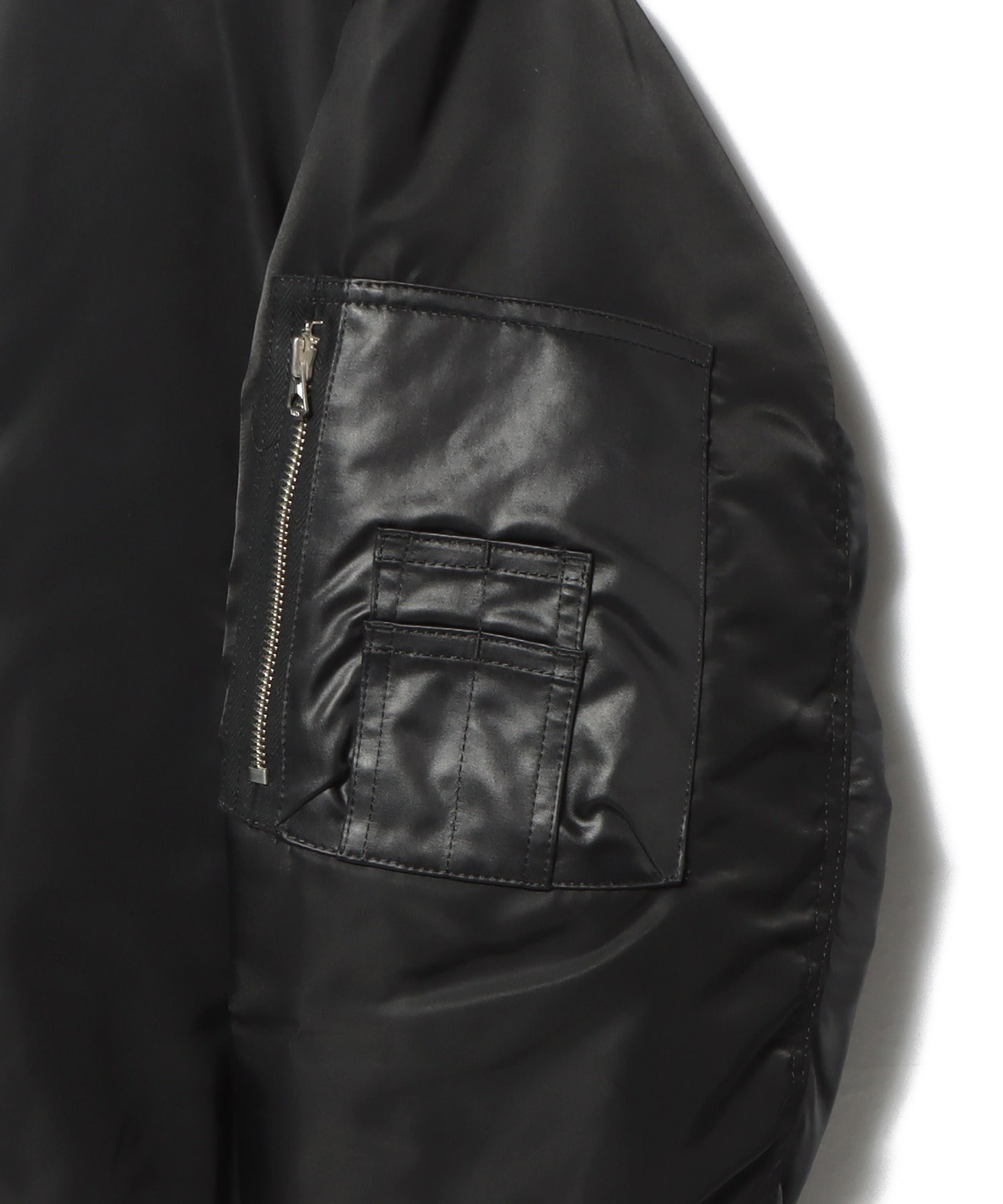 袖下とシガレットポケットに光沢感のある異素材を配し、アクセントを加えています。