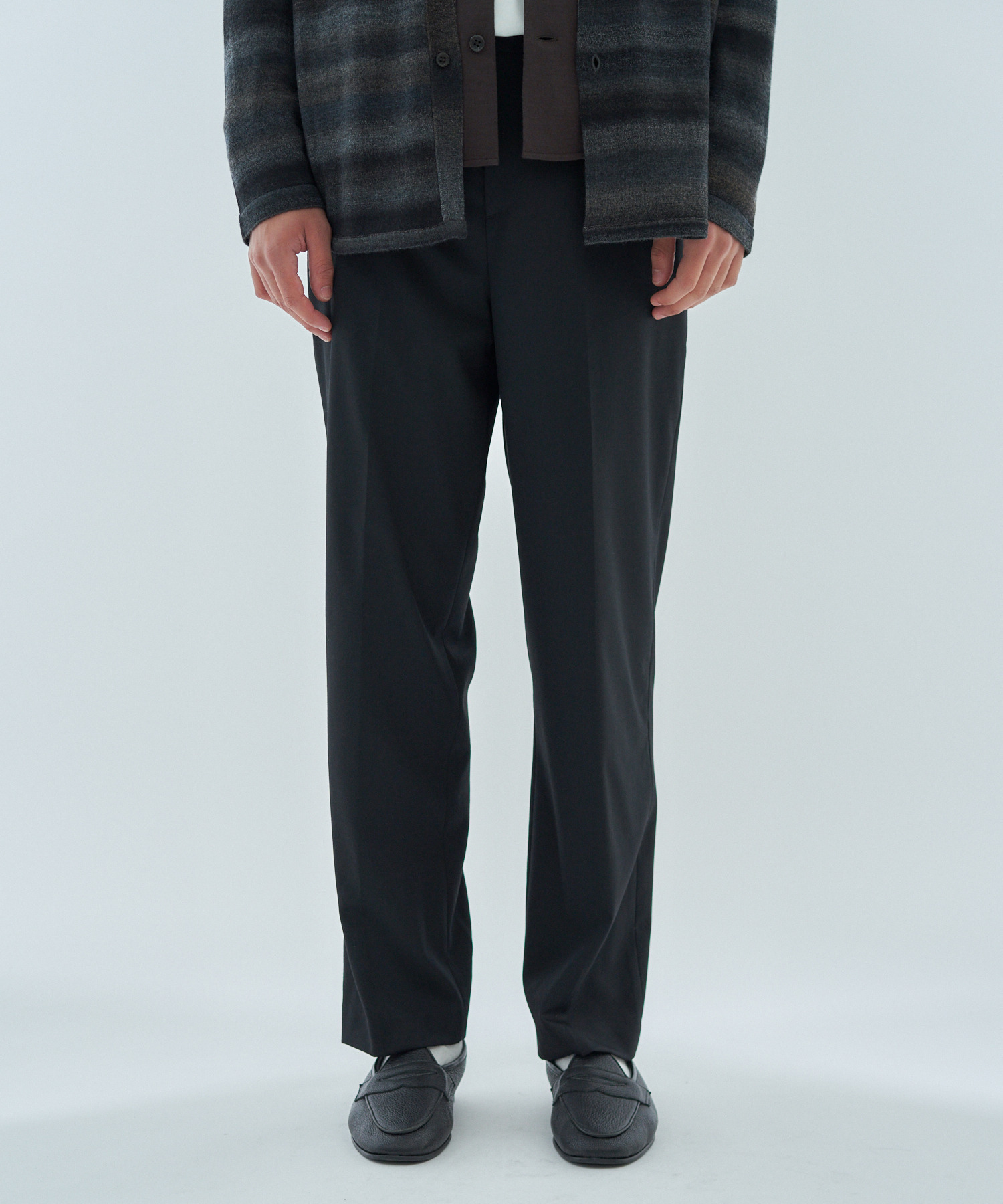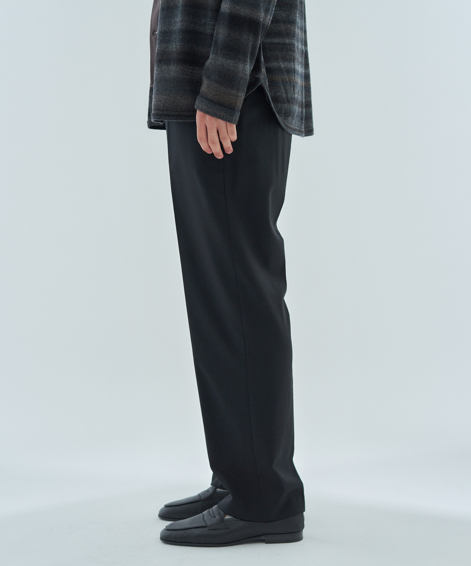 後ろ裾にはヘリンボンテープが縫い付けられており、裾がまっすぐ美しく落ちるように設計されています。細部にまでこだわった作りが、シンプルながらも上質な印象の一本。