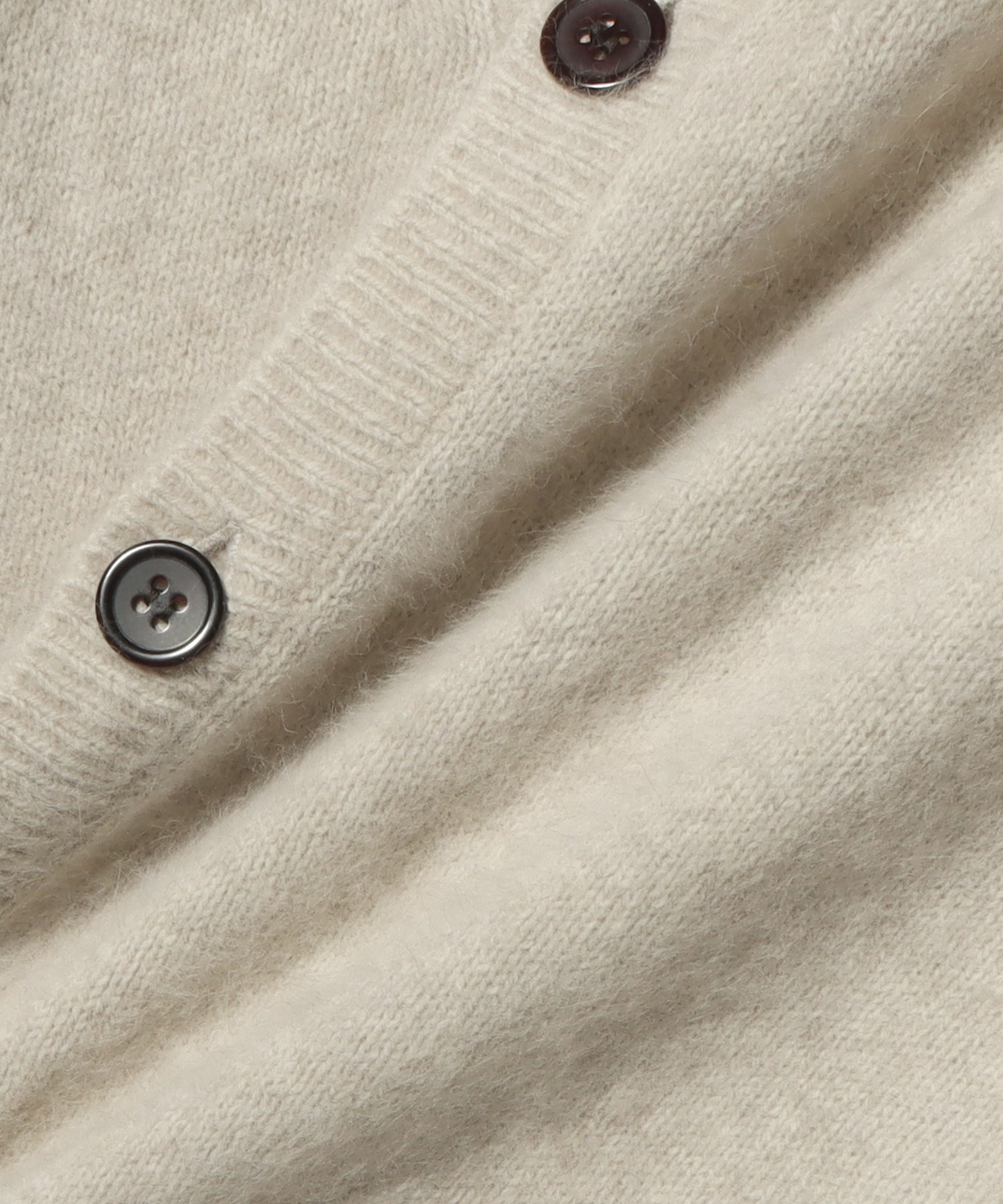 フォックスウール特有の柔らかさと膨らみがあり、驚くほど軽い着心地が魅力です。毛足はビロードのように滑らかで、シルクをブレンドすることで微光沢とさらなる軽さをプラスしました。