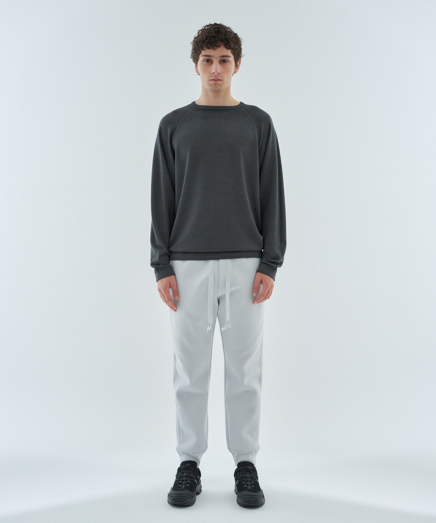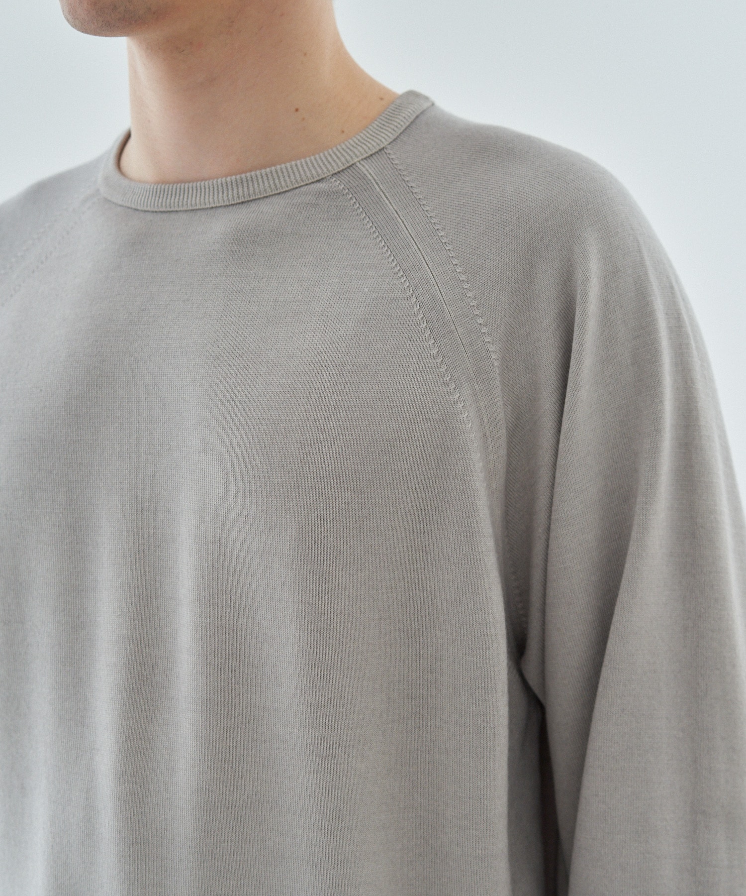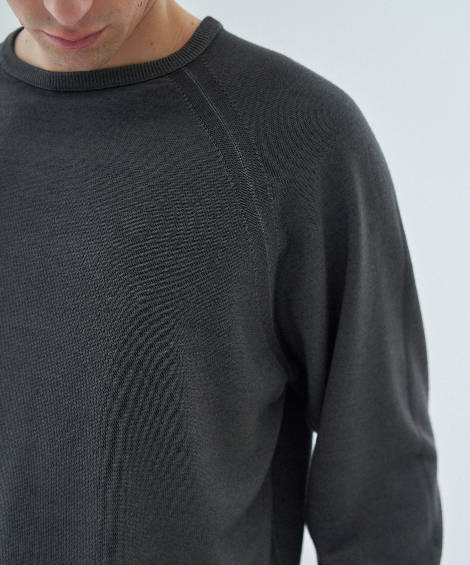 度目を詰めて編むことでほどよい肉感と軽い着心地を両立。上質素材でありながら、トレーナー感覚で気負わず着られる一枚です。