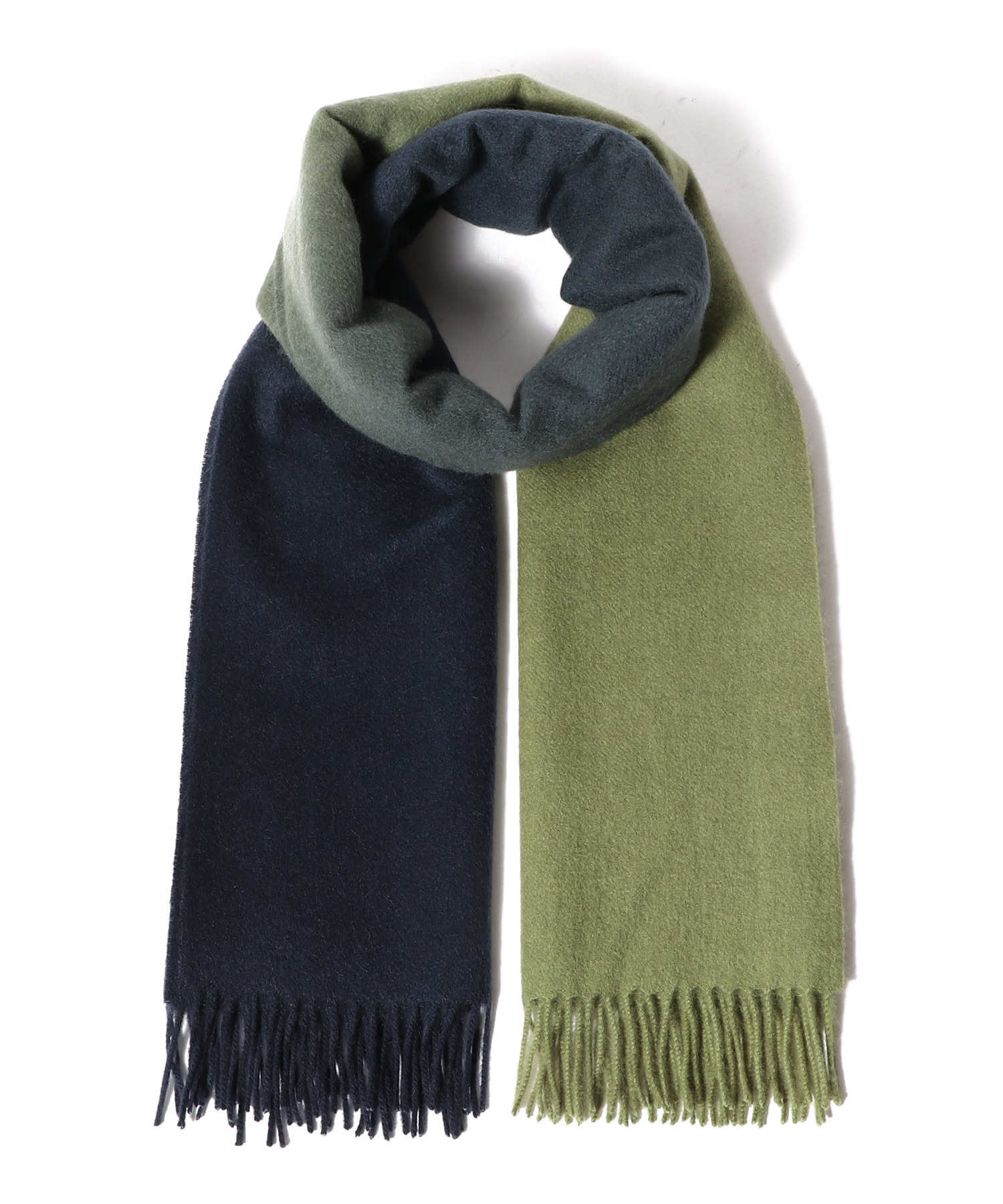 鮮やかなグラデーションカラーがスタイリングに彩りを添え、巻き方次第でさまざまな表情を楽しめるのも魅力。程よいサイズ感で扱いやすく、性別を問わずデイリーに活躍します。