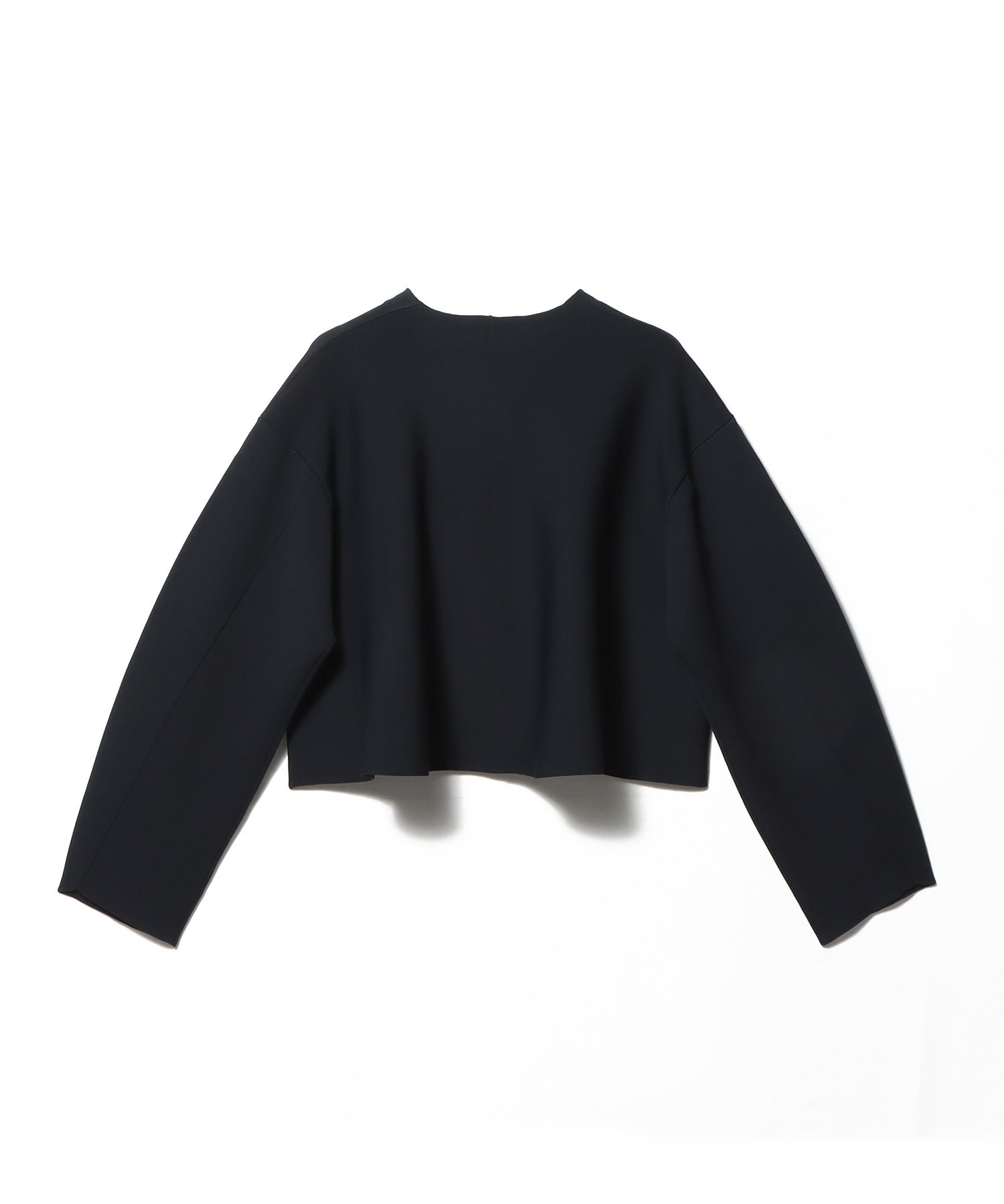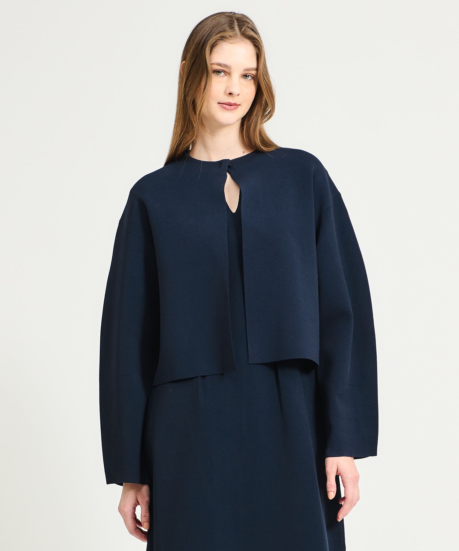 マットな合成繊維を使用した、ニットとは思えないクリーンな表面感のニットジャケット。