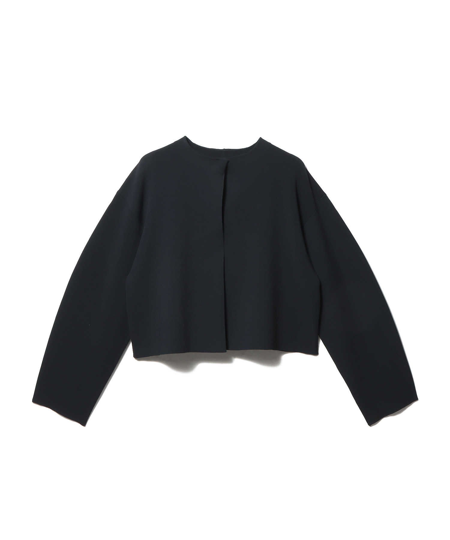 マットな合成繊維を使用した、ニットとは思えないクリーンな表面感のニットジャケット。