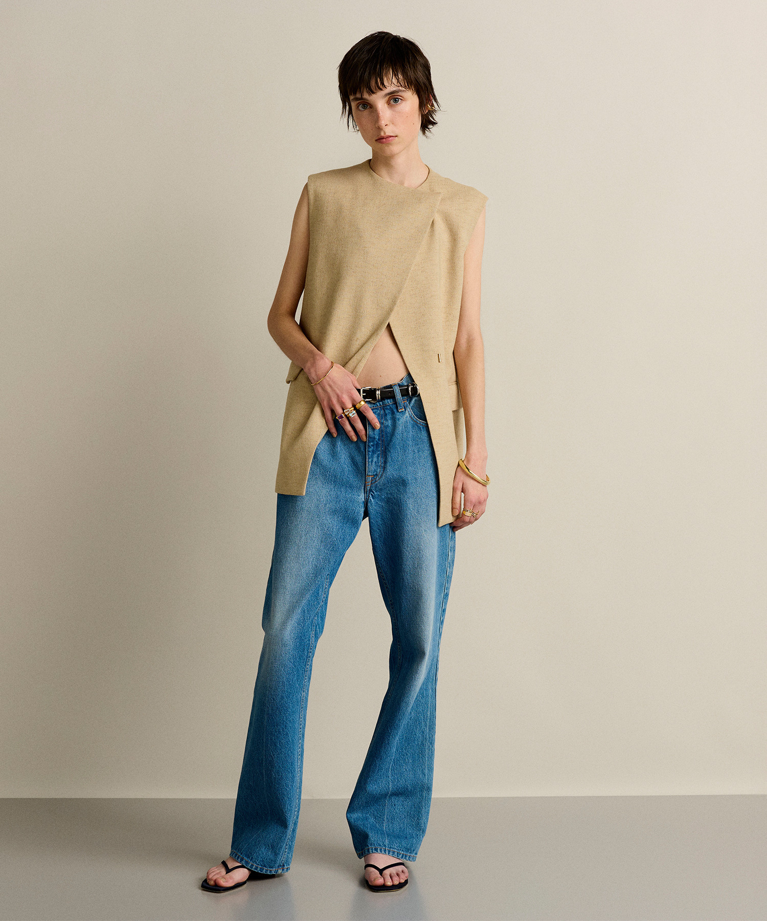 天然素材ならではのナチュラルな表情が魅力のベスト。