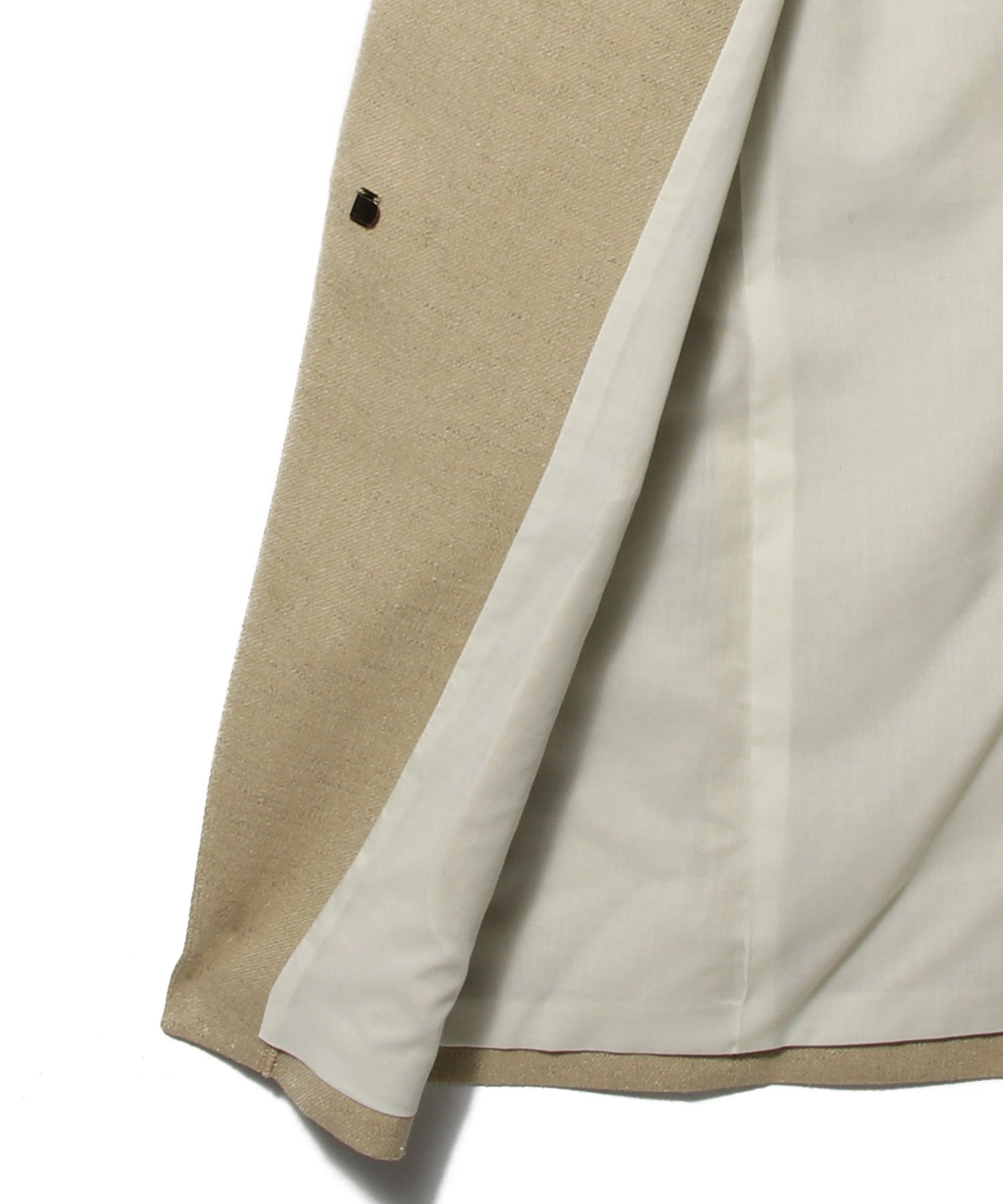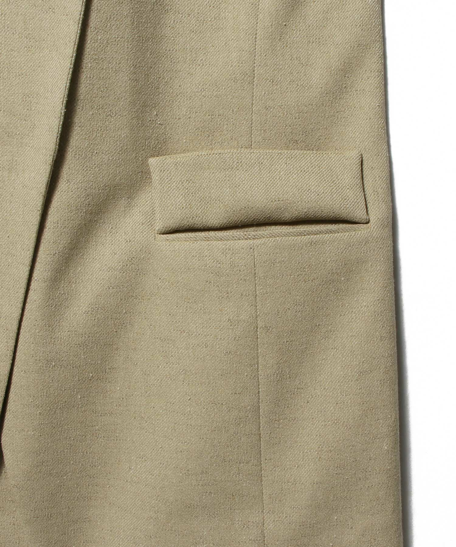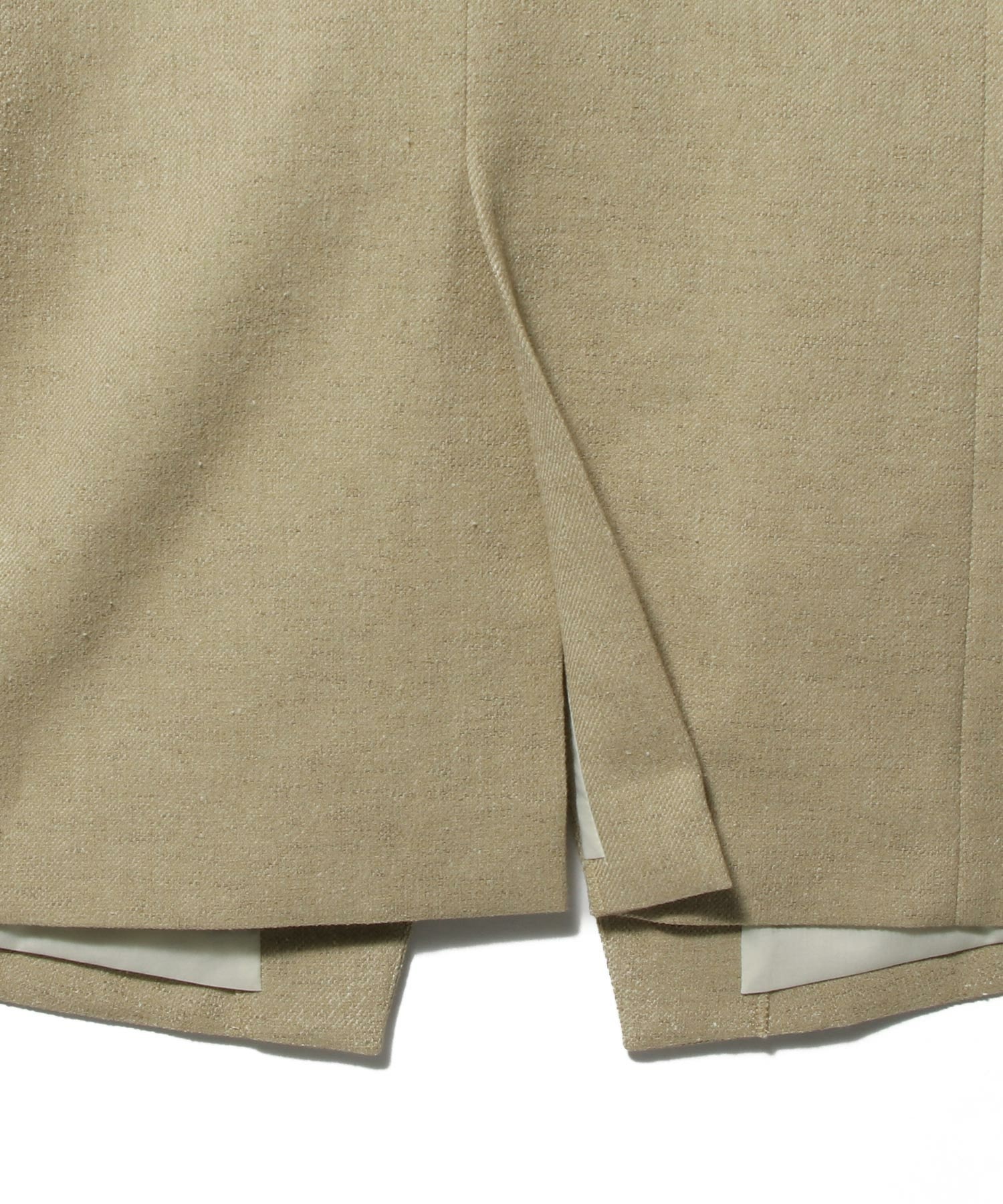 ラスティックムードのリネン混サマーツイルツイード素材を使用。ほっこりしすぎないよう、ドライタッチで少しハリを持たせた仕上げにしています。