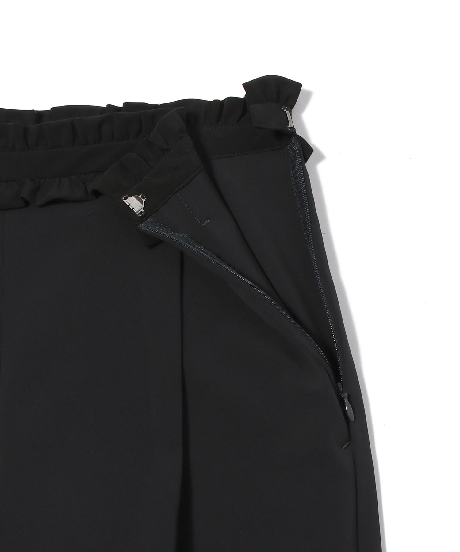 ウエストにあしらった、別布のフリルディテールがポイントで、甘くなり過ぎない大人の女性の可愛さを表現したデザインです。