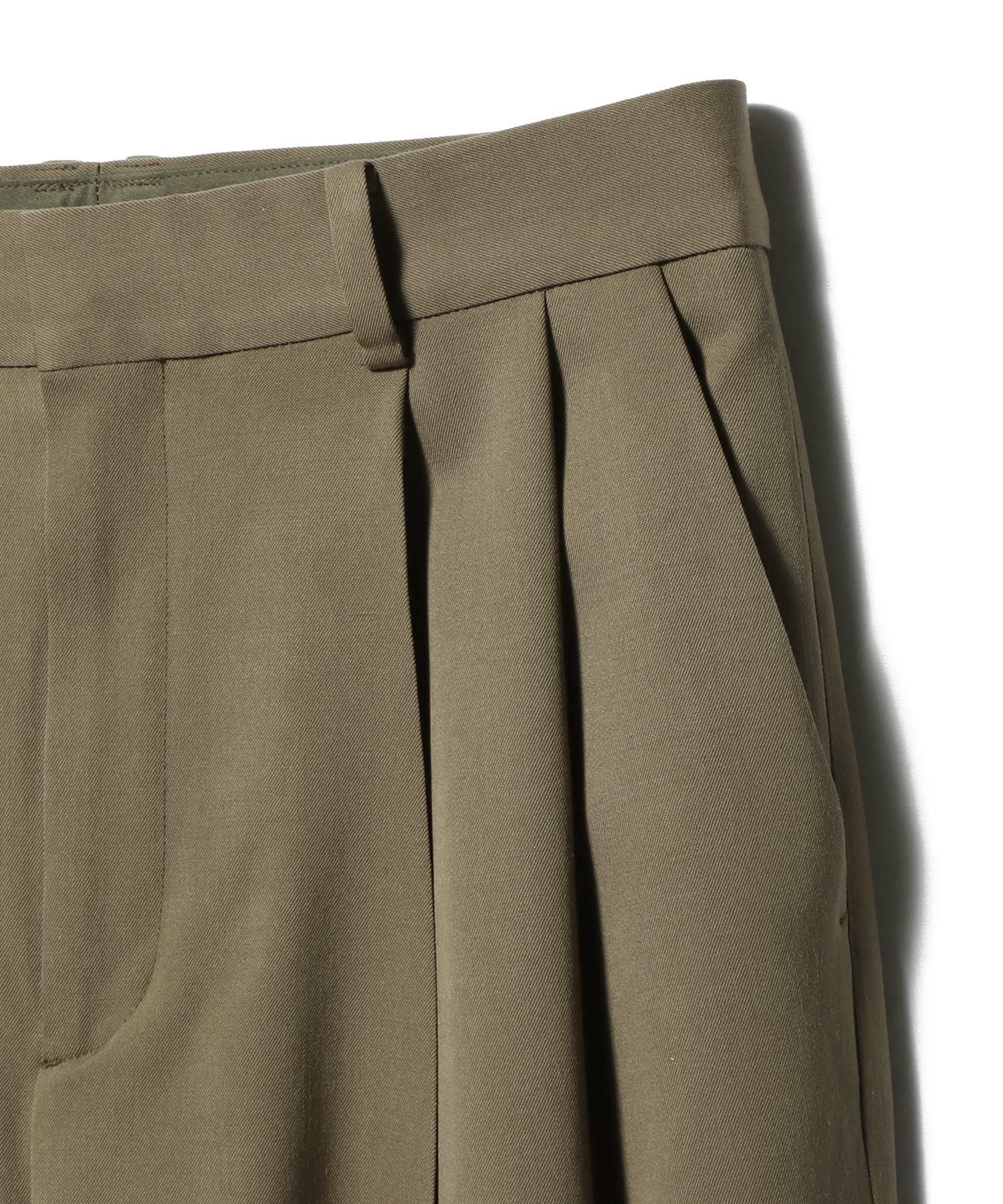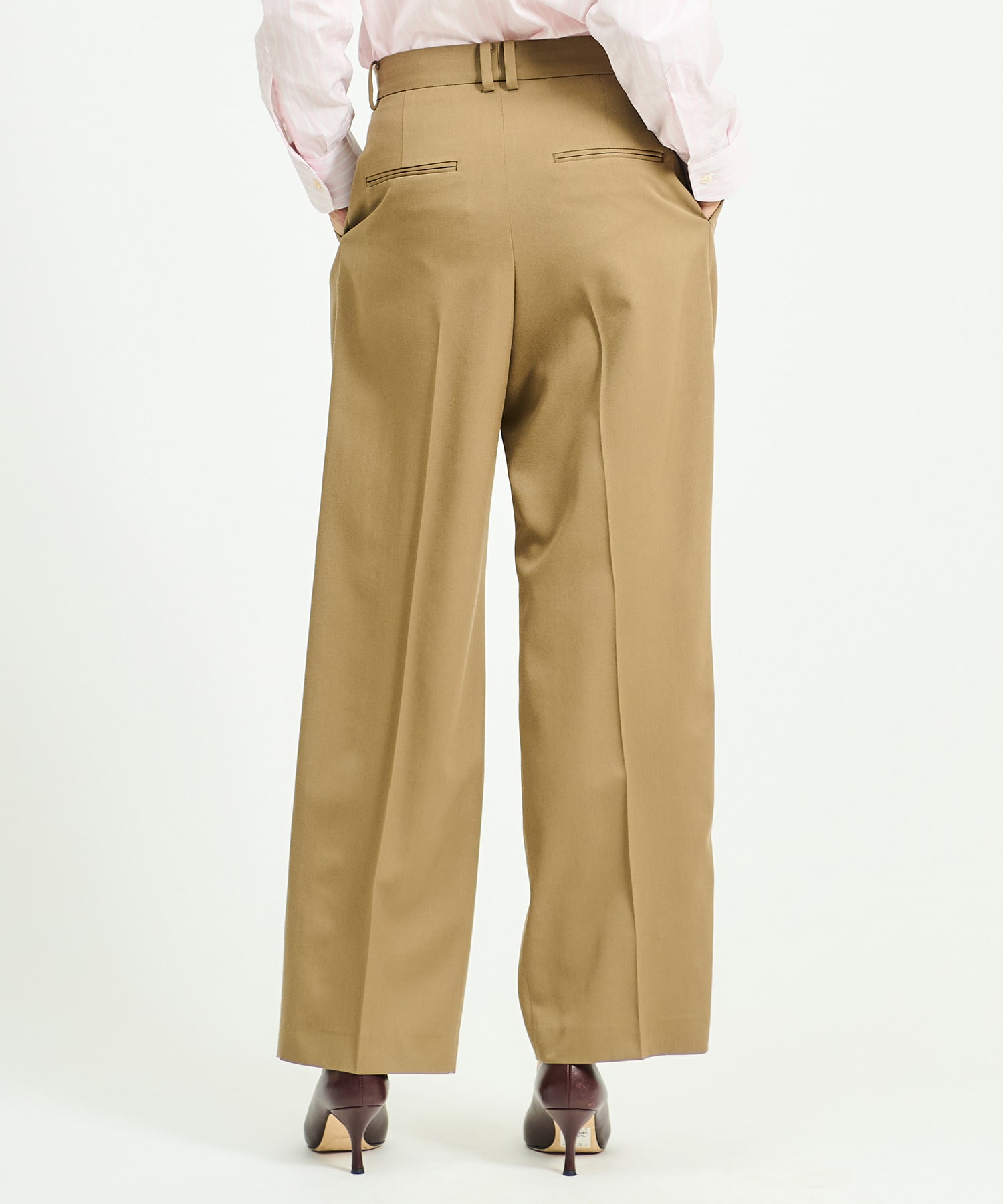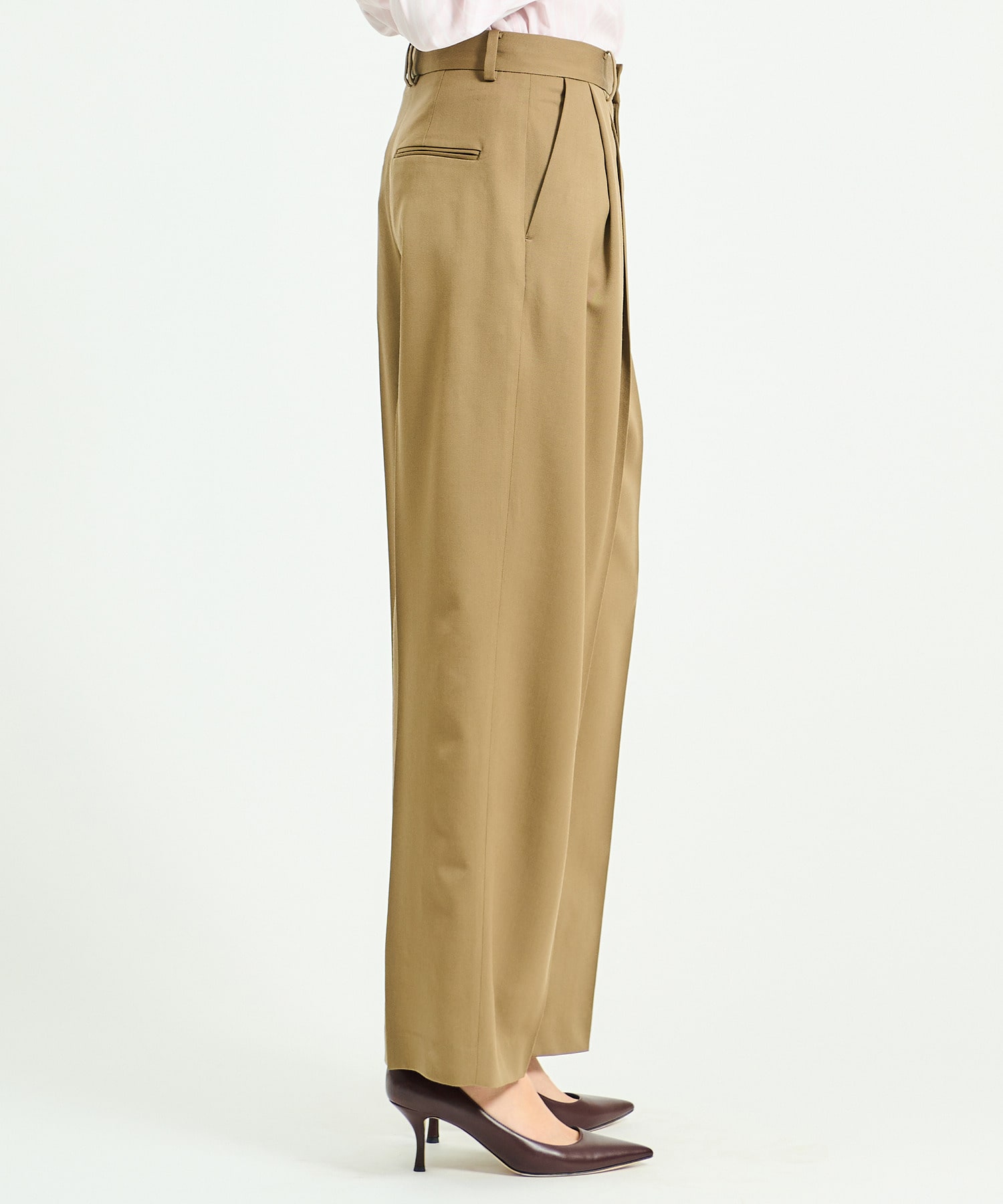 ウエストの位置を高めに設定し、フロントにタックを入れたツータックパンツ。