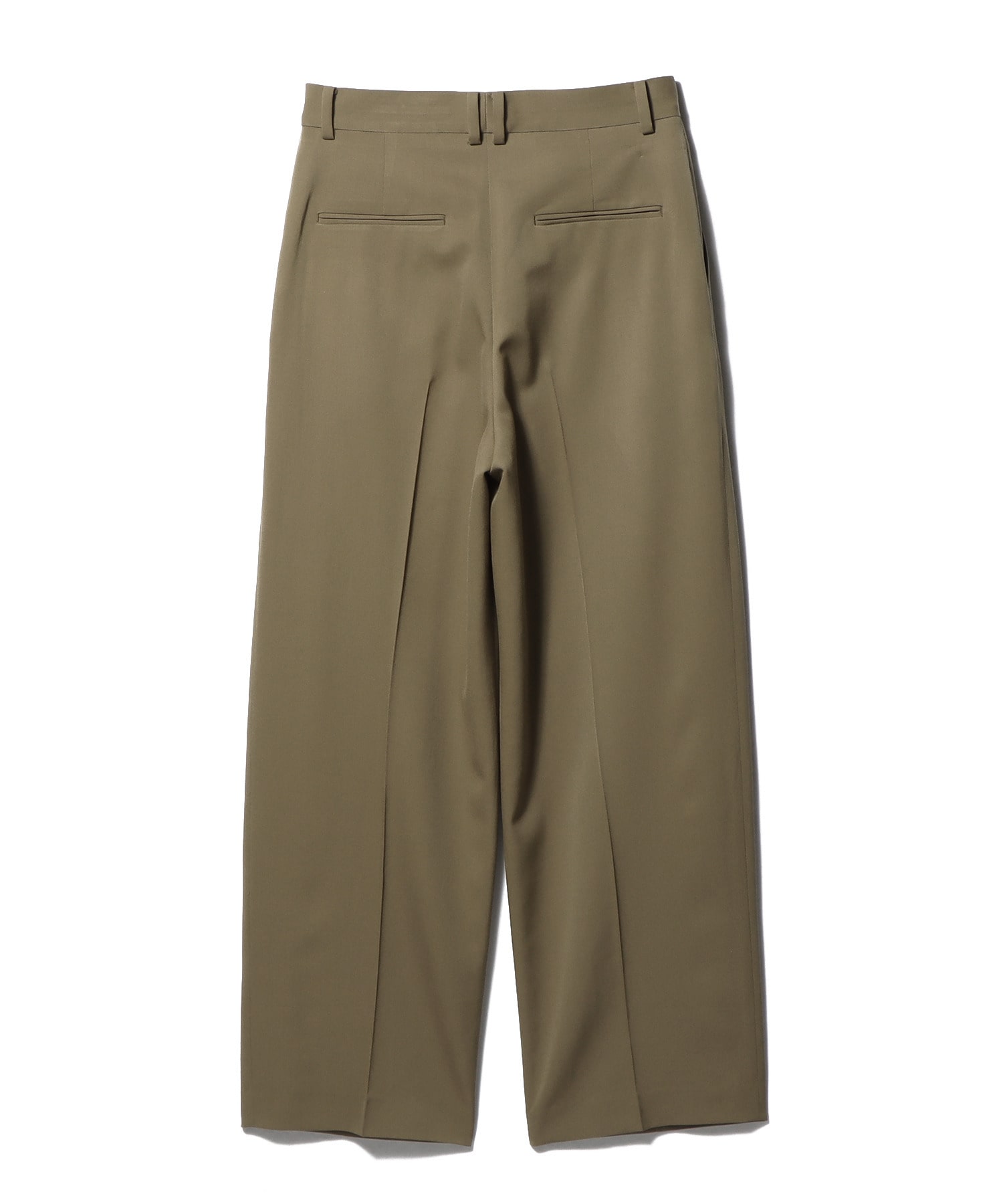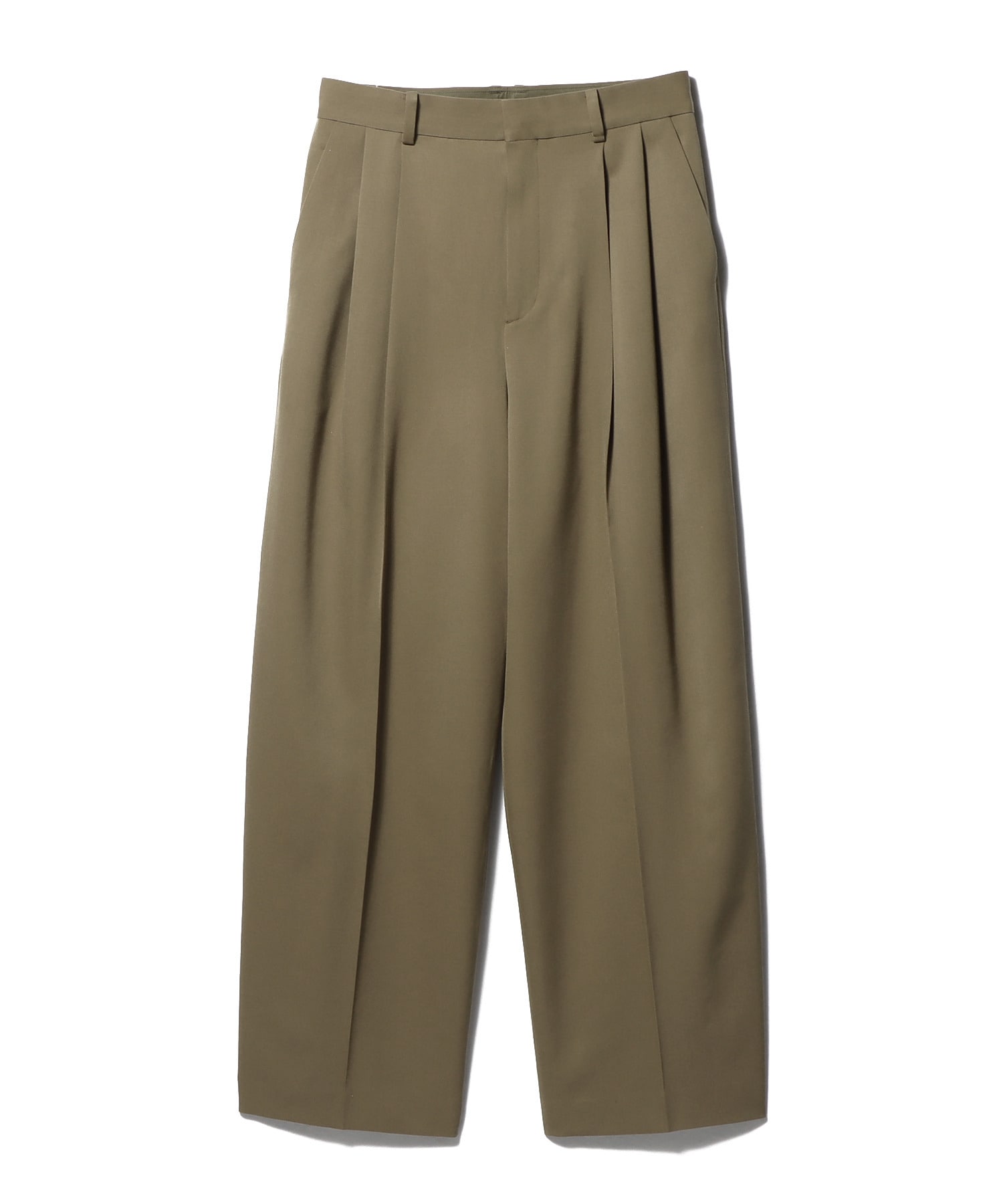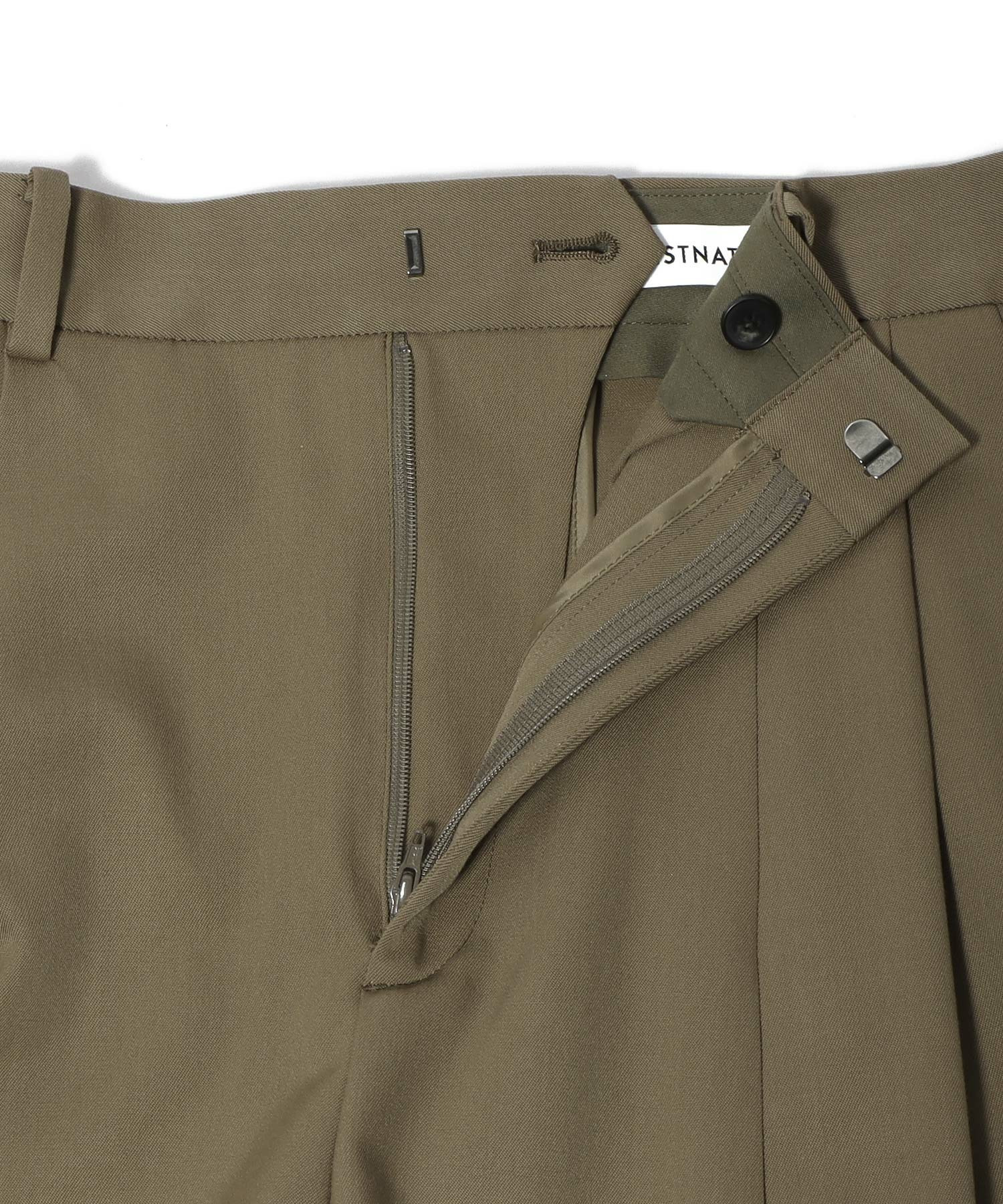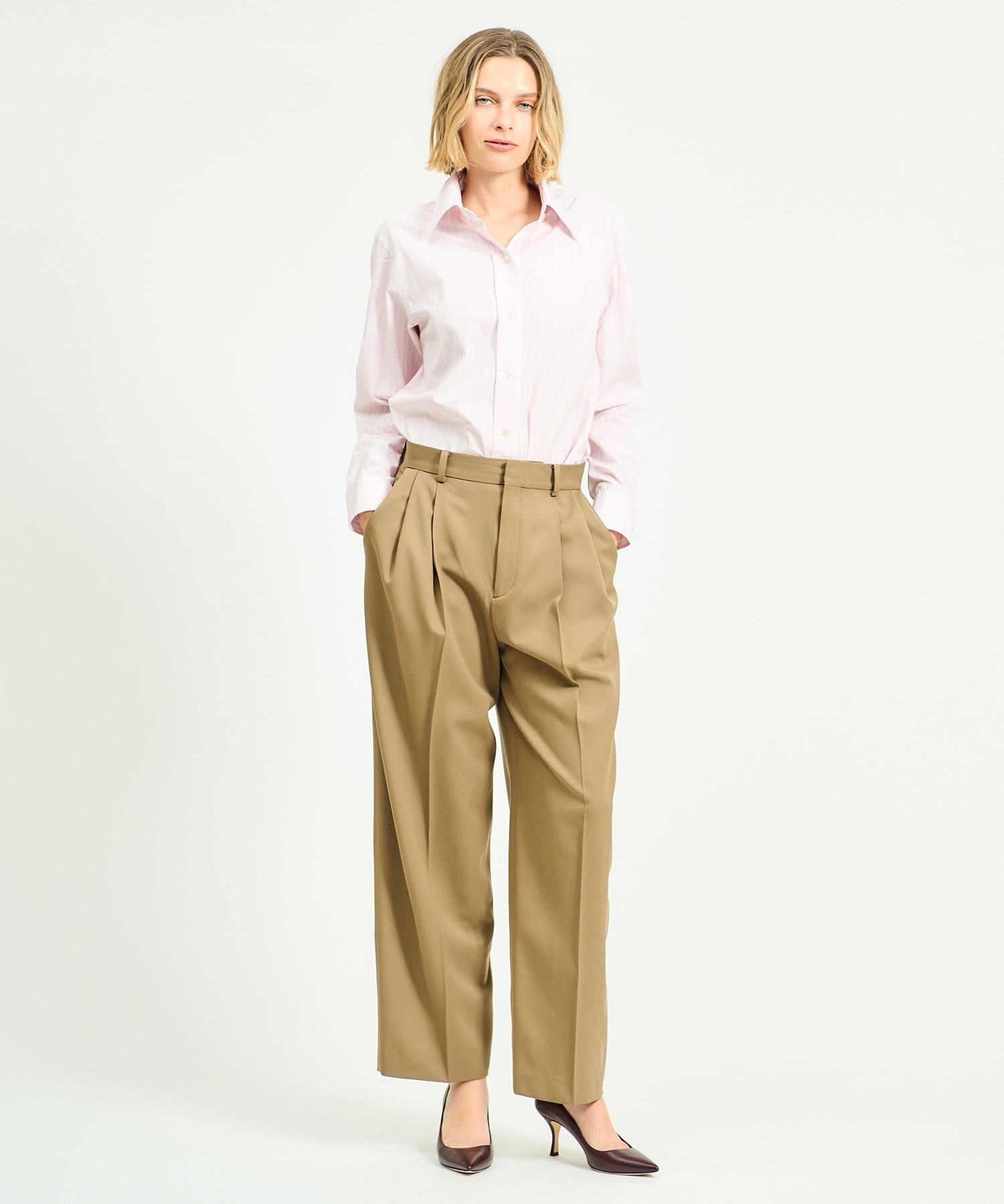 ウエストの位置を高めに設定し、フロントにタックを入れたツータックパンツ。