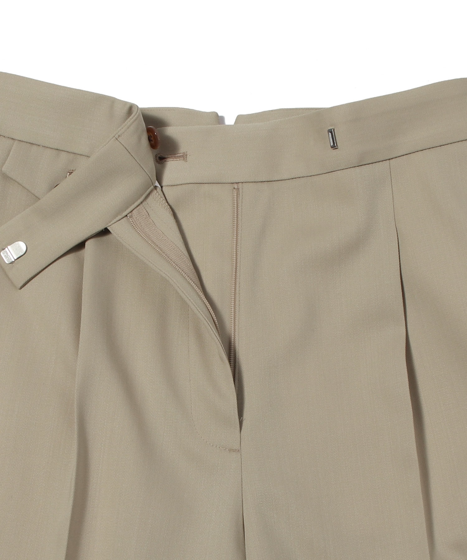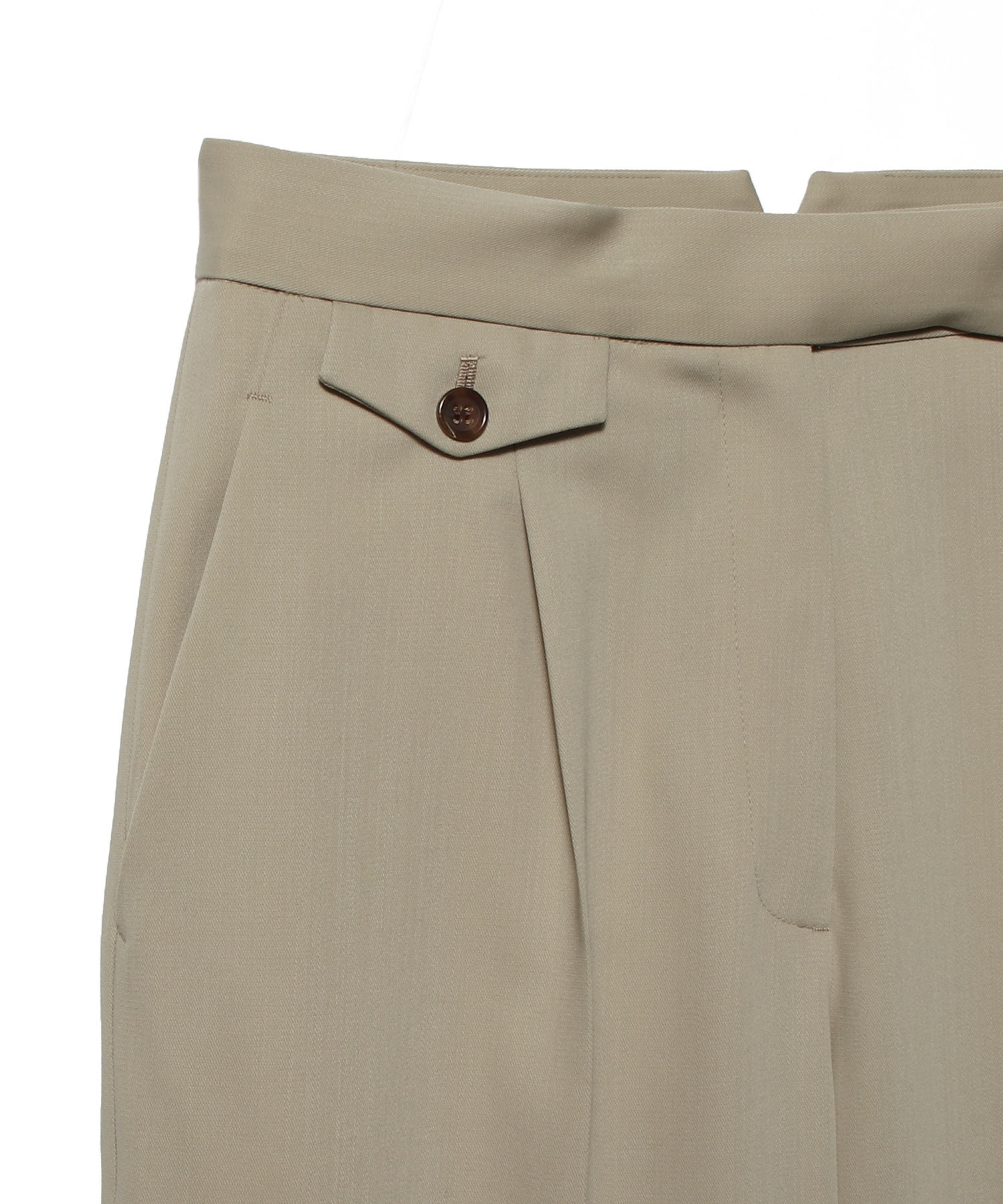 コインポケットとワンタックをアクセントに、ミドルヒップまわりはすっきりと仕上げています。裾に向かってやや広がるストレートワイドシルエットで、脚のラインをきれいに見せてくれるのもポイントです。