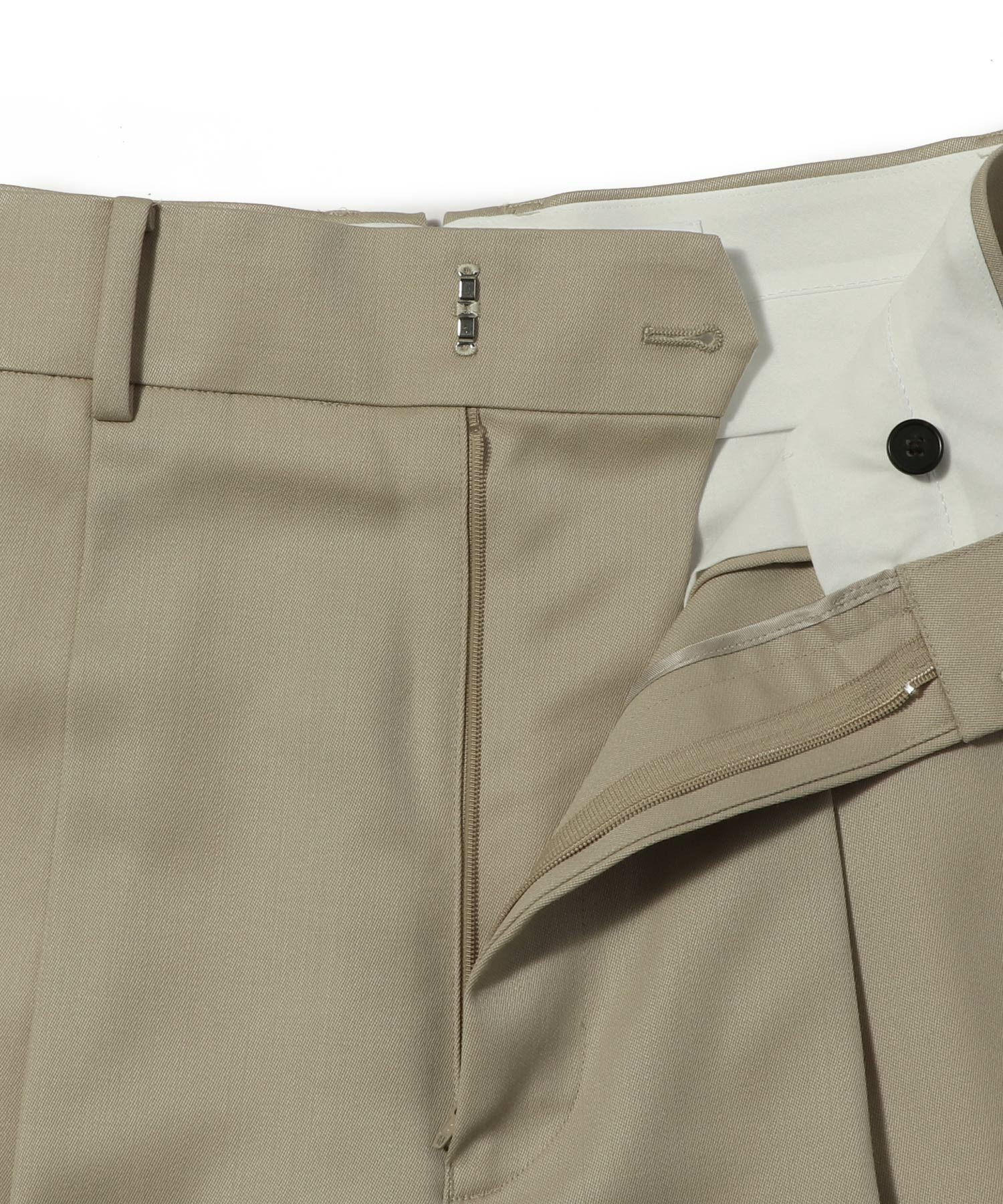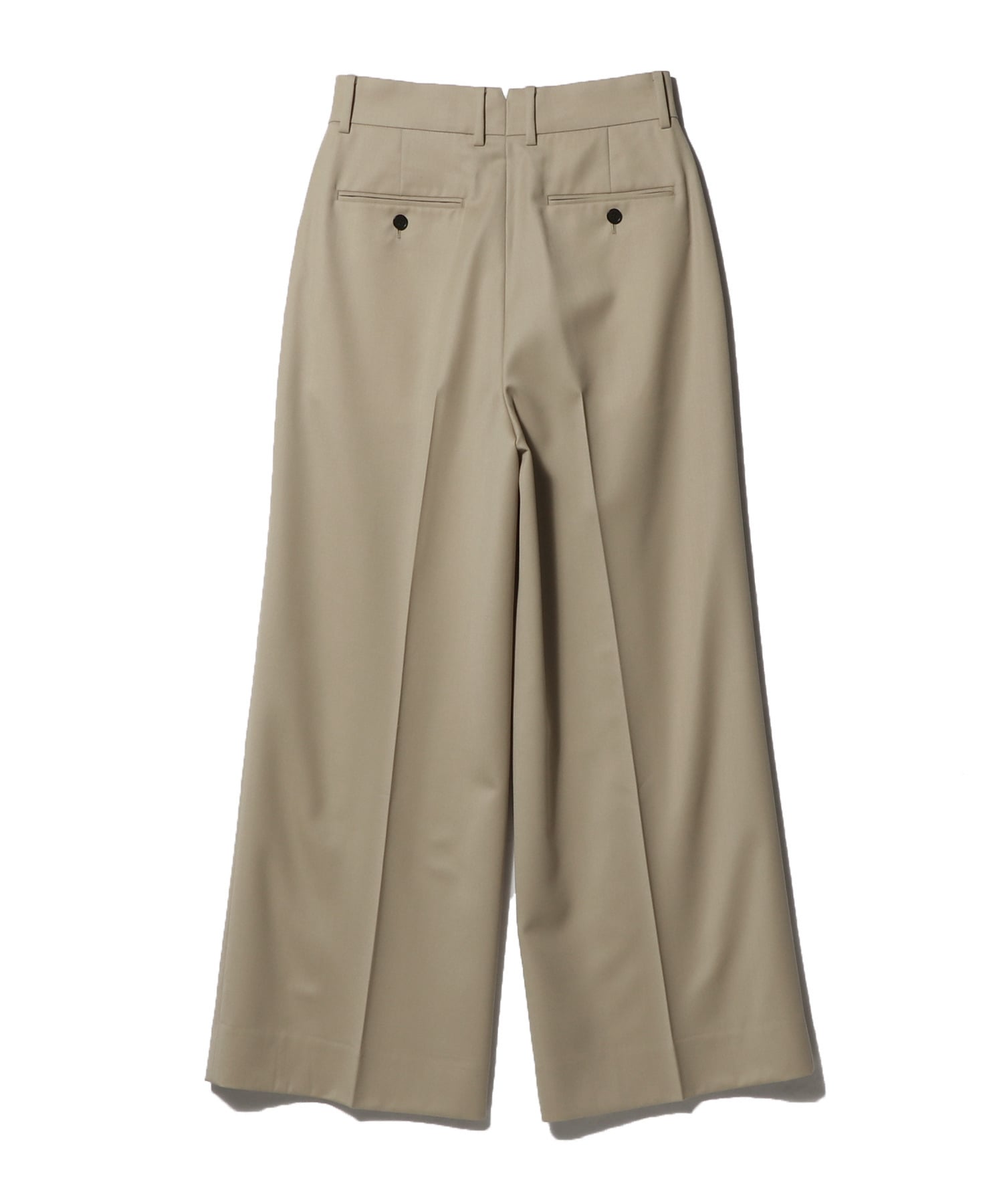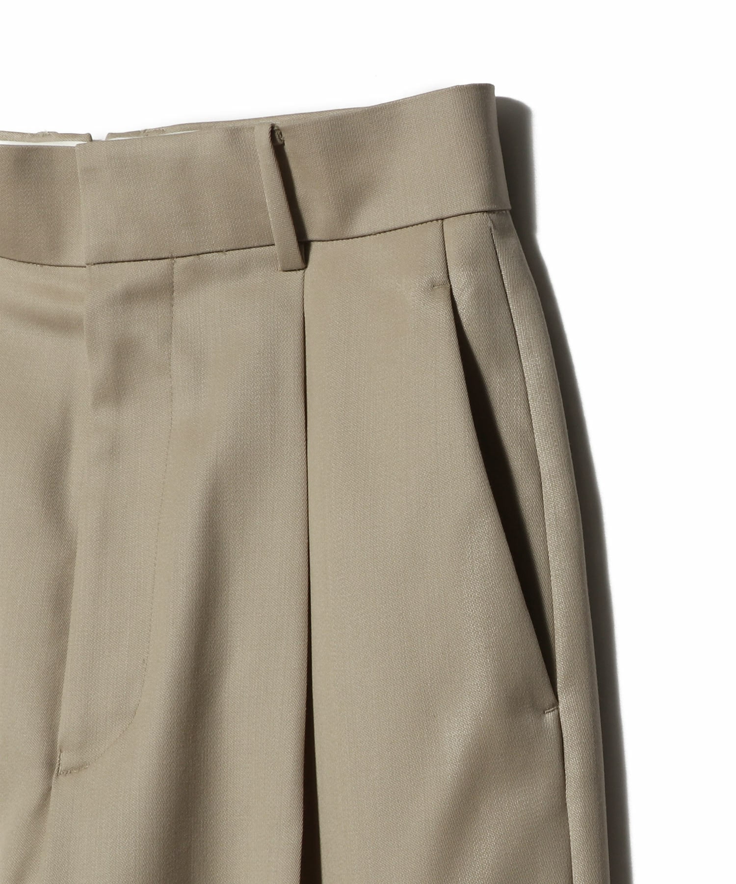 高めのウエスト位置で足長効果も期待できるタックワイドパンツ。