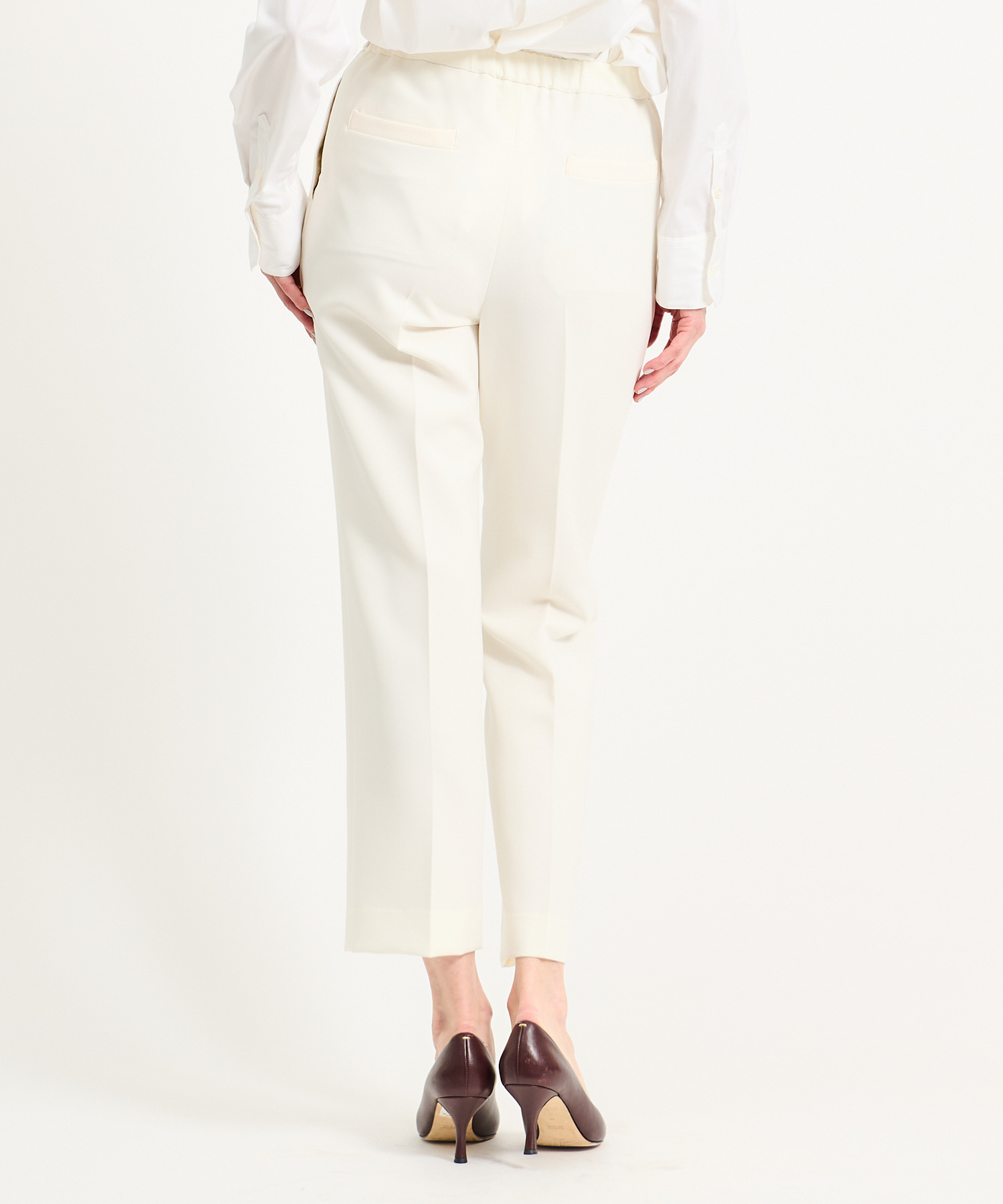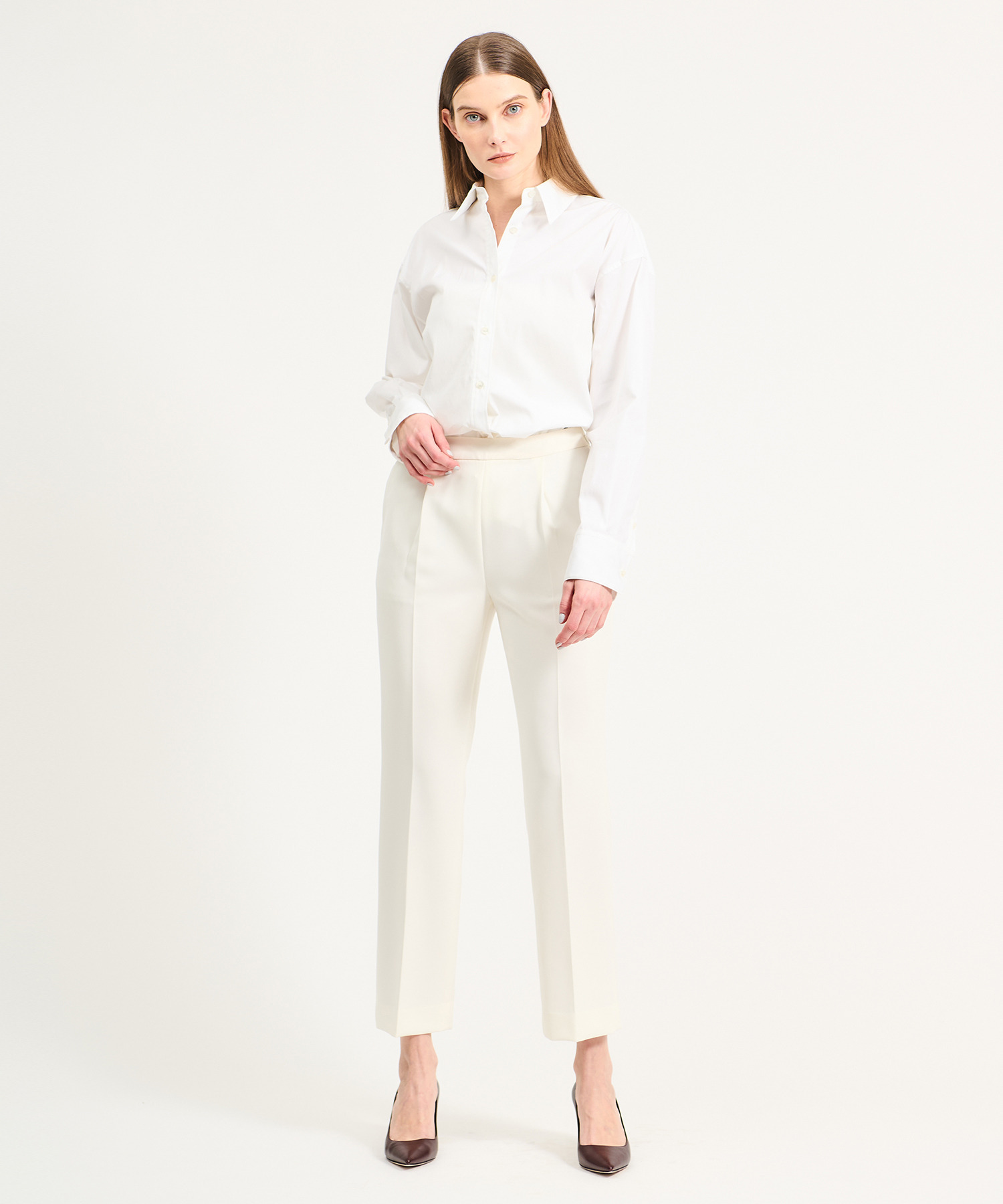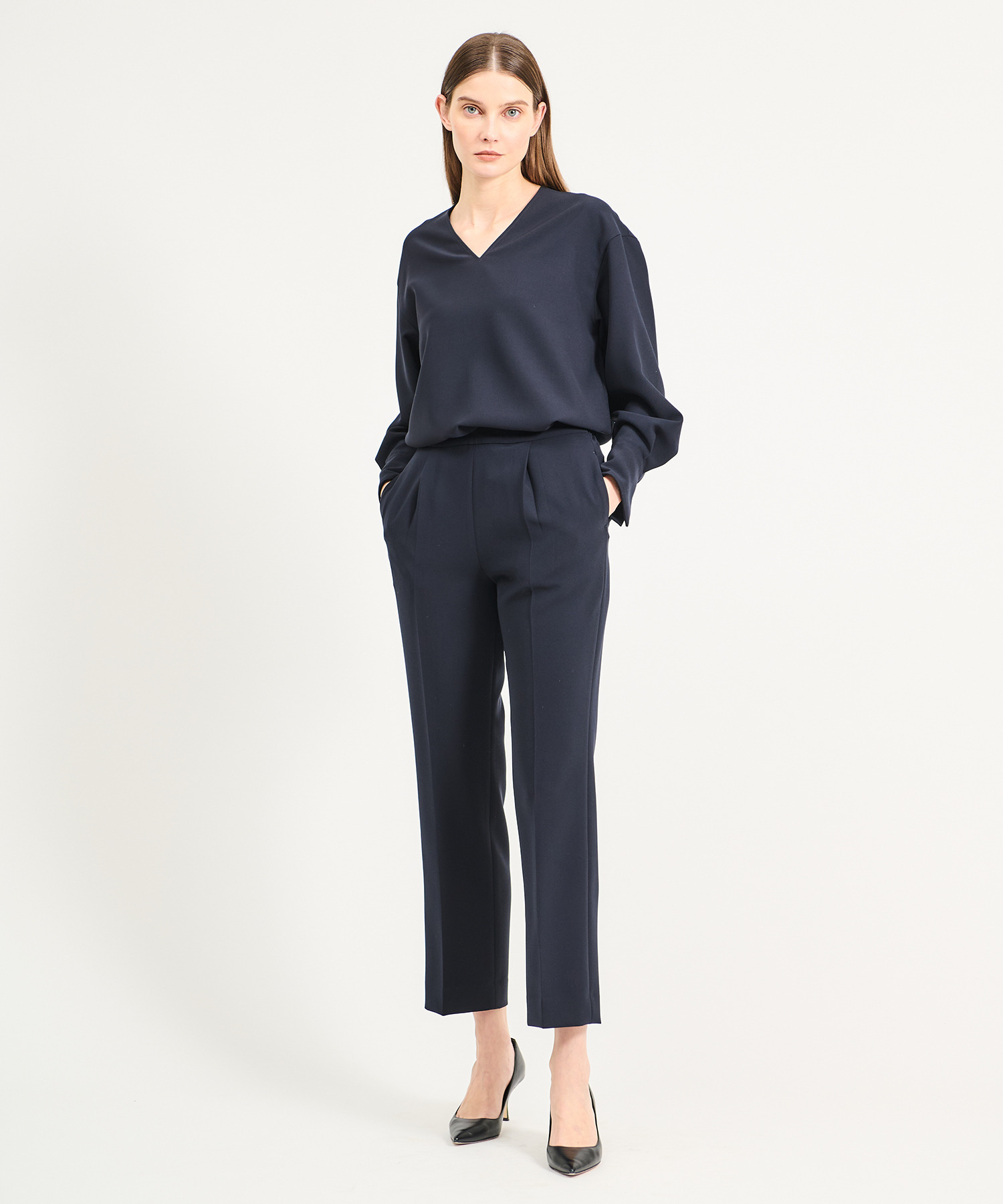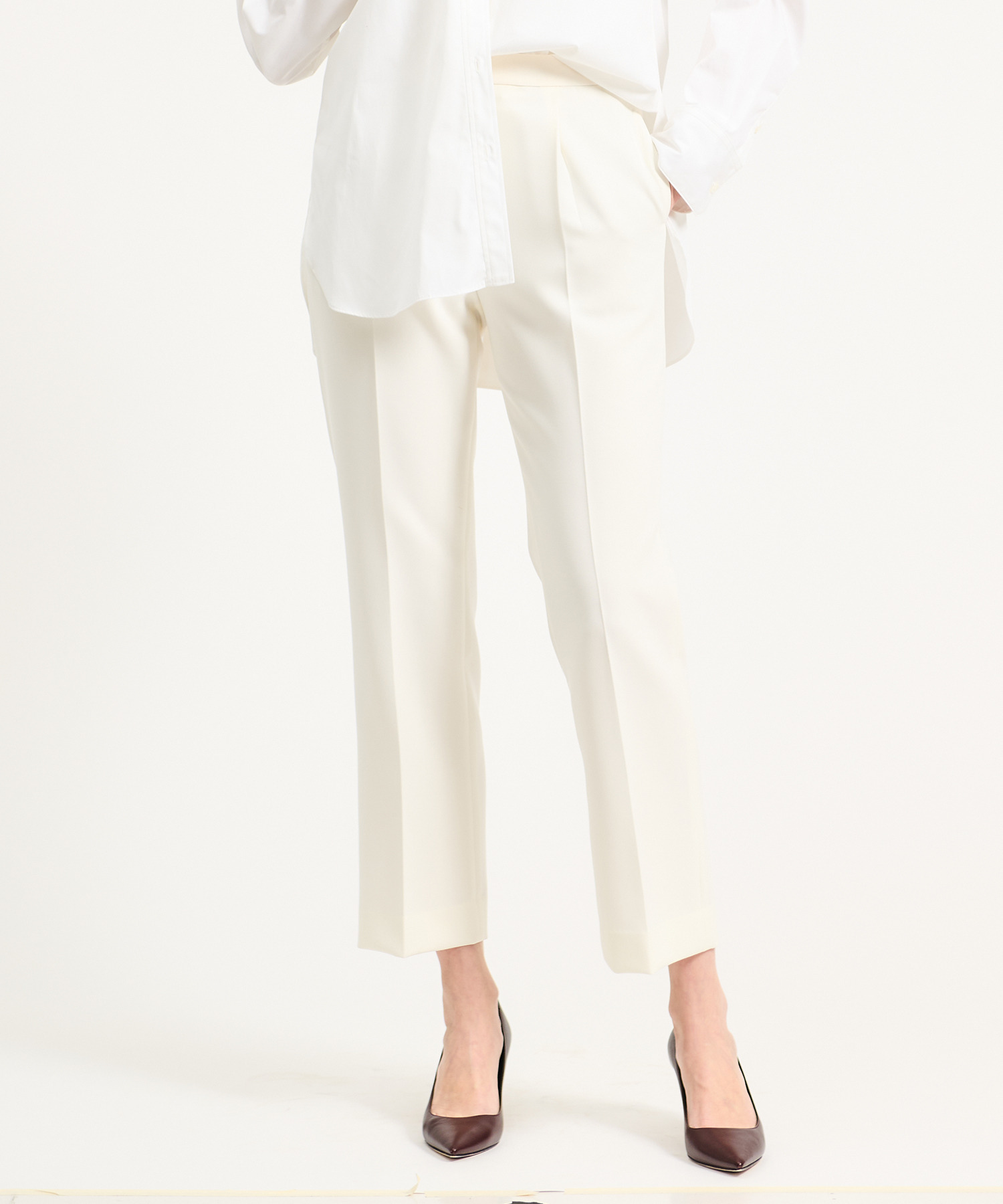 足がスッと伸びて見えるような細身のストレートシルエット。幅広い方に愛用されるように脚の形が響かないシルエットを目指しました。
