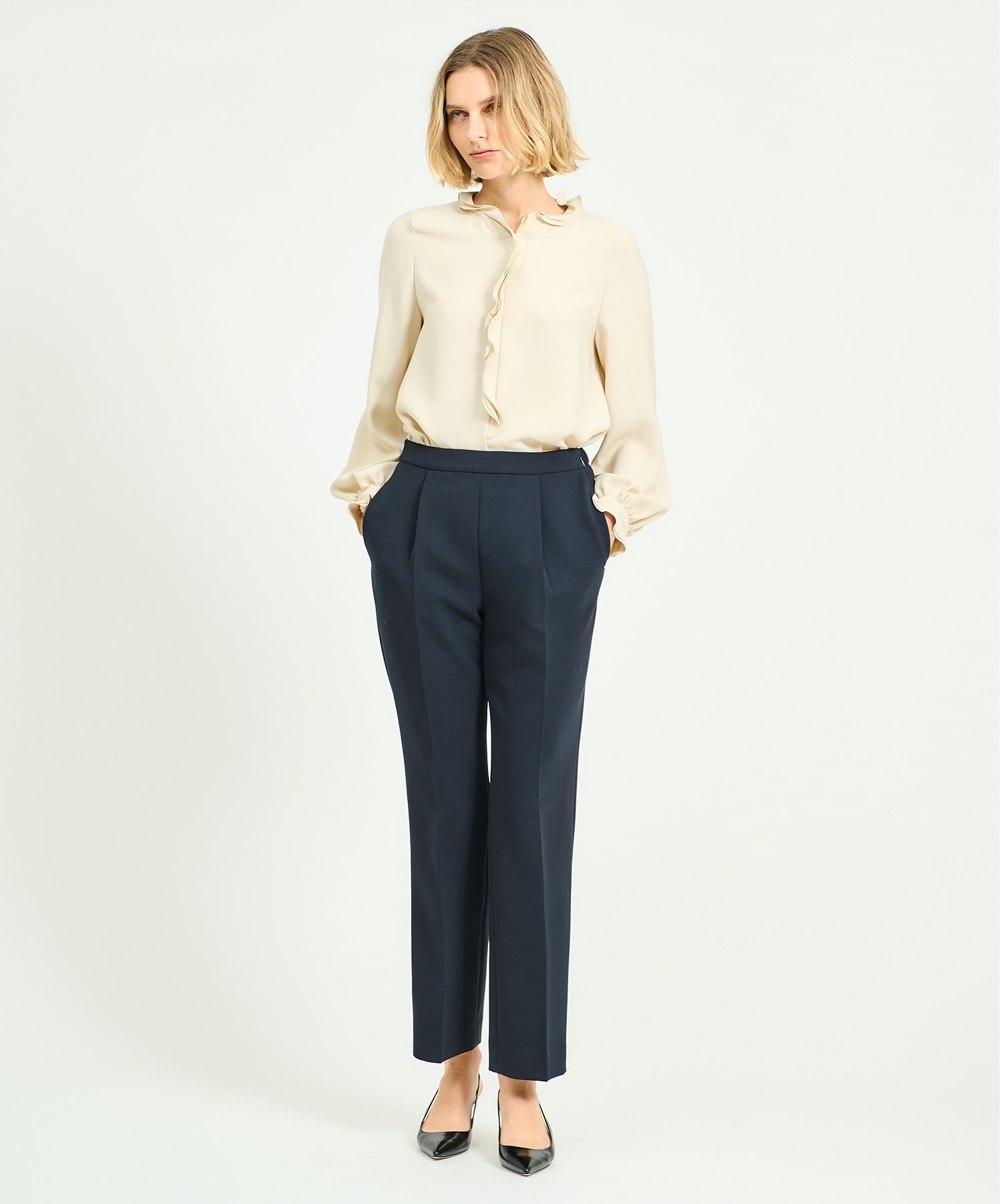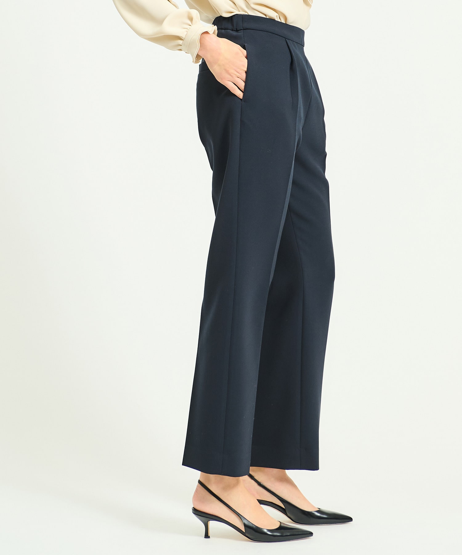 足がスッと伸びて見えるような細身のストレートシルエット。幅広い方に愛用されるように脚の形が響かないシルエットを目指しました。