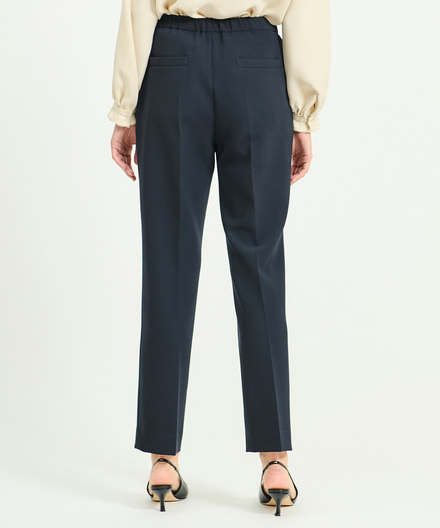 マットな光沢感とさらっとしたしなやかな履き心地が好評のポリエステルダブルクロス素材のテーパードパンツ。