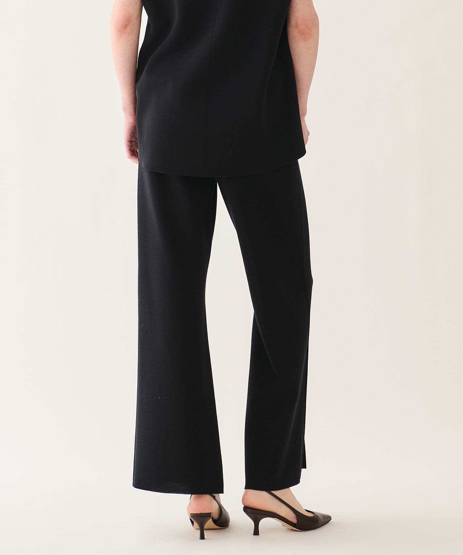 ワイドシルエットのニットパンツ。