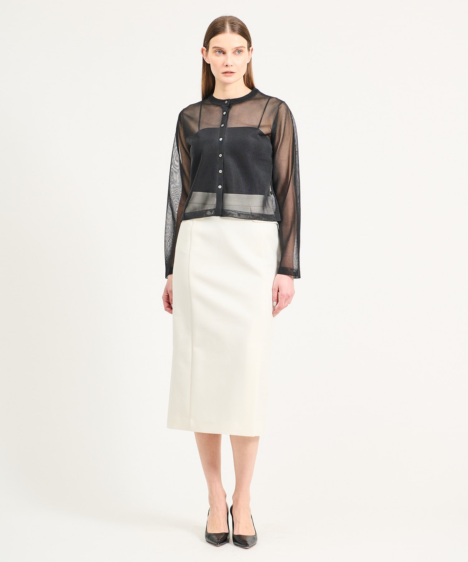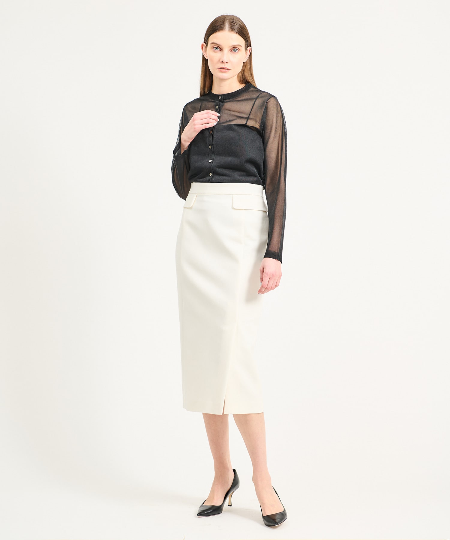 すっきりとシンプルな印象に仕上げたタイトスカート。