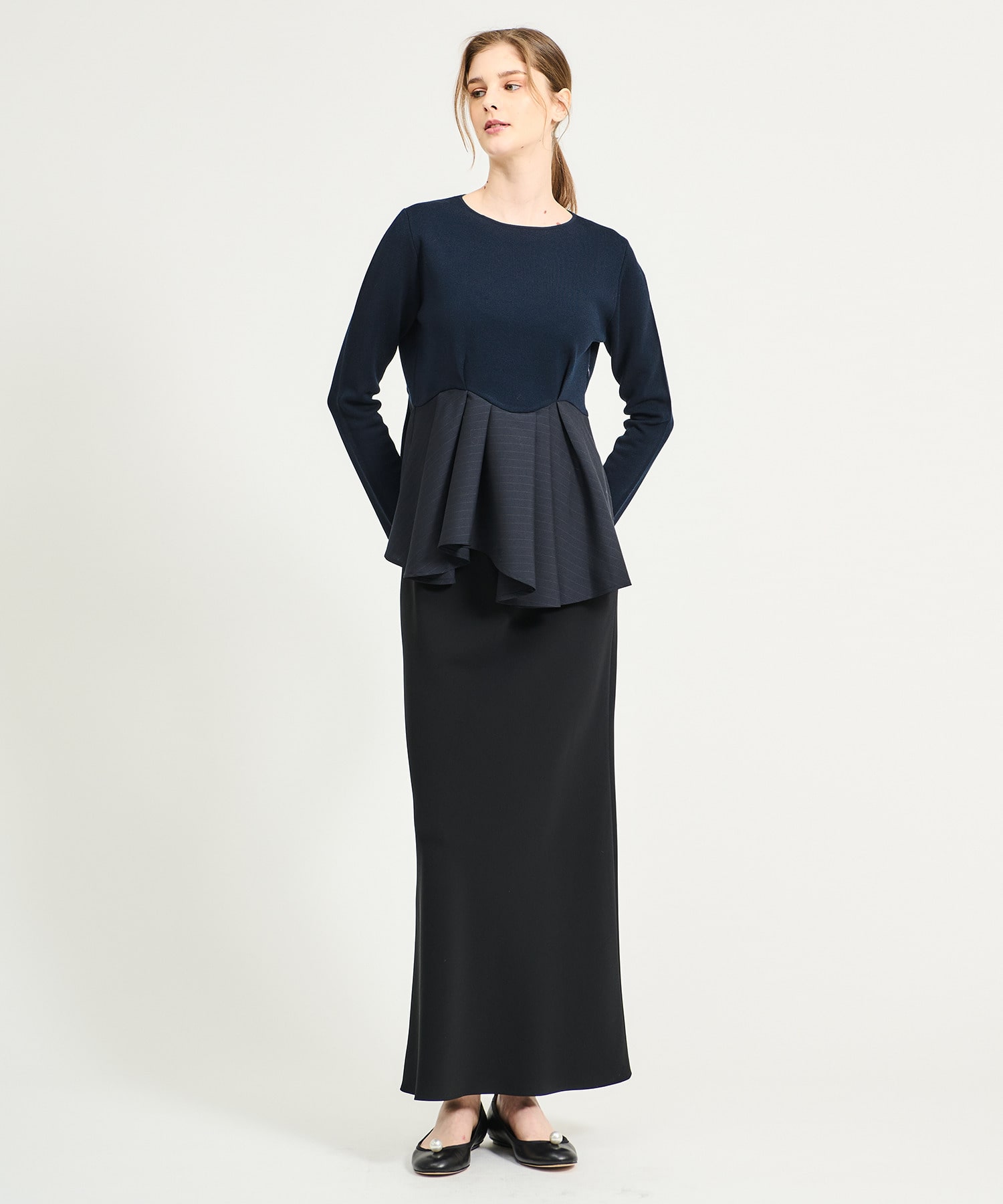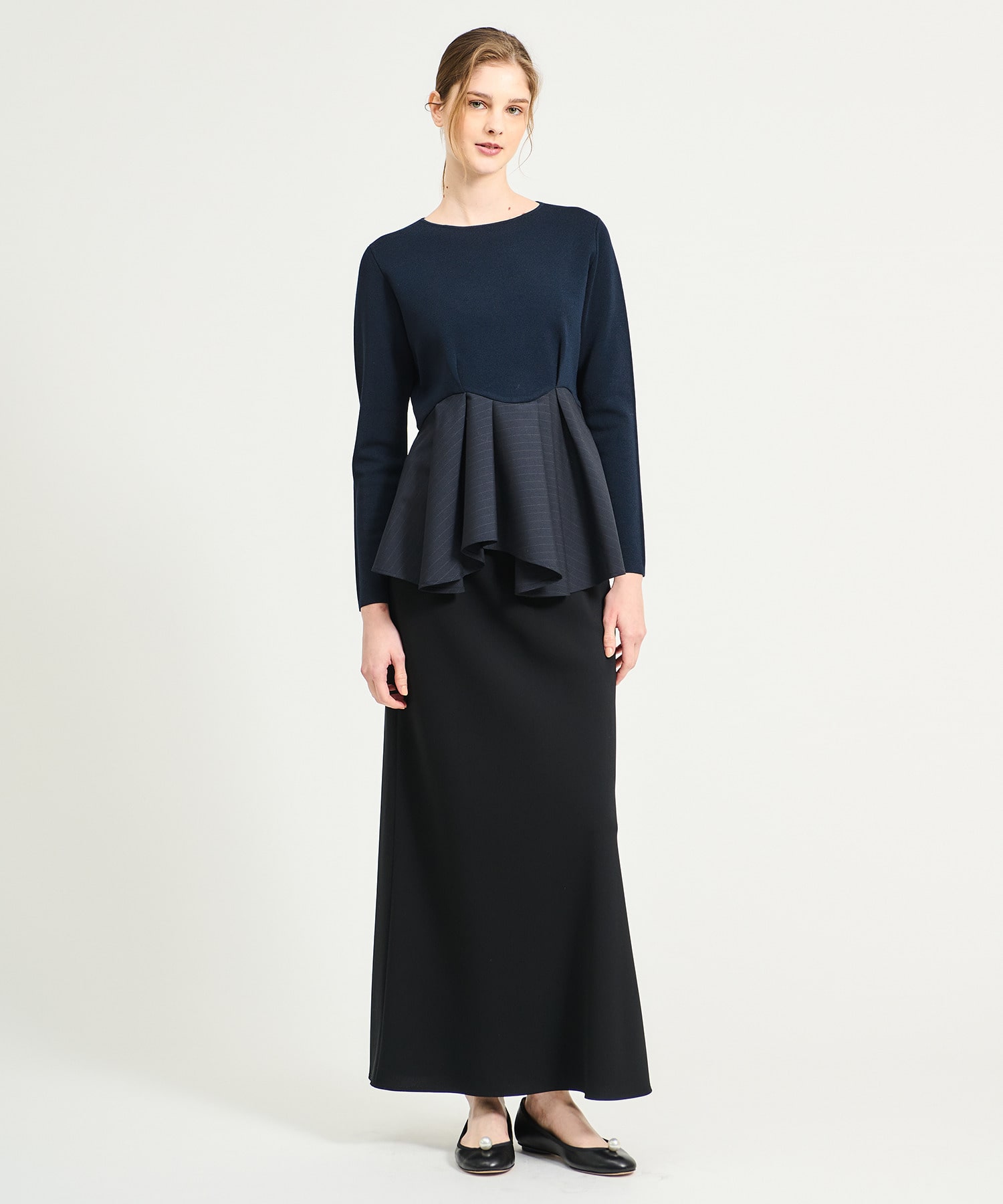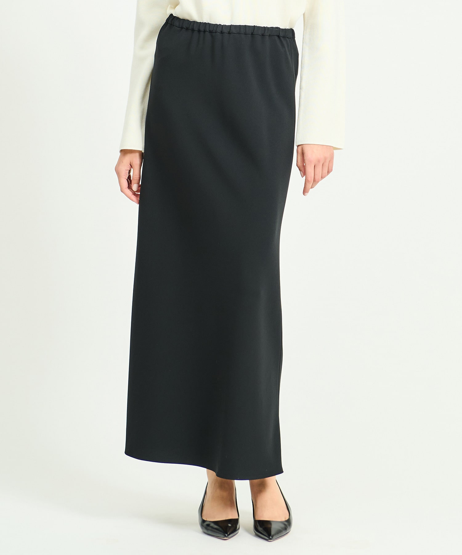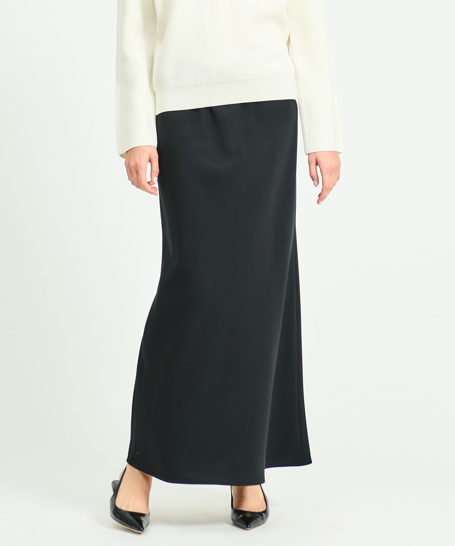 トリアセテートの上品なタッチが特徴のダブルクロス素材を使用したIラインスカート。