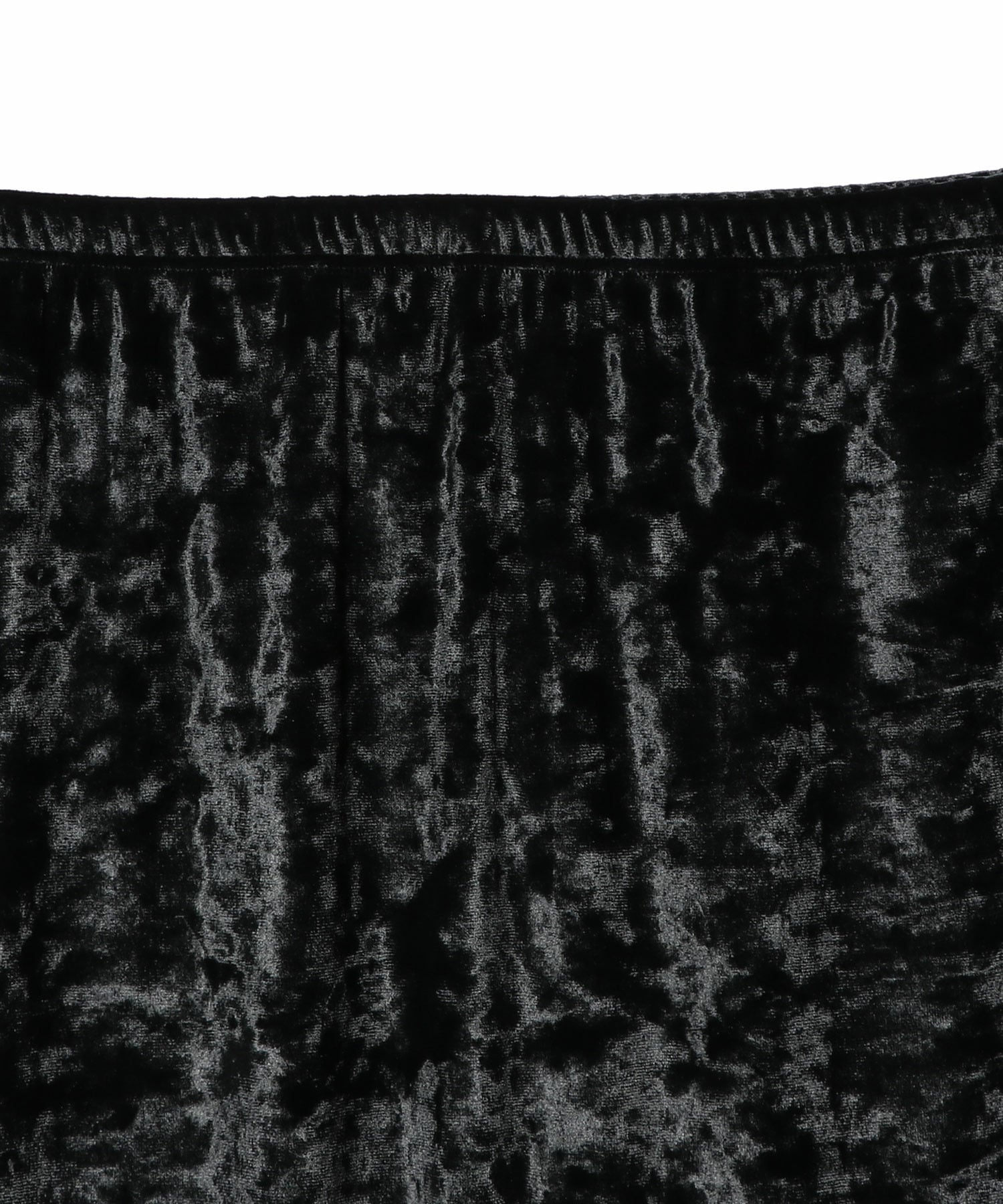 表面を起毛させたベロア素材にクラッシュ加工を施し、ランダムで奥行きのある表情に仕上げたスカート。