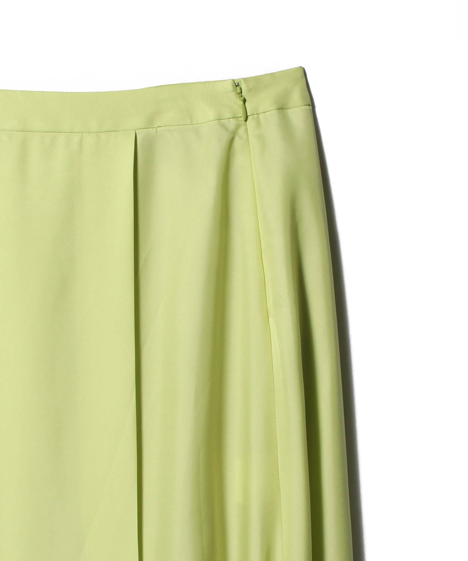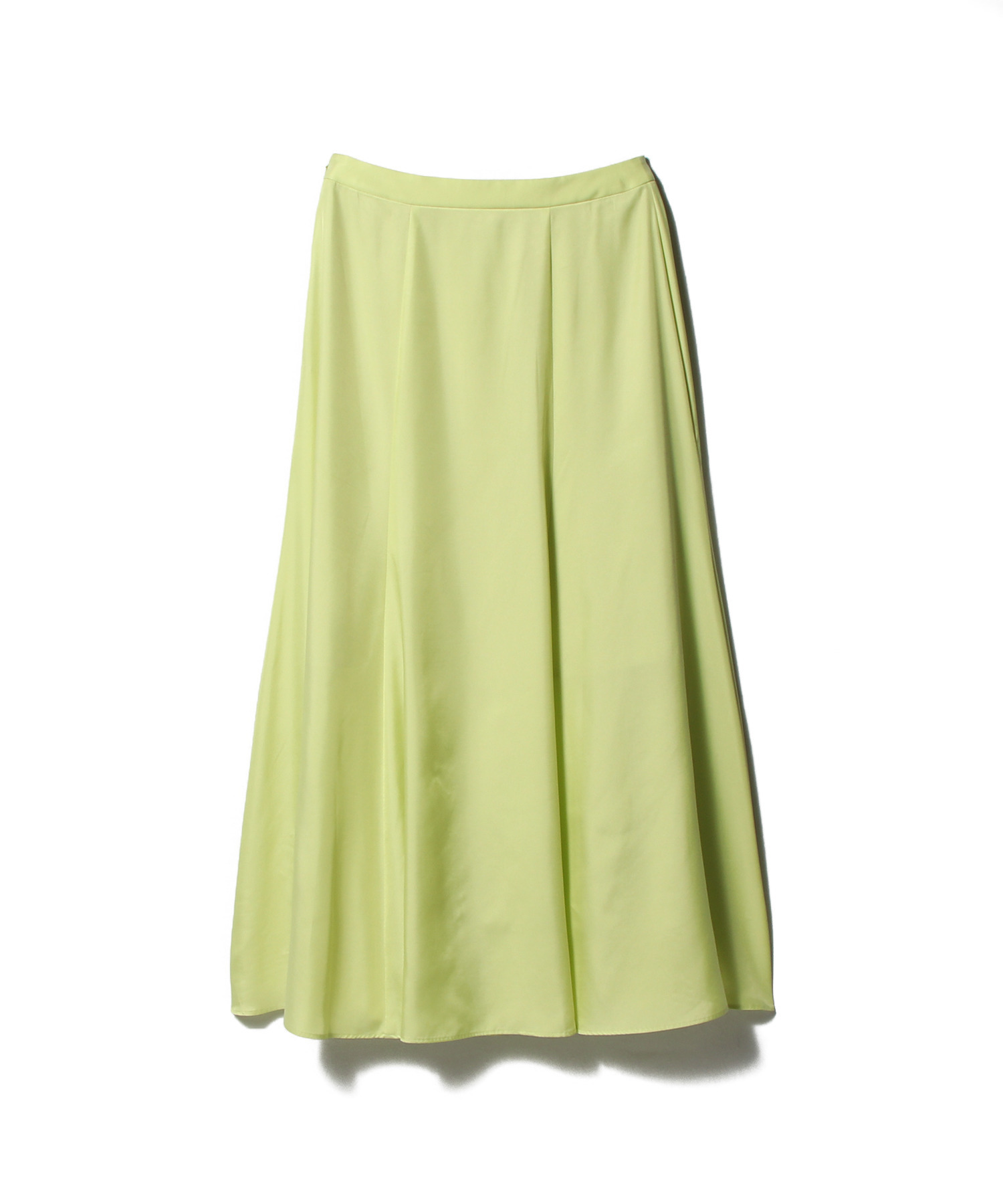 腰回りはスッキリさせ裾にかけてフレアを入れた女性らしいシルエット。フロントには深めのタックを入れラップ風デザインに。タック奥にはスリットを入れ、歩きやすさもポイントです。
