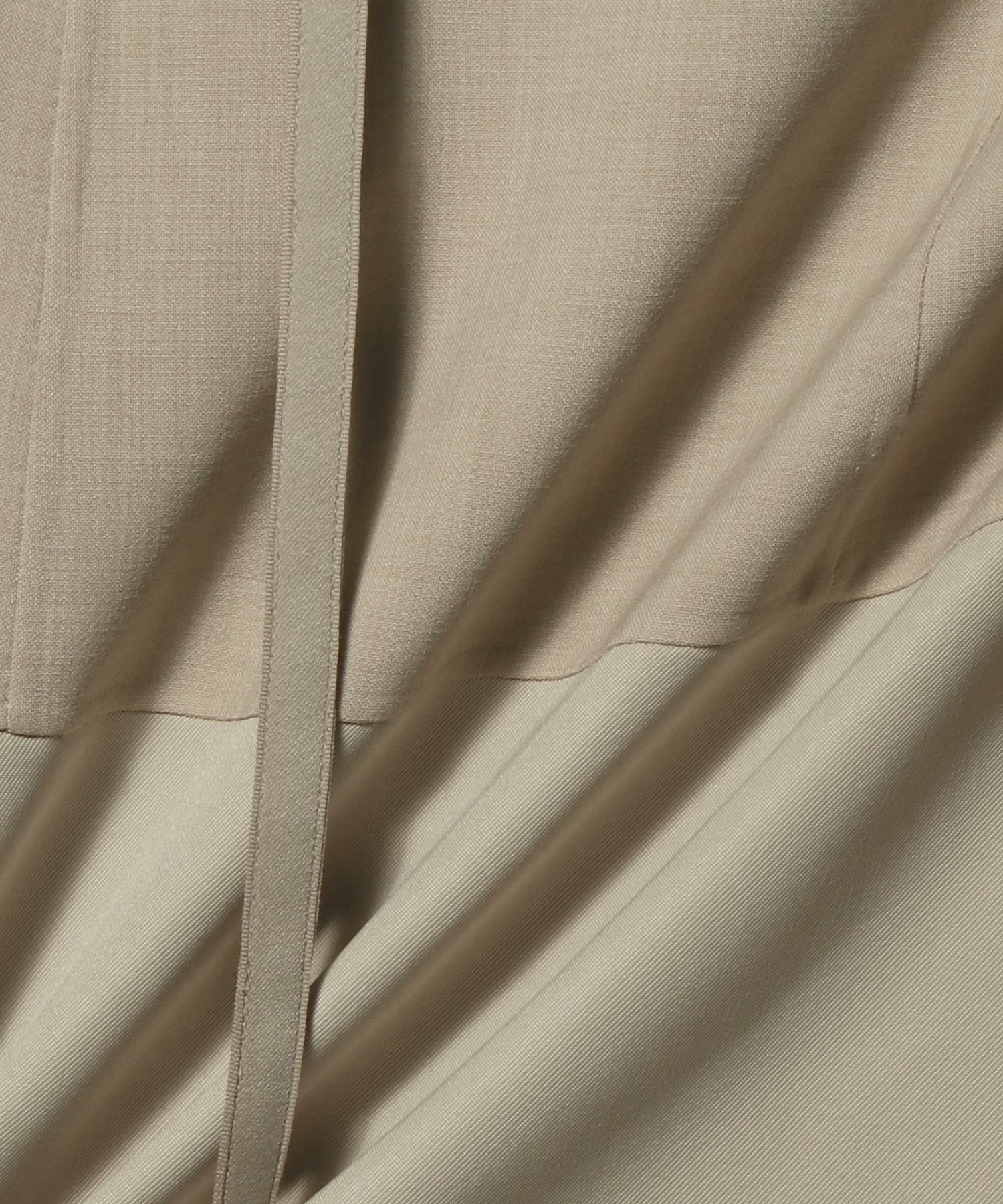 ポリエステルとウールの混紡糸を使用した接結の二重織素材を使用。程よい伸縮性と反発性があり、膨らみのある美しいフォルムが特徴です。